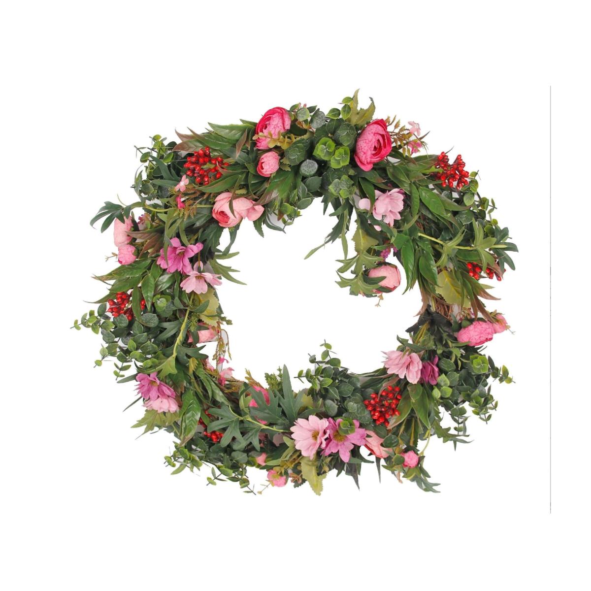 Beautiful Decorative Artificial Summer Wreath. Balanced mixture of flowers and foliage. Ready to position on your door or wall. No maintenance required. Easyy to hang. Our topiary balls are UV protected. No maintenance required. Suitable for indoor and outdoor use. Plant composition: fabric. Size H5, W60, D60cm. The overall size may vary depending on how the item is arranged. Fade resistant. Frost resistant.