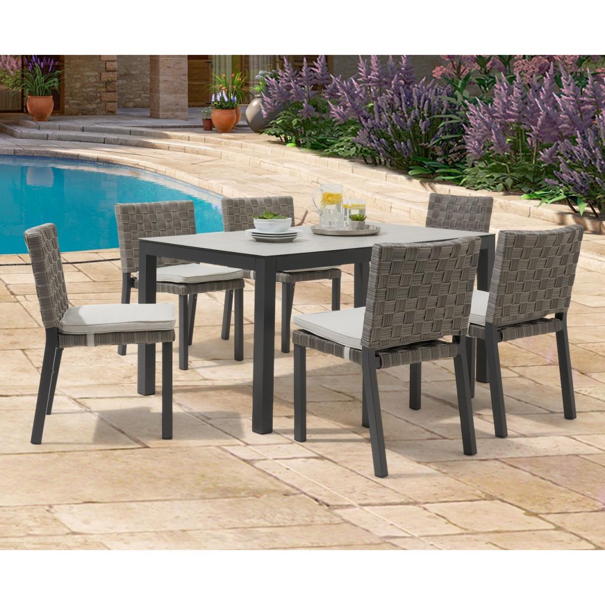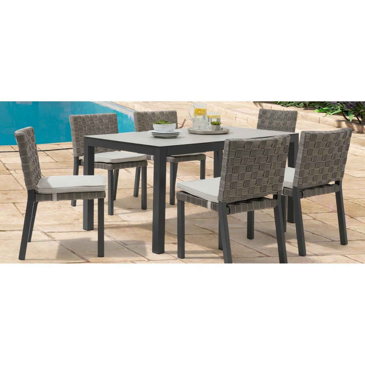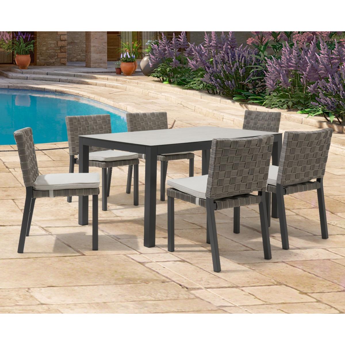 Al fresco dining is a pleasure with a Gardenia dining set. Six friends can enjoy lunch in the sun with a stylish table and chairs. Versatile and sturdy, the stylish table offers an ideal solution for garden parties. A classic shape, Gardenia chairs are a popular choice as they offer comfort and blend beautifully with a variety of outdoor settings. Seats 6 people comfortably Contemporary mix of aluminium and glass. Wipe-clean tempered glass table top Choose from a dark grey or light grey powder-coated aluminium frame finish for the table Textylene (30% polyester + 70% PVC) chair fabric offers durability and comfort