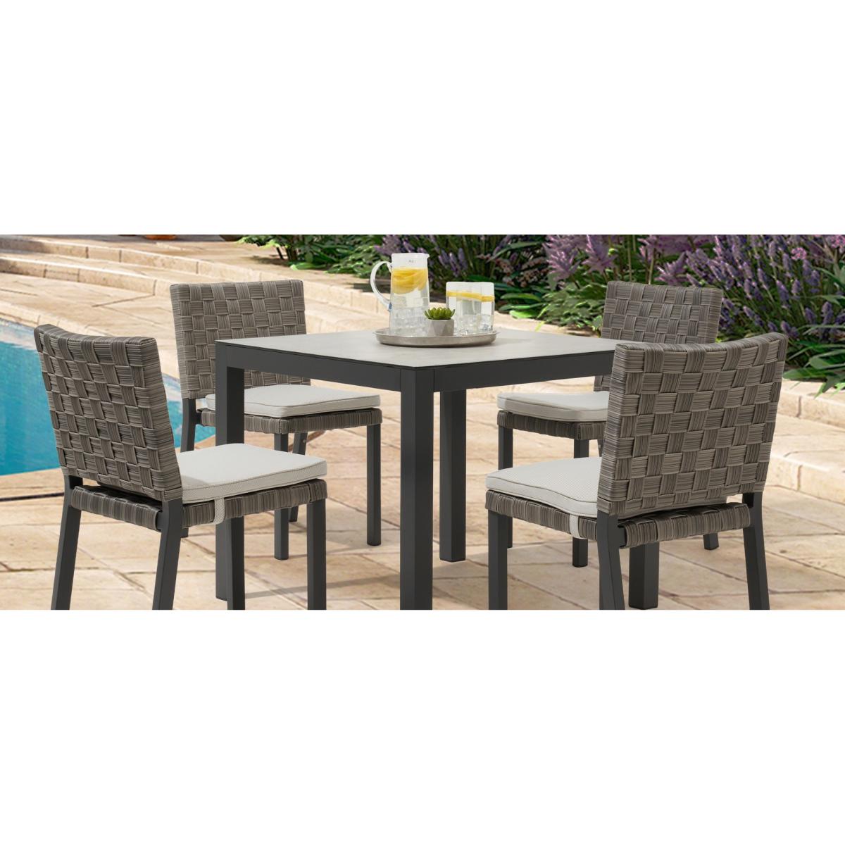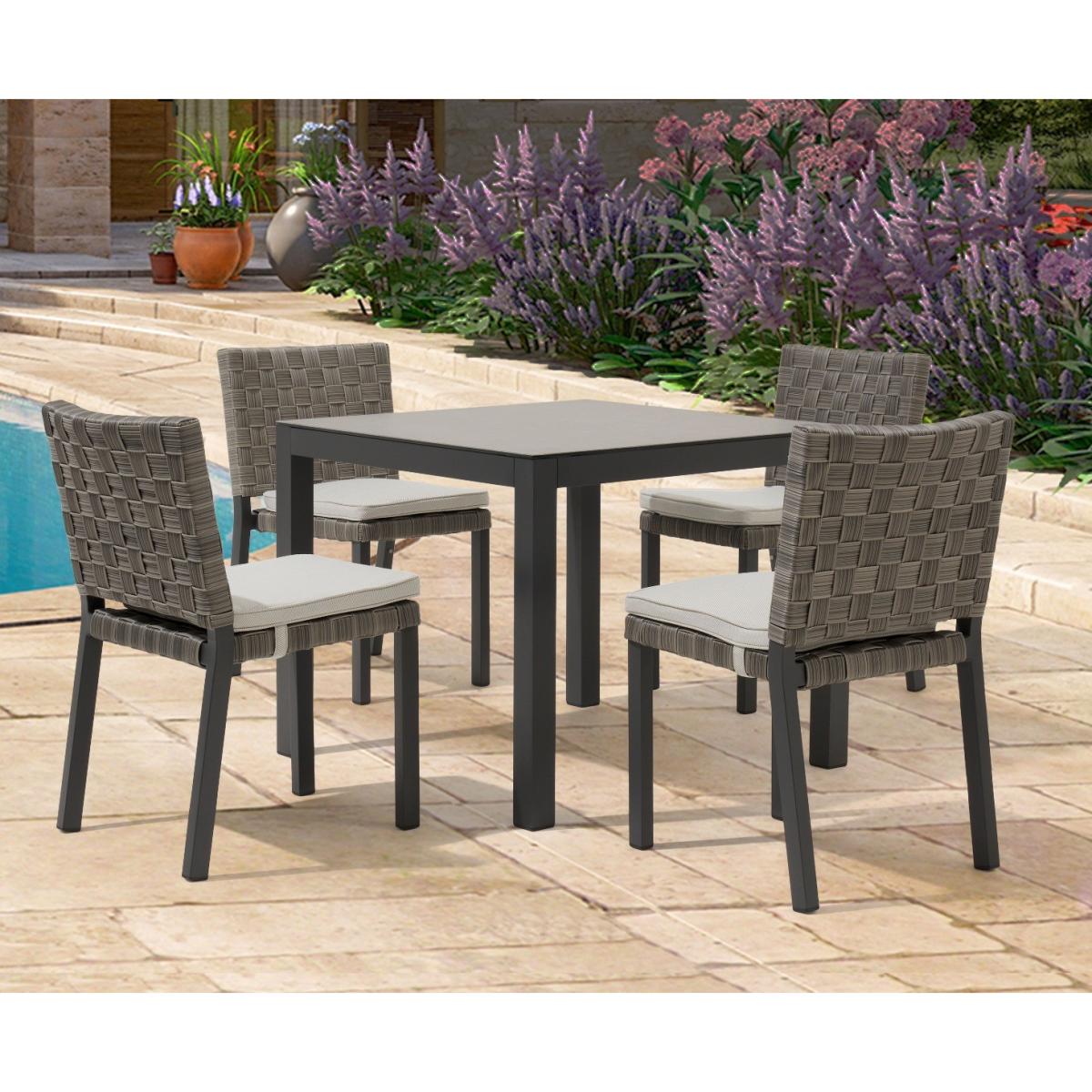 Al fresco dining is a pleasure with a Gardenia dining set. Enjoy an intimate lunch for two in the sun with a stylish table and pair of chairs. Versatile and sturdy, the stylish table offers an ideal solution for intimate dining occasions. A classic shape, Gardenia chairs are a popular choice as they offer comfort and blend beautifully with a variety outdoor settings. Seats up to 4 people comfortably Contemporary mix of aluminium and glass. Wipe-clean tempered glass table top Choose from a dark grey or light grey powder-coated aluminium frame finish for the table Textylene (30% polyester + 70% PVC) chair fabric offers durability and comfort