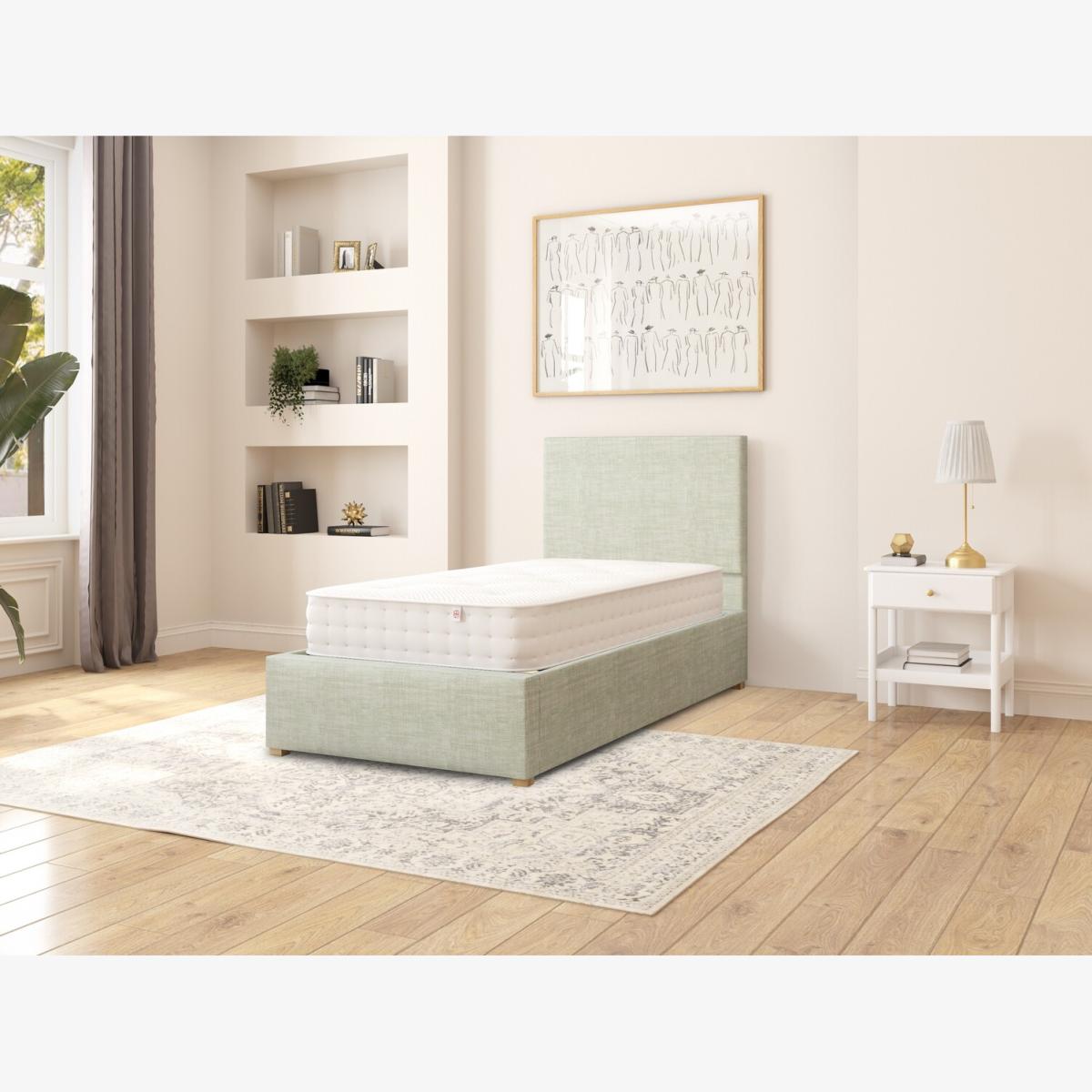 Quality upholstered ottoman storage bed, hand crafted in the UK. Each headboard is constructed with deep foam padding perfect for sitting up in bed and reading. We believe quality has no short cuts, meaning all our designs are hand upholstered by our skilled craftsmen. Our UK ottoman design features chunky upholstered panels, which means it is built to last. Quality sprung slats improve comfort and mattress lifespan. The easy lift ottoman mechanism is supported with quality gas pistons, enabling the storage to be accessed with minimal effort. Once the ottoman is elevated it will hold position, allowing hands free access to storage. Our ottomans offer the perfect storage solutions for rooms with no or limited space with a spacious storage area of approximately 28cm. The fabric base attaches to the underside of the bed, protecting your stored items. Each ottoman is finished with hardwood feet which have been hand turned and varnished.