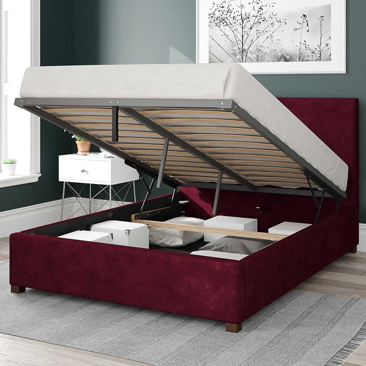 Simple and minimalist, the Garland creates understated style with its clean lines and sleek aesthetic. A generously padded headboard is upholstered in a crisp and clean linen-style fabric. The space-efficient storage compartment is effortlessly accessible with smooth gas lift pistons, providing storage for clothes, shoes and bedroom clutter. It's worth noting that the storage area is not a boarded base, instead a fabric dust protection sheet attaches to the underside of the bed to keep your items neat and clean. Supportive sprung slats mean you can rest easy. Square hand-turned feet, made from solid wood, create an elegant finish. Product details:• Ottoman storage bed• Plain minimalist headboard, upholstered by hand• Upholstered in a plain weave linen. A tight and robust flat weave creates a classic look which is strong and durable• End-lift mechanism for convenient access• Large storage area with fabric dust protection sheet base• Durable gas pistons ensure the storage area remains securely open for hands-free use• Solid hand-turned hardwood feet• Sprung slatted base• Foam fillings• Made to order and expertly hand finished right here in the UK • Assembly required (2 person recommended)• Mattress not included• 12 month manufacturers warranty• Care advice:Wipe clean with a soft cloth Composition • Upholstery - Eire Linen (100% polyester)• Fillings - Foam • Frame - Chipboard, Plywood, MDF, Steel. This product will be dispatched by one of our trusted suppliers. You’ll be contacted by their selected courier about your delivery. Please note this item will be delivered to your doorstep. Please note that this item cannot be delivered to the Offshore Islands, Northern Ireland or the Republic of Ireland. Product Dimensions Single • Total Dimensions - H112cm x W100cm x L209cm• Storage Area Dimensions - W94 cm x L193 cm x H26 cm • Suitable for use with standard single mattresses (90cm x 190cm)Small Double • Total Dimensions - H112cm x W130cm x L209cm• Storage Area Dimensions - W122 cm x L193 cm x H26 cm • Suitable for use with standard small double mattresses (120cm x 190cm)Double • Total Dimensions - H112cm x W147cm x L209cm• Storage Area Dimensions - W141 cm x L193 cm x H26 cm • Suitable for use with standard double mattresses (135cm x 190cm)King• Total Dimensions - H112cm x W160cm x L219cm• Storage Area Dimensions - W154cm x L204 cm x H26 cm • Suitable for use with standard king mattresses (150cm x 200cm)Super King• Total Dimensions - H112cm x W190cm x L219cm• Storage Area Dimensions - W184 cm x L204 cm x H26 cm • Suitable for use with standard king mattresses (180cm x 200cm)Other dimensions• Headboard Height - 110 cm• Footboard Height: 30cm• Underbed Clearance: 5cm• Ottoman lift mechanism functions with a mattress with weight of up to 60 kg. Package DimensionsSingle:. Parcel 1 - 140cm x 113cm x 12cm, Weight: 12kg Parcel 2 - 212cm x 32cm x 19cm, Weight: 13kg Parcel 3 - 240cm x 180cm x 12, Weight: 18kg. Small Double:Parcel 1 - 140cm x 113cm x 12cm, Weight: 19kg Parcel 2 - 212cm x 32cm x 19cm, Weight: 17kg Parcel 3 - 240cm x 180cm x 12cm, Weight: 22kgDouble: Parcel 1 - 171cm x 113cm x 12cm, Weight: 22kg Parcel 2 - 212cm x 32cm x 19cm, Weight: 18kg Parcel 3 - 240cm x 180cm x 12cm, Weight: 23kgKing:. Parcel 1 - 171cm x 113cm x 12cm, Weight: 27kg Parcel 2 - 212cm x 32cm x 19cm, Weight: 22kg Parcel 3 - 240cm x 180cm x 12cm, Weight: 25kg Super King:Parcel 1 - 201cm x 113cm x 12cm, Weight: 30kg Parcel 2 - 212cm x 32cm x 19cm, Weight: 25kg Parcel 3 - 240cm x 180cm x 12cm, Weight: 27kg