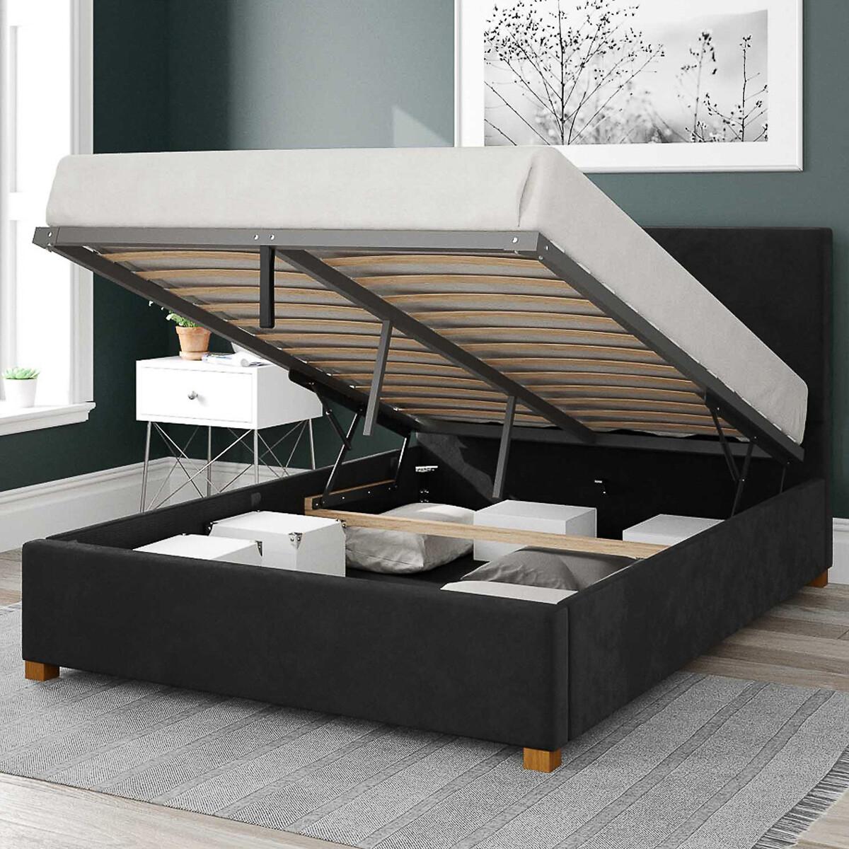 Garland Velvet Storage Ottoman Bed with Plain Upholstered Headboard