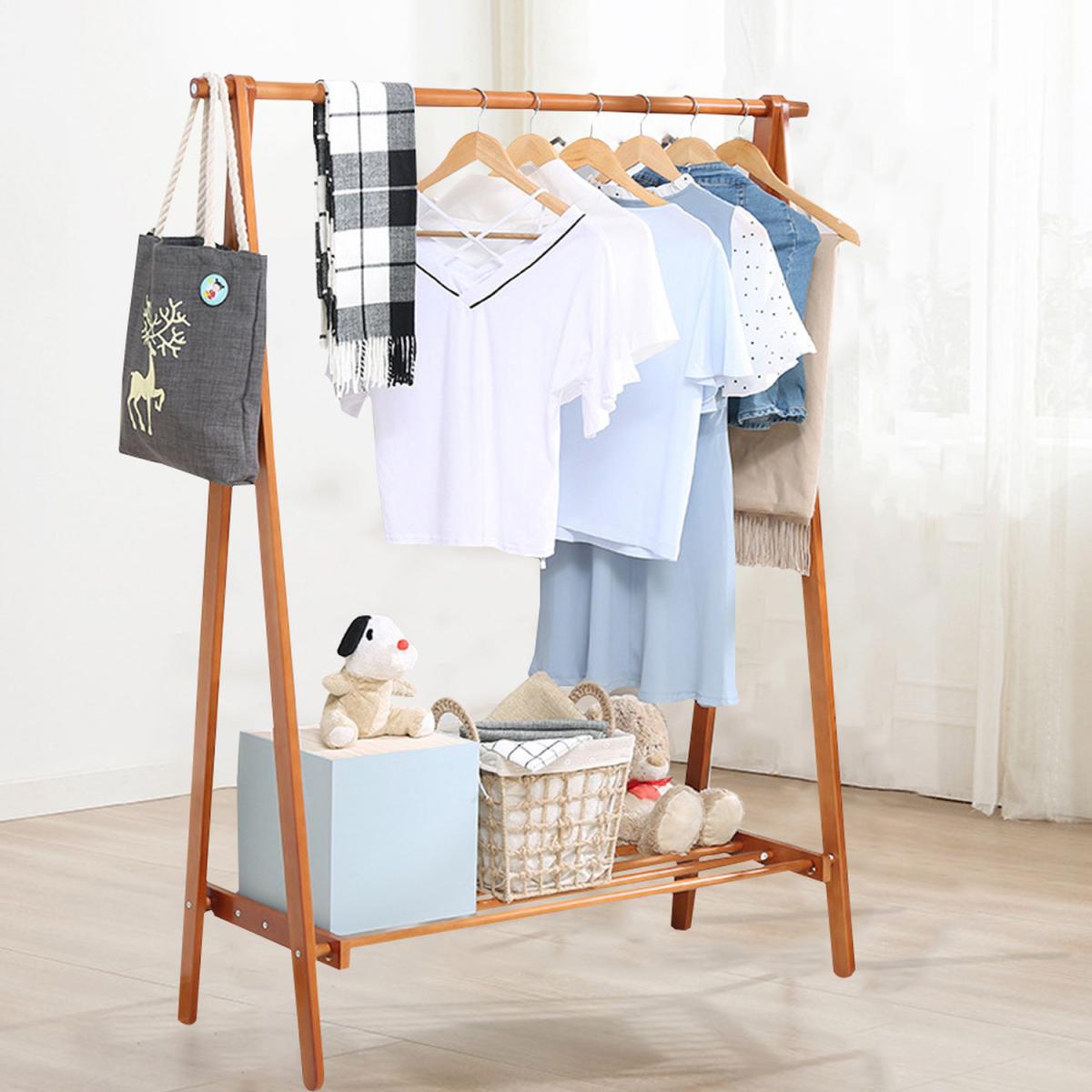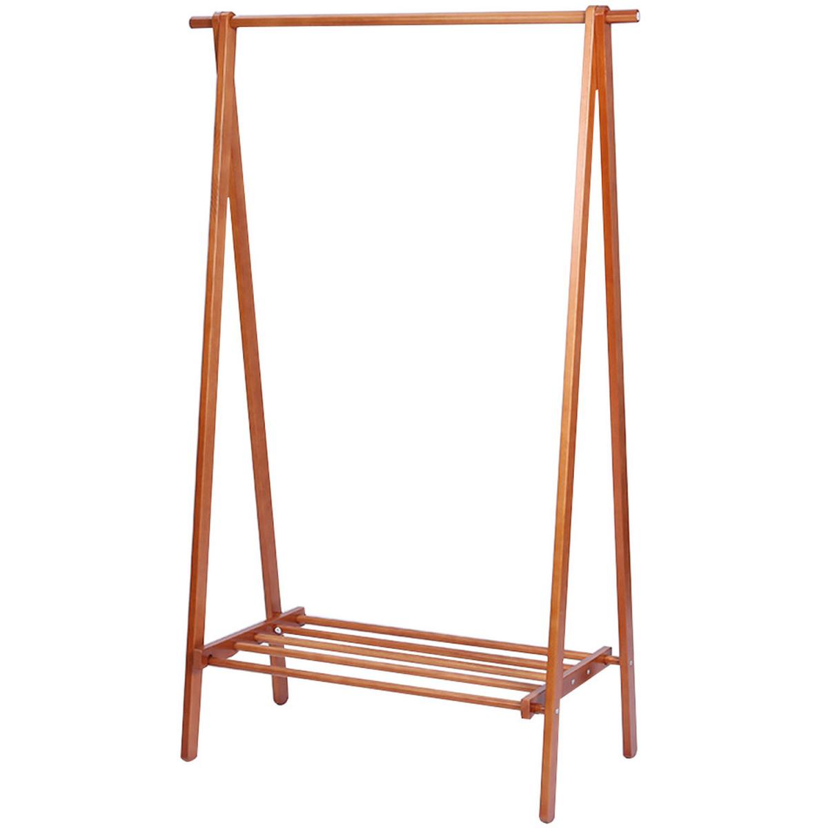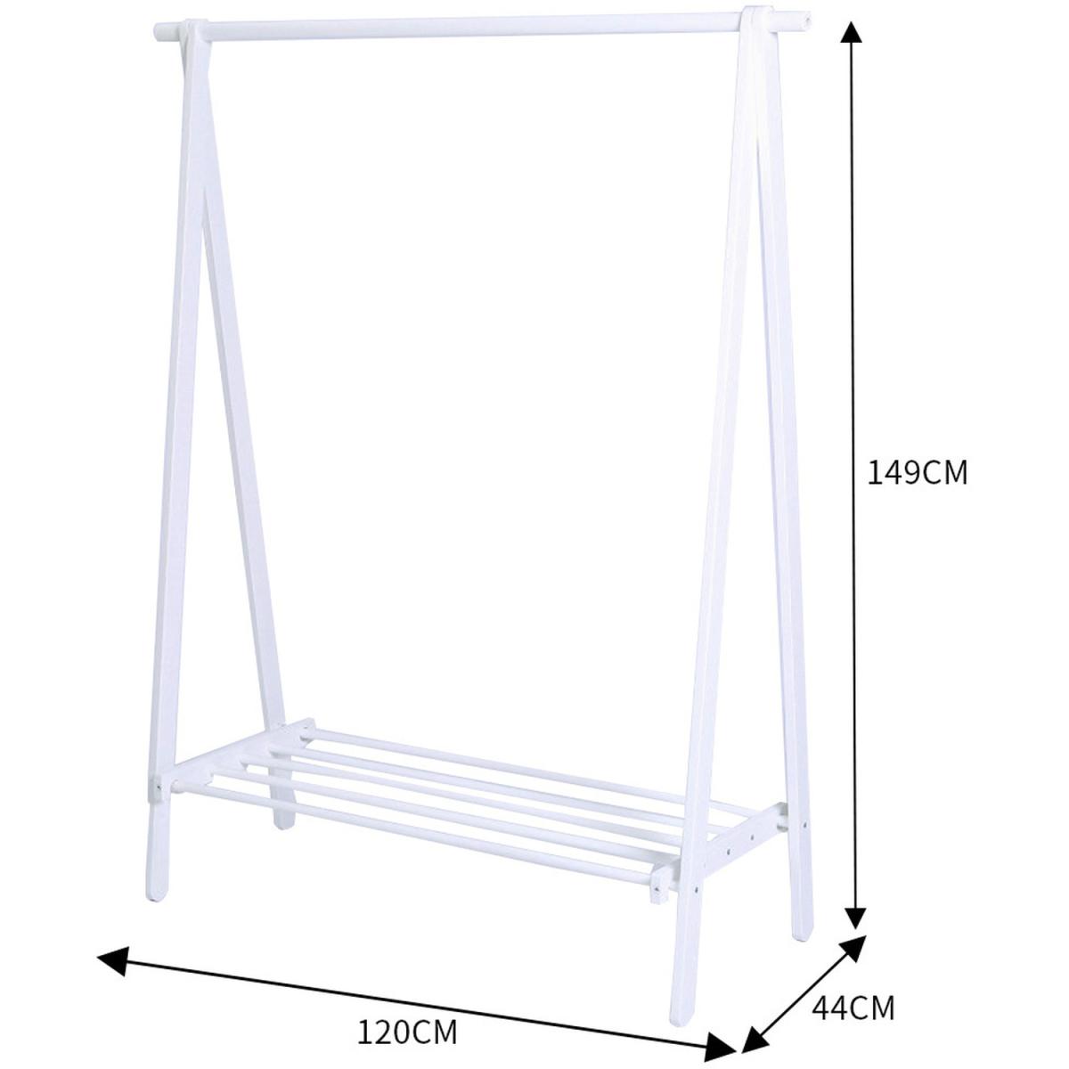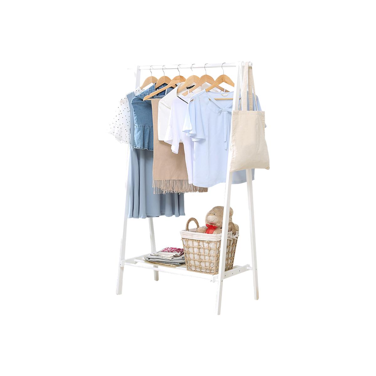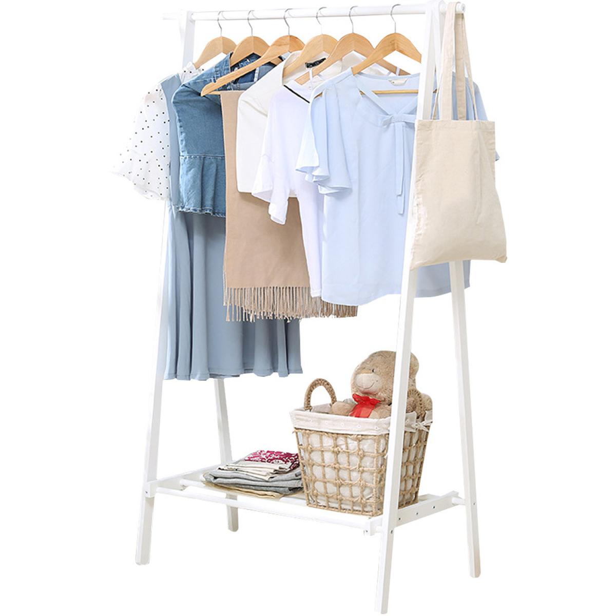 This simple and modern clothes hanging rail integrates clothes rack and a bottom shelf together for multi-purposes, e.g. hanging clothes, hats, bags and placing your shoes or accessories on the bottom shoe rack. Crafted of manufactured wood, which is sturdy, strong, firm and durable, environmentally friendly. It is suitable for bedrooms, corridors, offices, retail stores to hang up and display the clothes and shoes. Easy to assemble and move around from place to place.