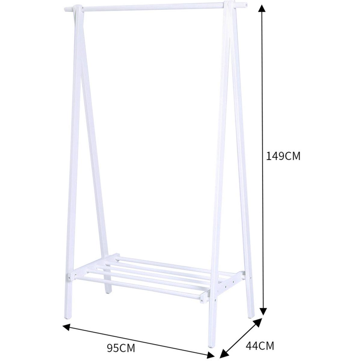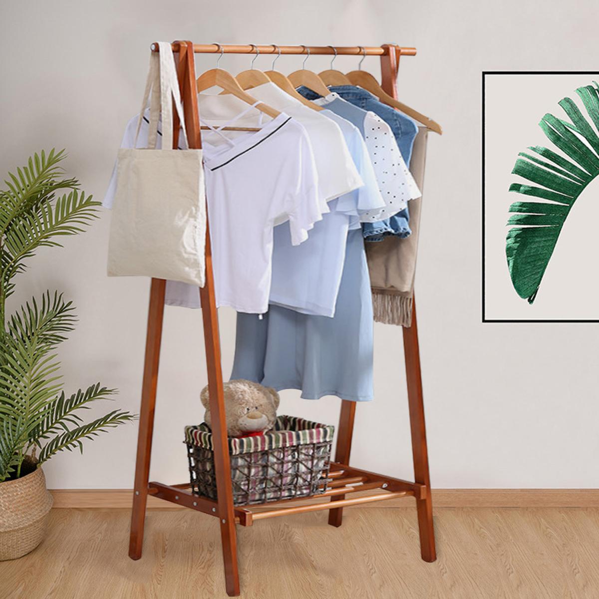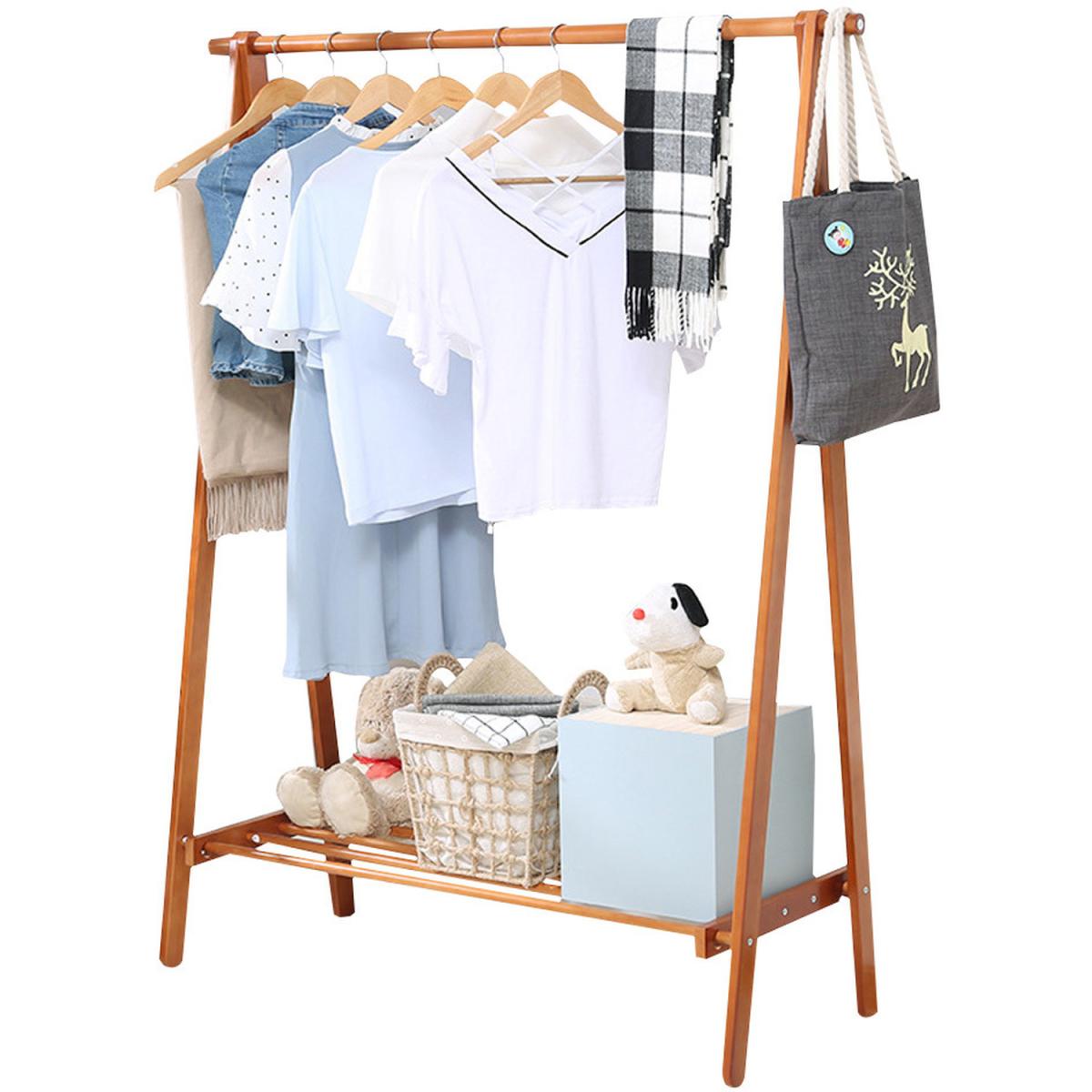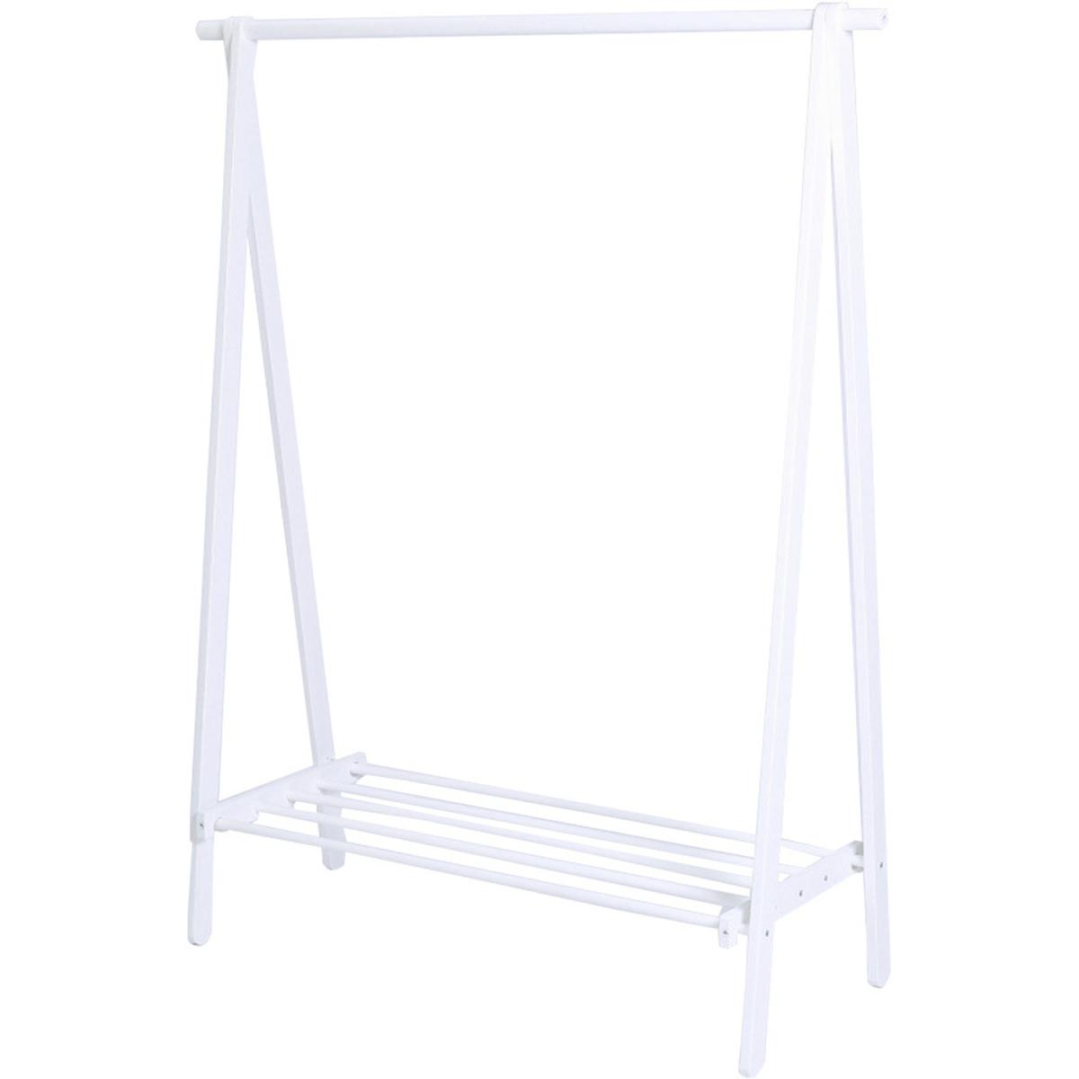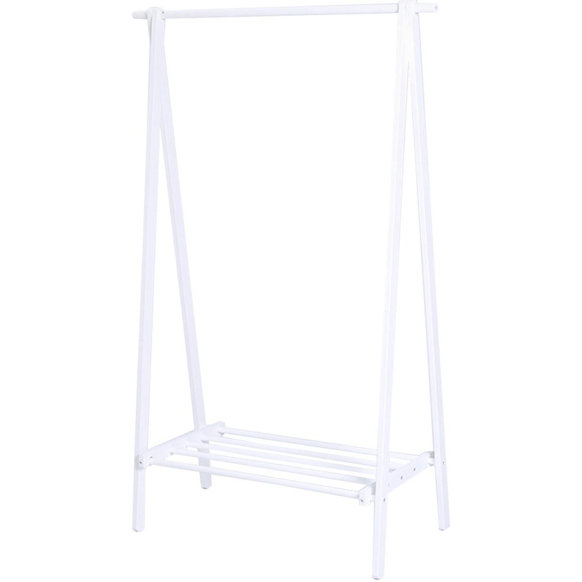 This simple and modern clothes hanging rail integrates clothes rack and a bottom shelf together for multi-purposes, e.g. hanging clothes, hats, bags and placing your shoes or accessories on the bottom shoe rack. Crafted of manufactured wood, which is sturdy, strong, firm and durable, environmentally friendly. It is suitable for bedrooms, corridors, offices, retail stores to hang up and display the clothes and shoes. Easy to assemble and move around from place to place.