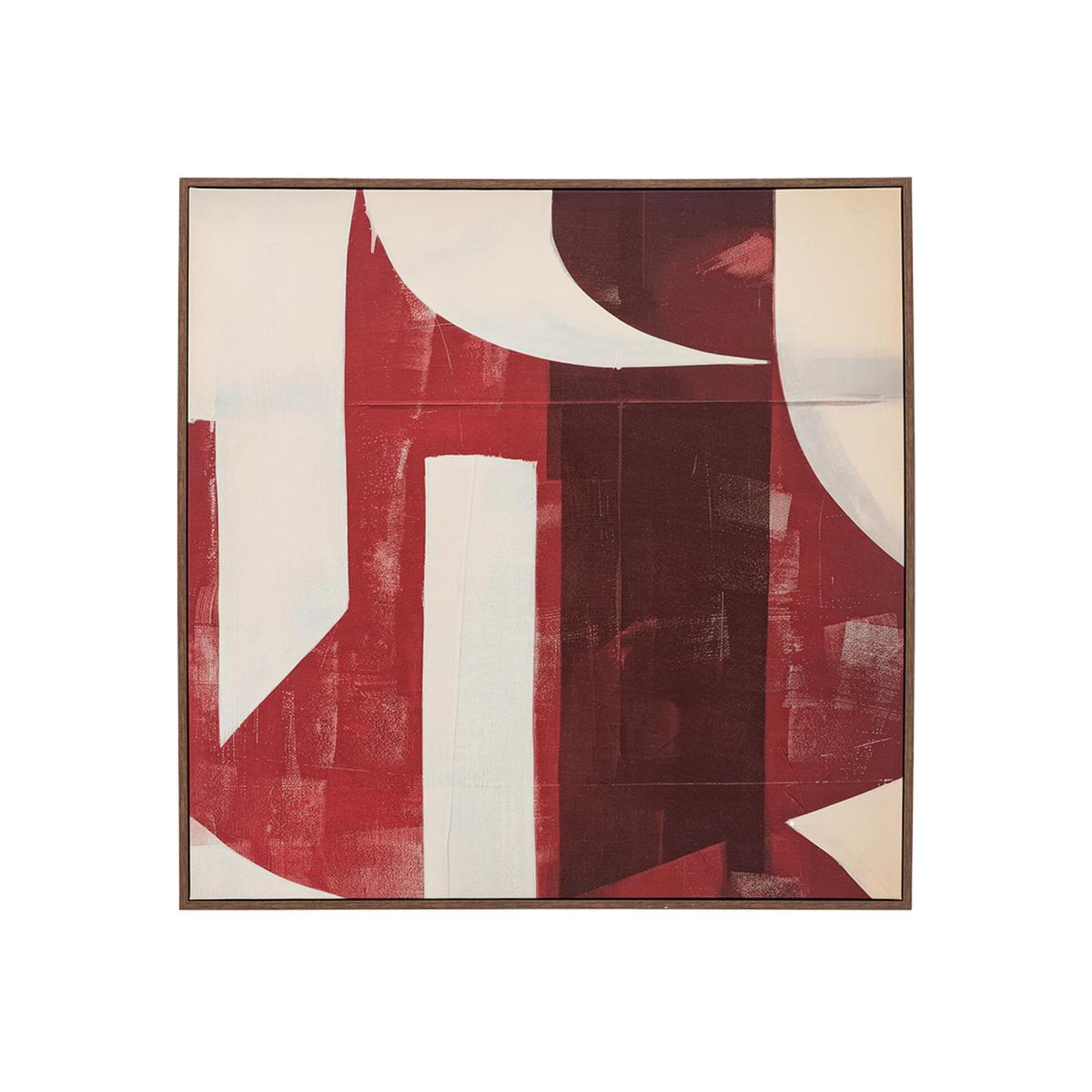 I really like this piece because of its bold, abstract design and rich garnet hue, which can add warmth and visual interest to a space. It works particularly well in modern or contemporary interiors, especially when paired with minimalist furniture or neutral palettes, allowing the artwork to be a focal point. For practical styling, consider placing it above a sofa or sideboard in a living room or hallway to create a striking centrepiece. To enhance its impact, hang it at eye level and keep surrounding decor simple, letting the colours and shapes do the talking. It’s a versatile piece that can also complement eclectic or urban styles when combined with textured or metallic accents.
