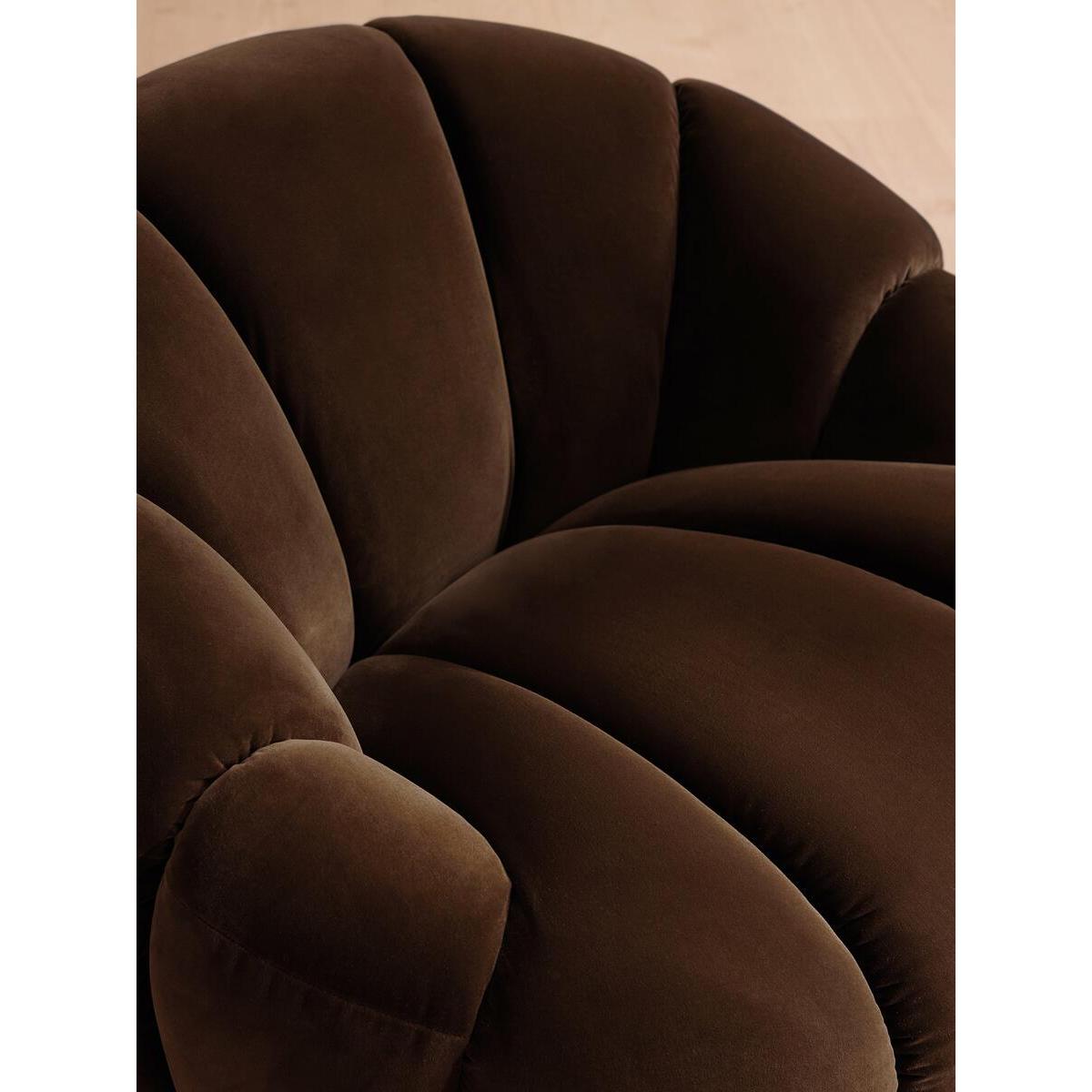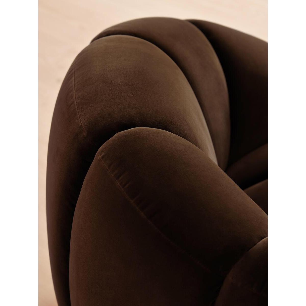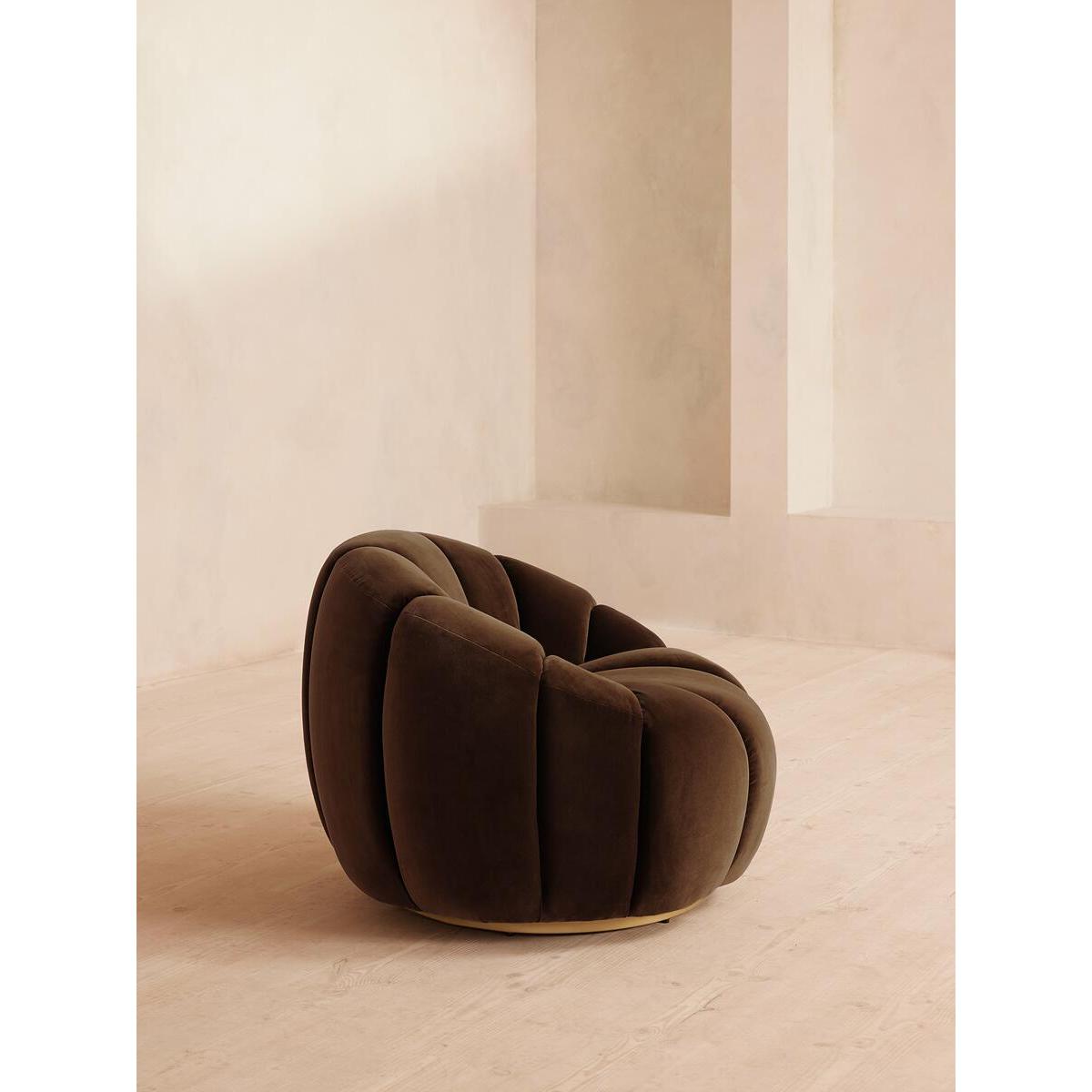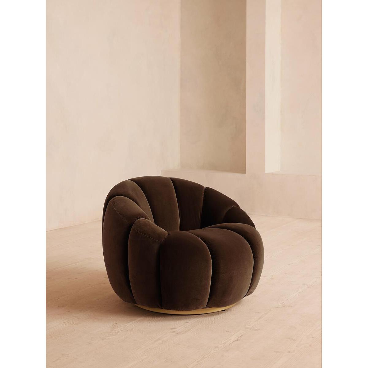 I love the Garret’s sculptural shape and plush chocolate-brown velvet - it’s inviting without overwhelming a room. Its compact footprint suits snug corners, studies or bedrooms, and the rich hue works equally well in mid-century, modern or Scandi-inspired schemes. For styling, anchor it with a low-pile neutral rug and a slim brass side table, then soften the look with a faux-sheepskin throw or textured cushion. Position beside a floor lamp or window to create a cosy reading nook, and team the deep brown with muted greens, warm ochres or soft blush accents.