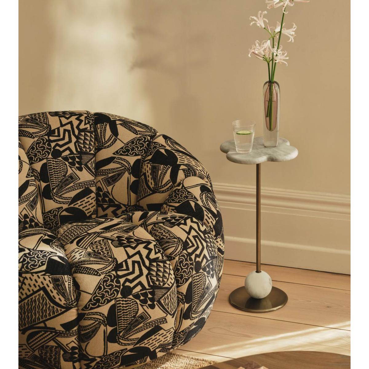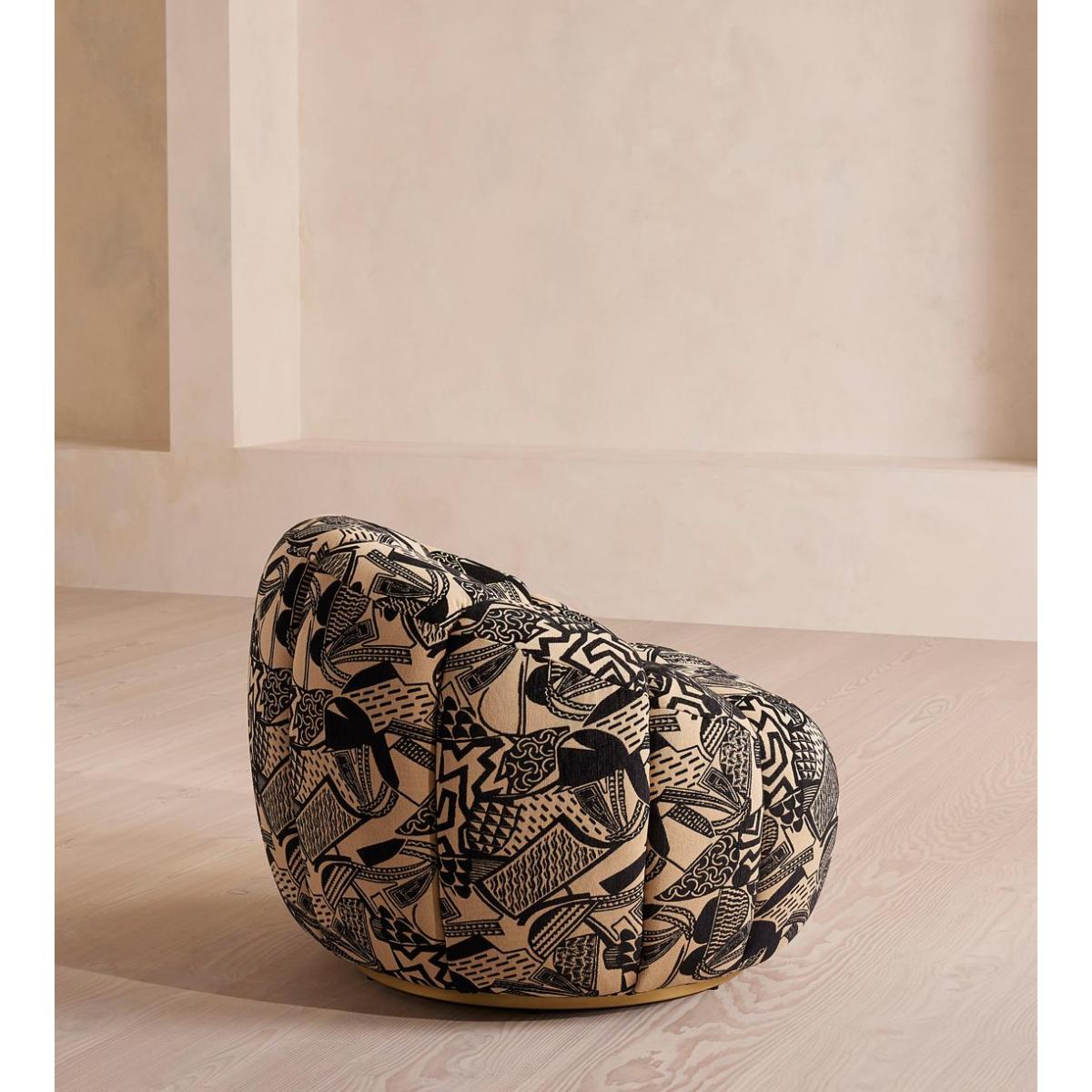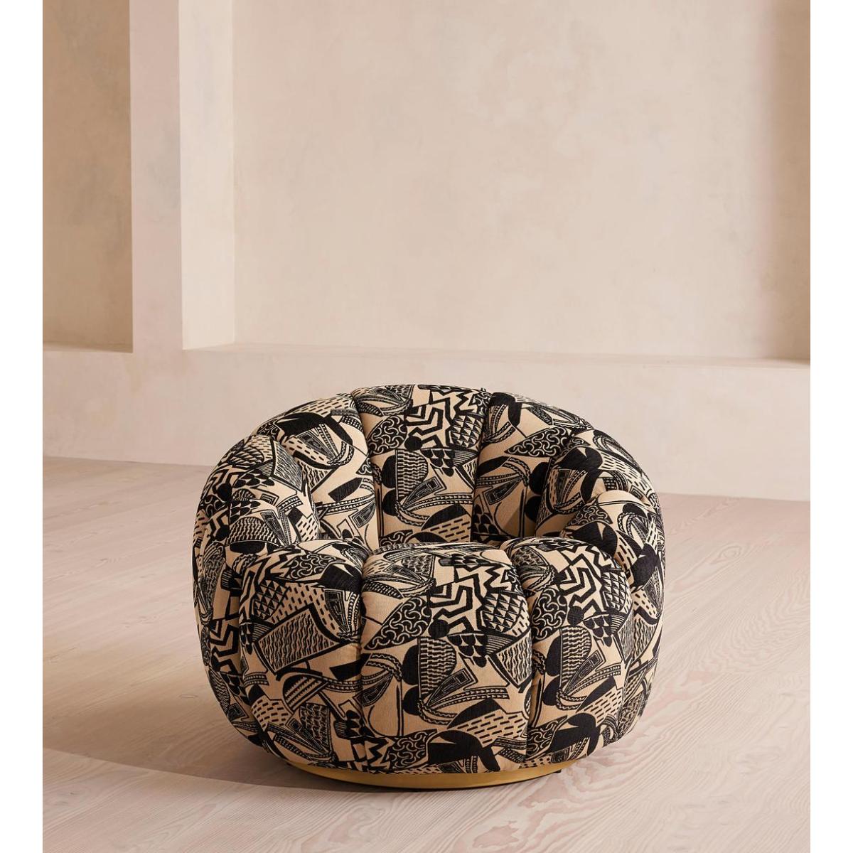 Shaped for optimal comfort, a rounded silhouette is wrapped in Daxton jacquard upholstery and perched on a brass base. With a versatile, rounded silhouette, the Garret armchair is a style found in our Houses around the world, designed to mix and match with other pieces across our collection or perfectly complement the co-ordinating footstool. Perched on a contemporary brass base, it comes fully upholstered in an in-house Daxton jacquard fabric.