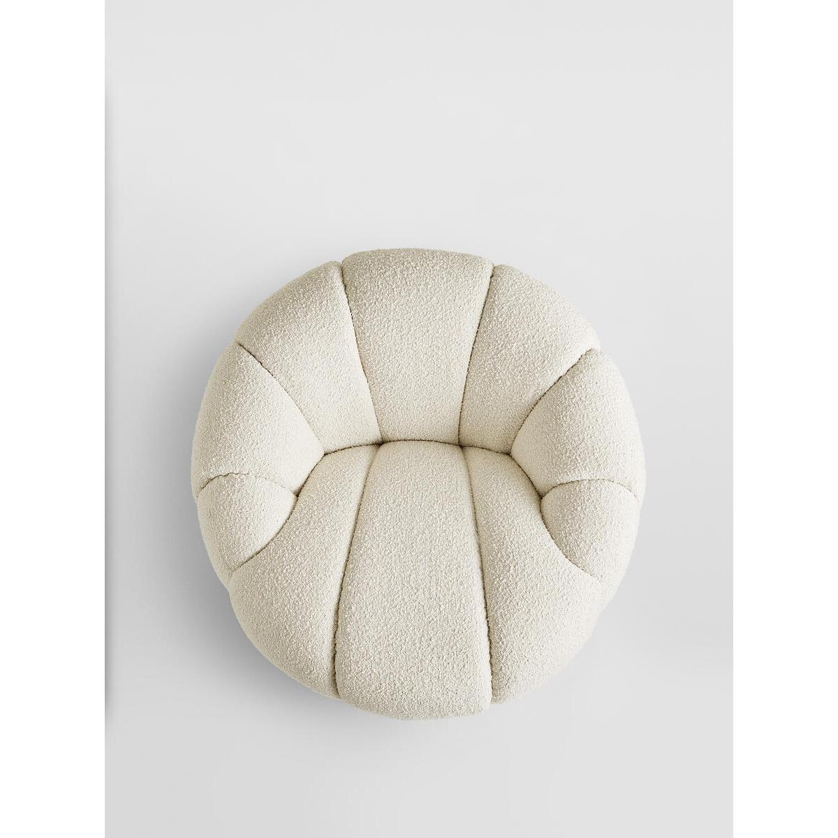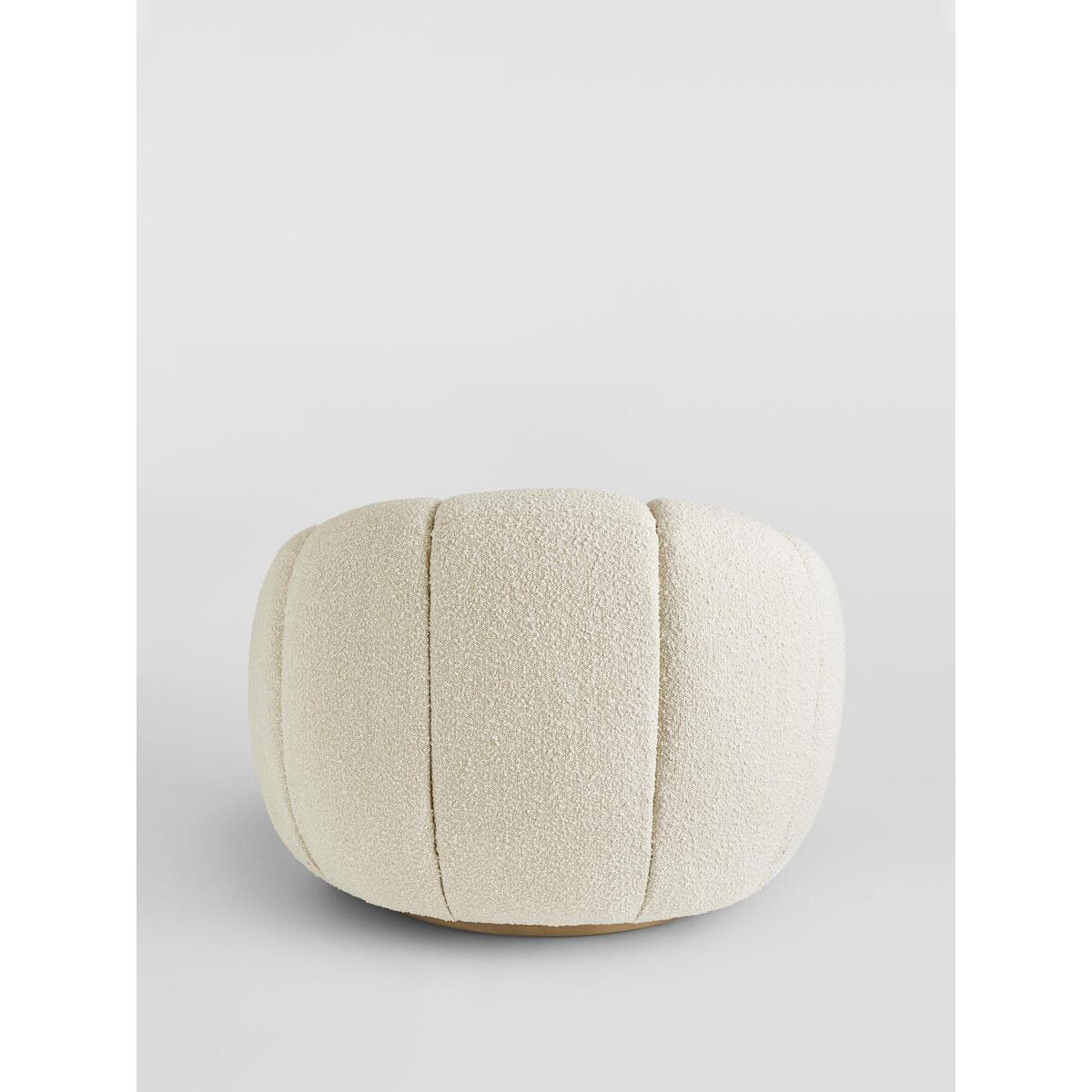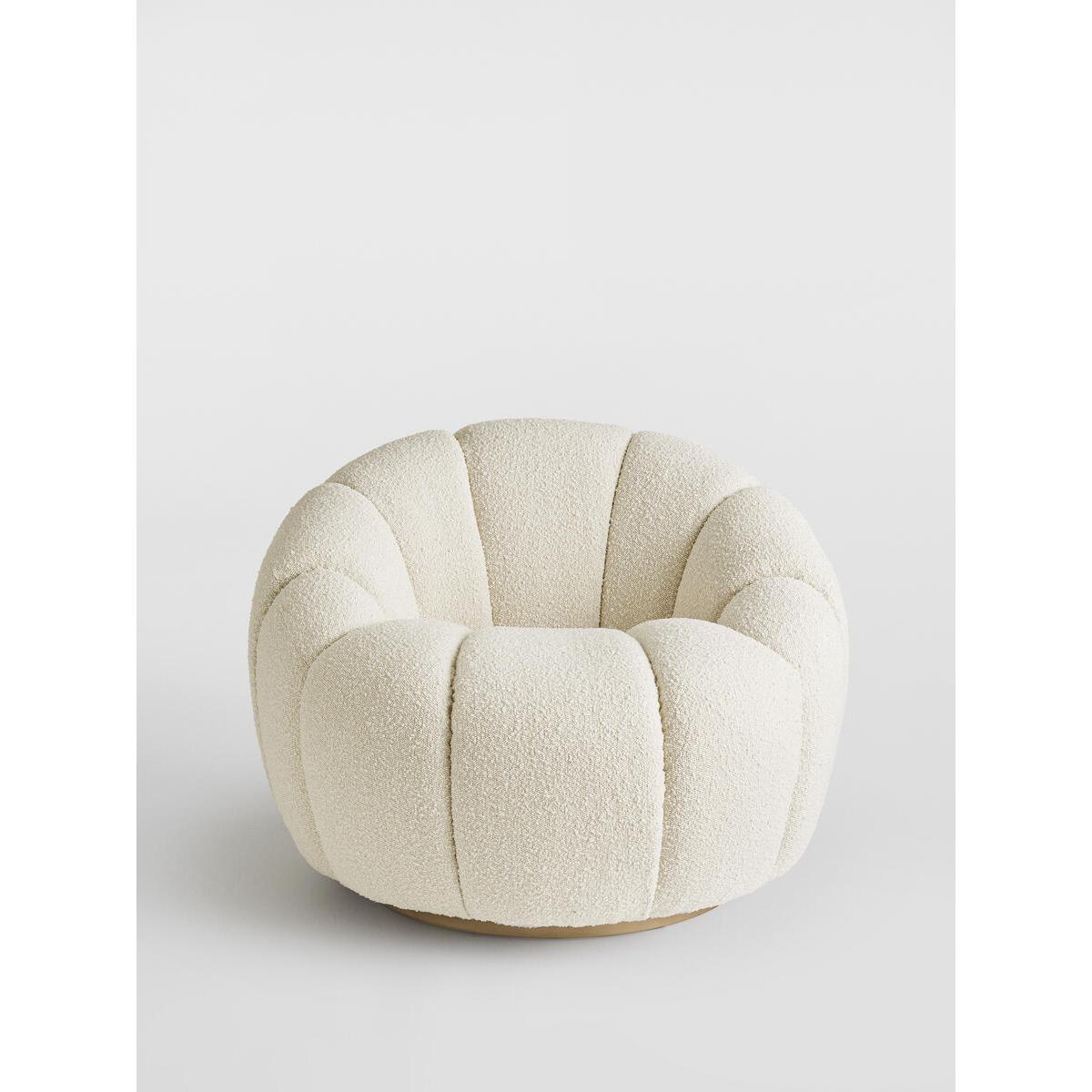 Shaped for optimal comfort and visual impact, the Garret swivelchair invites you to relax and sink into its undulating curves. Crafted from soft bouclé, it mirrors designs seen at DUMBO House in. Brooklyn. Hardwood frame. Bouclé upholstery. Inspired by DUMBO House.
