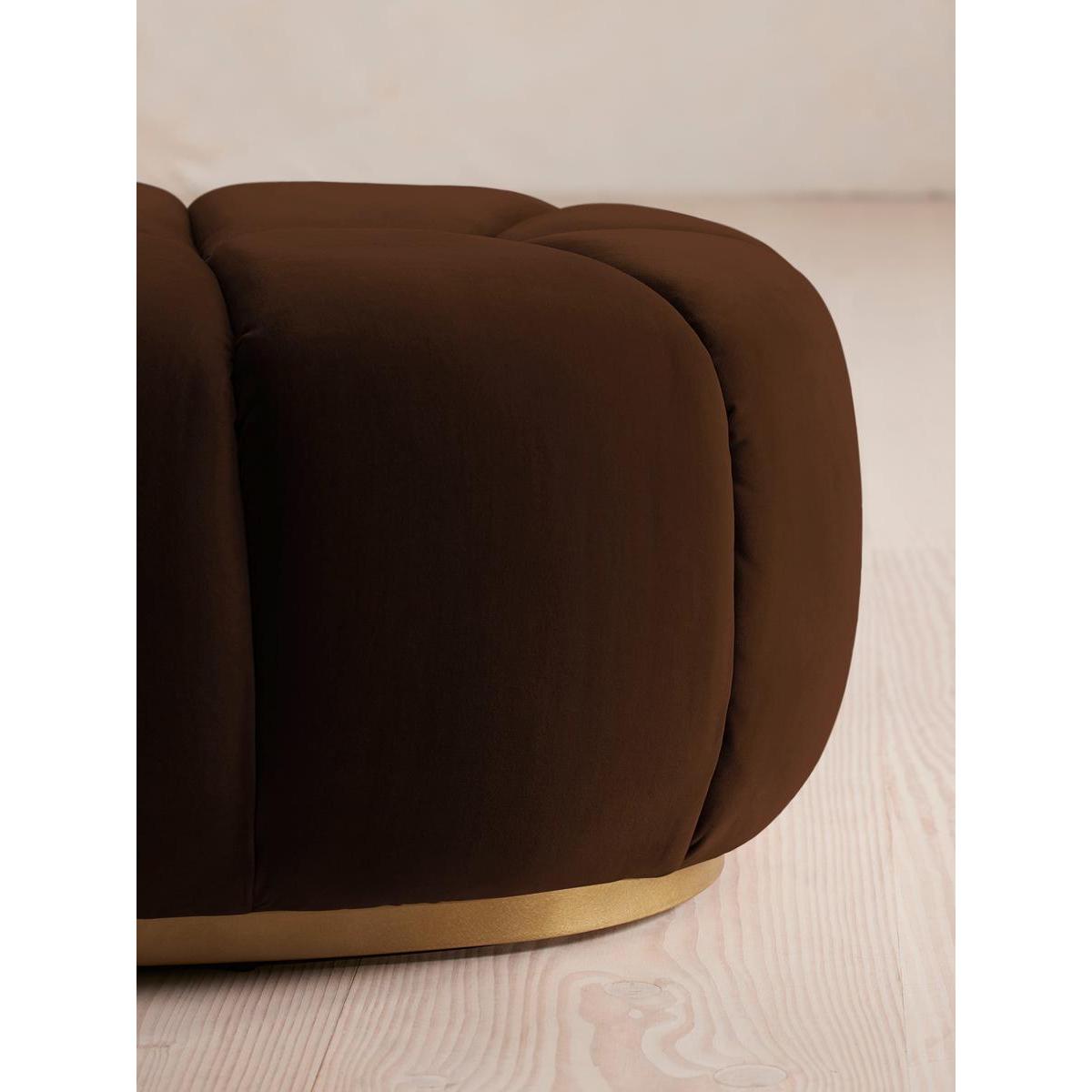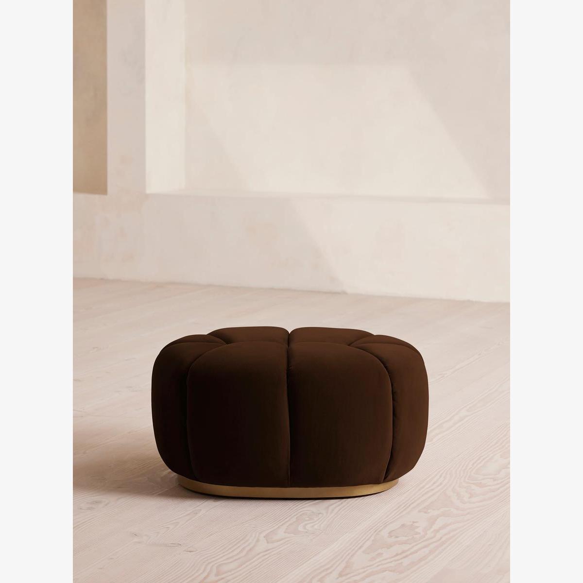 Shaped for optimal comfort, a rounded silhouette is wrapped in tactile velvet and perched on a shimmering brass base. With a versatile, rounded silhouette, this footstool is designed to mix and match with styles across our collection or perfectly complement the co-ordinating Garret armchair, which is found in our Houses around the world. Perched on a contemporary brass base, it comes fully upholstered in a choice of fabrics.