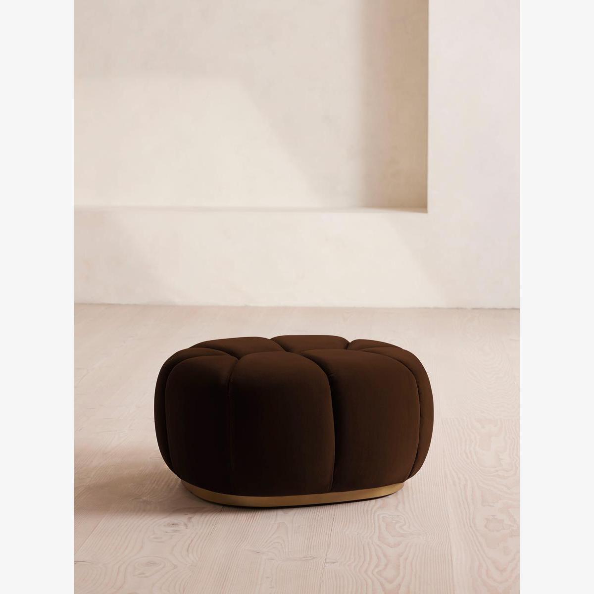 Shaped for optimal comfort, a rounded silhouette is wrapped in tactile velvet and perched on a shimmering brass base. With a versatile, rounded silhouette, this footstool is designed to mix and match with styles across our collection or perfectly complement the co-ordinating Garret armchair, which is found in our Houses around the world. Perched on a contemporary brass base, it comes fully upholstered in a choice of fabrics.