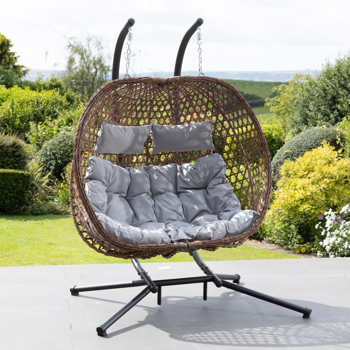 Transform your outdoor space with the Garton Double Seat Garden Swing - the perfect addition for relaxing on a warm, sunny day. This exquisite outdoor garden swing is designed for ultimate luxury, allowing you to read your favourite book or simply bask in the tranquility of your garden. The Garton Swing features a solid, powder-coated metal frame that ensures robust stability and long-lasting durability. Its stylish rattan effect hanging basket adds a touch of sophistication, seamlessly blending with your outdoor decor. The soft, fibre-filled seat and headrest cushions are water-resistant, providing exceptional comfort and resilience against the elements. Enjoy the gentle sway of the Garton swing chair, supported by a reliable spring suspension system that offers a smooth and soothing rocking motion. Tested to a 150kg user weight limit, this swing chair guarantees strength and safety for users of various sizes, allowing you to relax with complete peace of mind. Whether you're creating a peaceful retreat for two or a cosy spot for intimate gatherings, the Garton Double Seat Garden Swing promises hours of luxurious comfort and enjoyment. Its spacious design and superior comfort make it a standout piece in any garden, patio, or balcony. Enhance your outdoor living experience with the Garton Double Seat Garden Swing. Embrace the beauty and serenity of your garden, making every sunny day a special occasion. Invest in the Garton Swing today and elevate your outdoor sanctuary with unparalleled comfort and style. The Garton Double Seat Garden Swing is not just a piece of furniture it's an invitation to relax and rejuvenate. Perfect for those who value both elegance and comfort, this swing is a must-have for any garden enthusiast. Make the Garton Swing a part of your outdoor haven and enjoy the ultimate in garden relaxation.