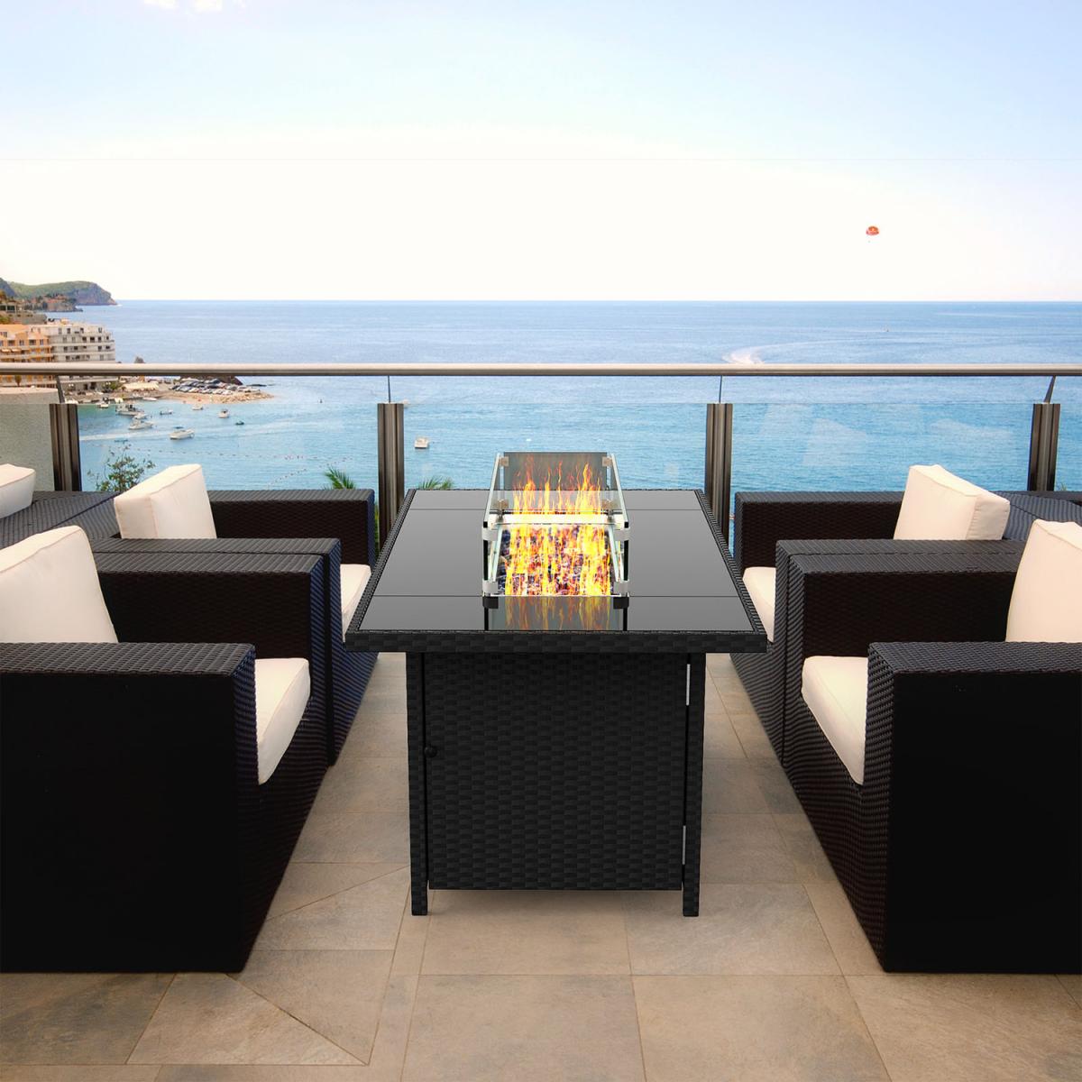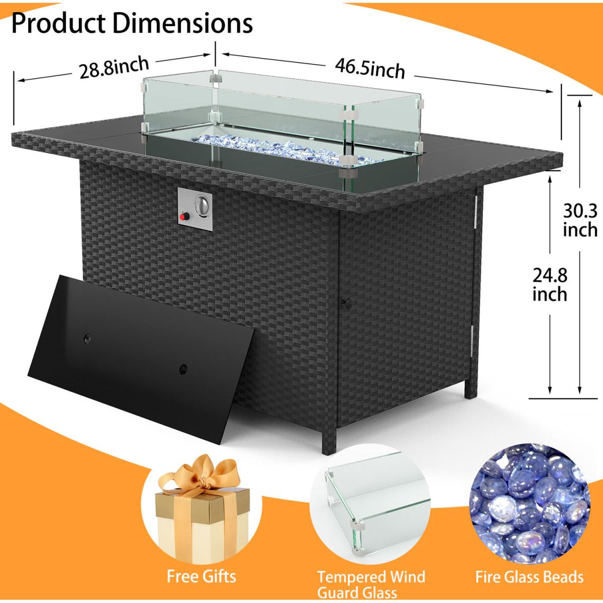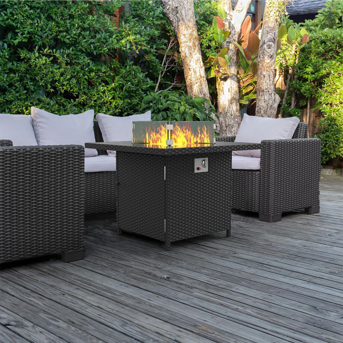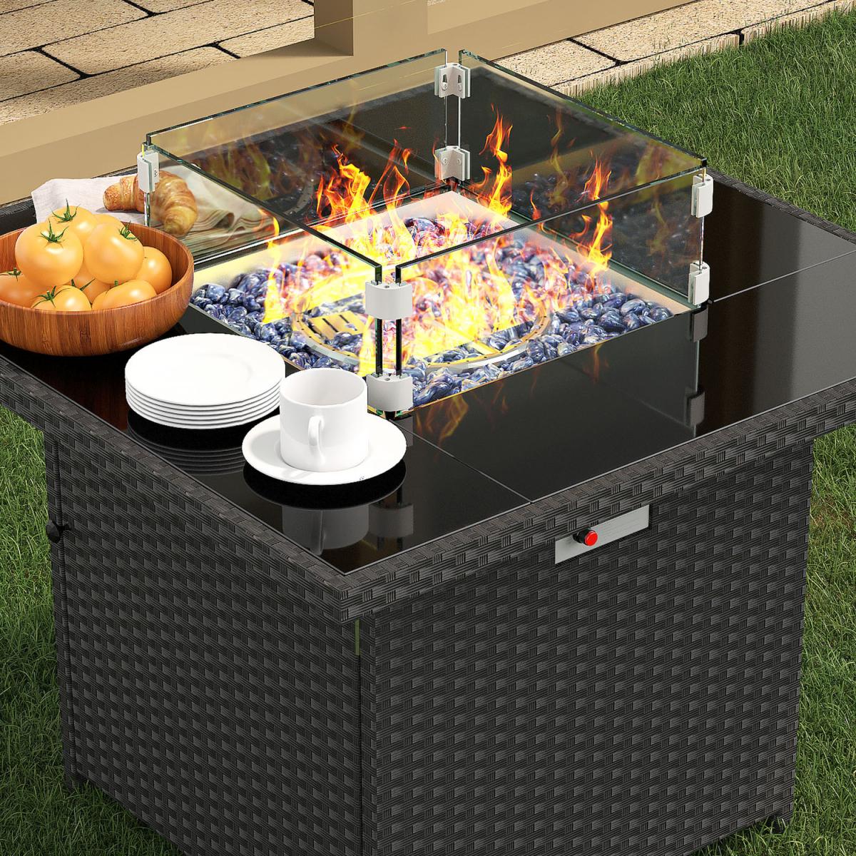 Fire table is well-spaced enough for holding drinks, food, and snacks for your party or romantic meat outdoors. Equipped with a quick-start electronic ignition system and variable flame control, you can light up the flame safely with a simple push-and-turn and adjust the flame to your desired temperature by turning the control button. This Gas fire pit can be easily transformed into a practical outdoor dining table, coffee table or bar table by covering the lid to meet your various needs.