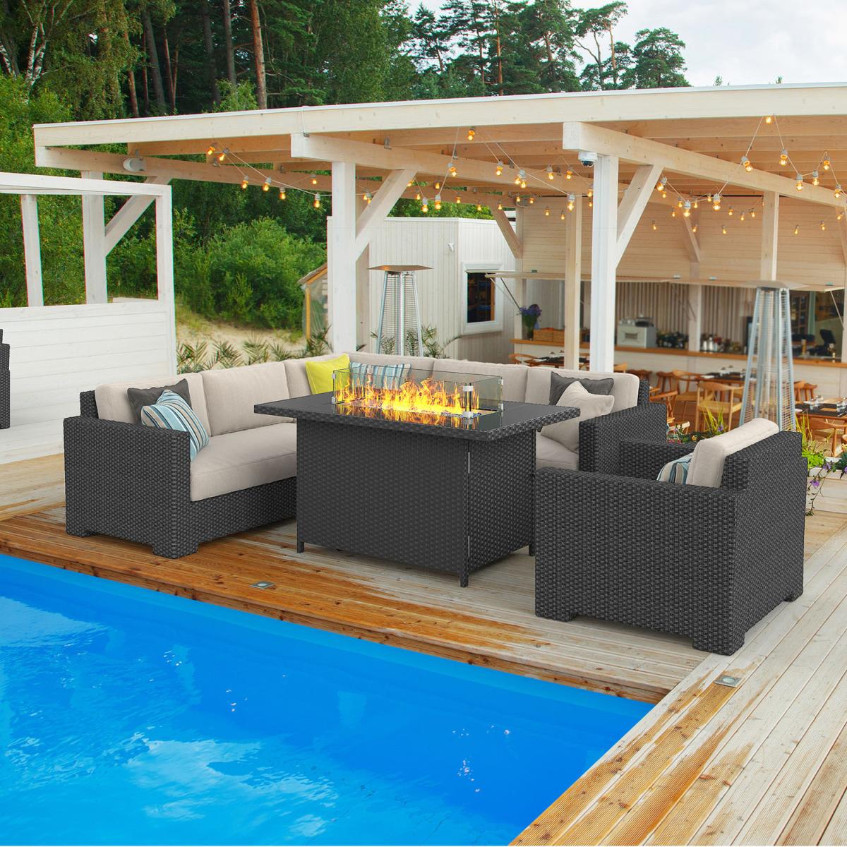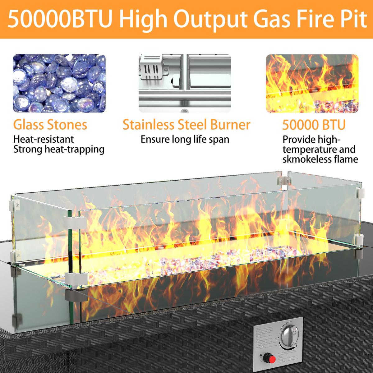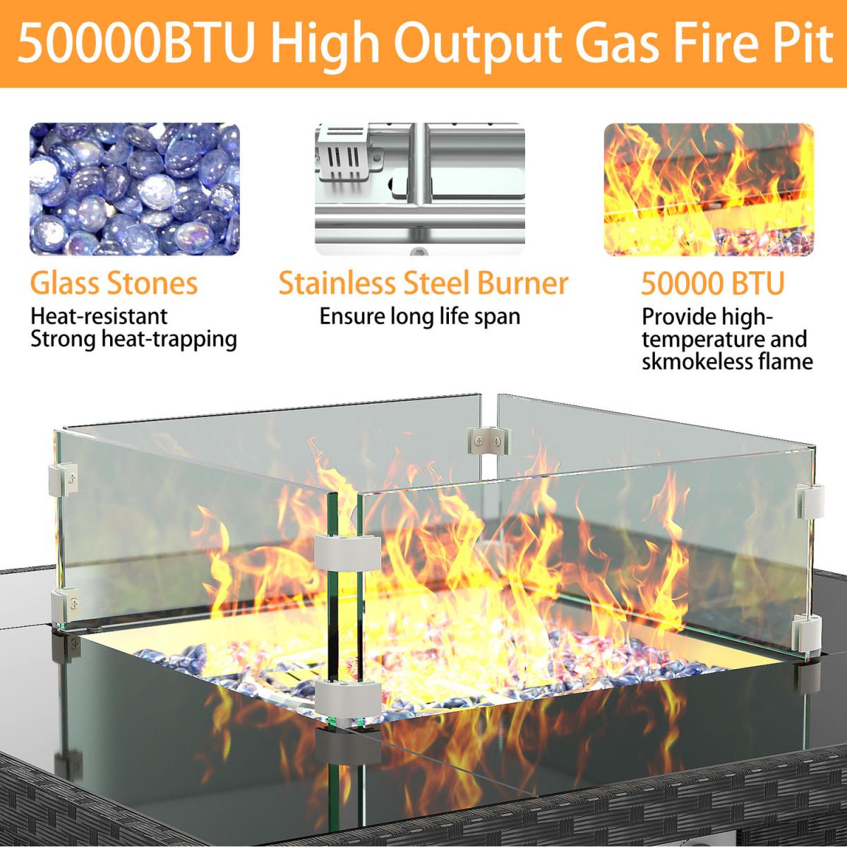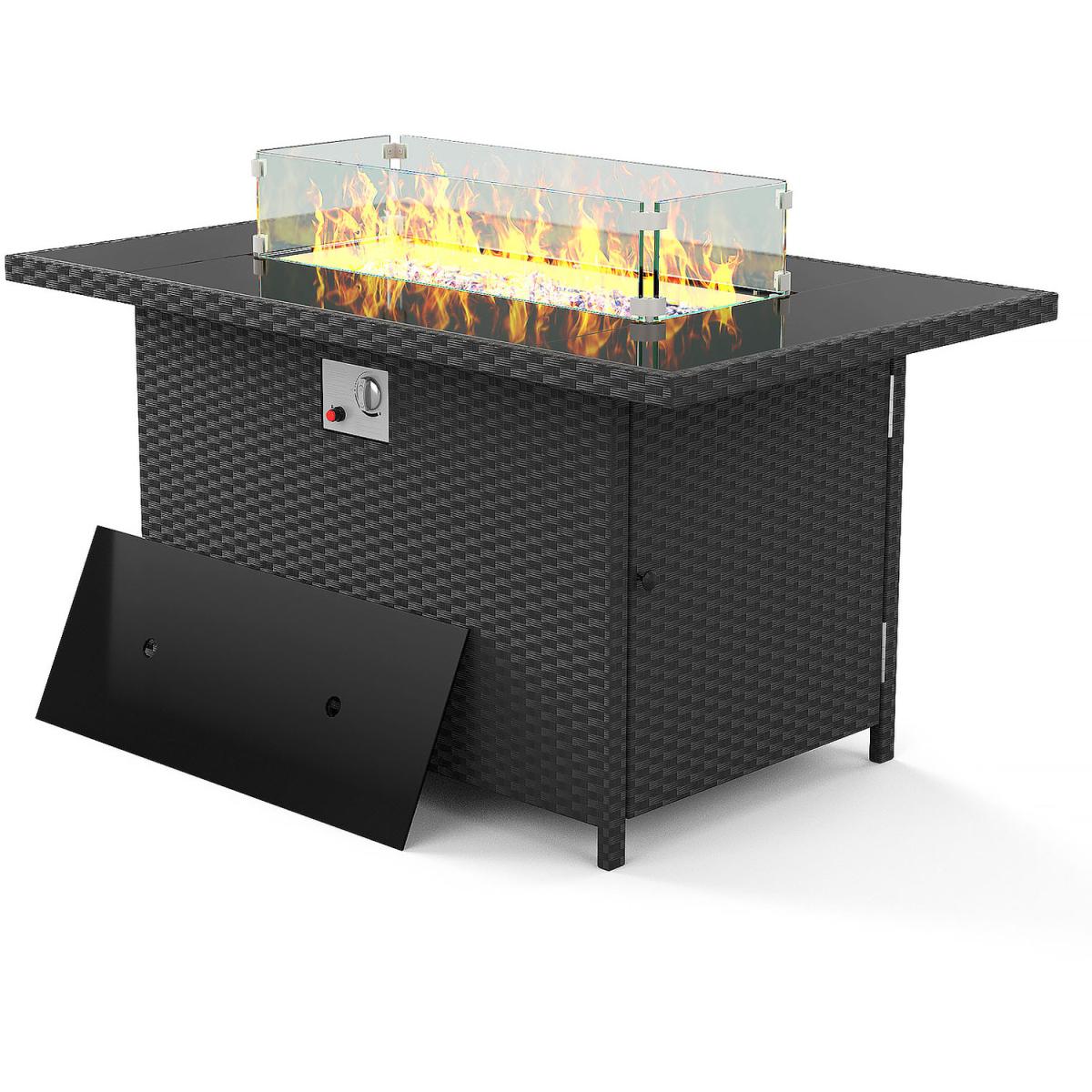 Fire table is well-spaced enough for holding drinks, food, and snacks for your party or romantic meat outdoors. Equipped with a quick-start electronic ignition system and variable flame control, you can light up the flame safely with a simple push-and-turn and adjust the flame to your desired temperature by turning the control button. This Gas fire pit can be easily transformed into a practical outdoor dining table, coffee table or bar table by covering the lid to meet your various needs.