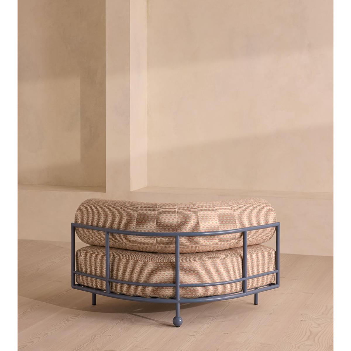 A modular silhouette in weather-resistant linen upholstery is designed to adapt to your outside space. Designed to stand alone or mix and match with other individual modules, the Gaspard sofa is made for flexible outdoor seating. A deep sage-green stainless steel frame wraps around bolster cushions and extra-deep seats, each upholstered in a neutral linen that's suitable for outdoor use.