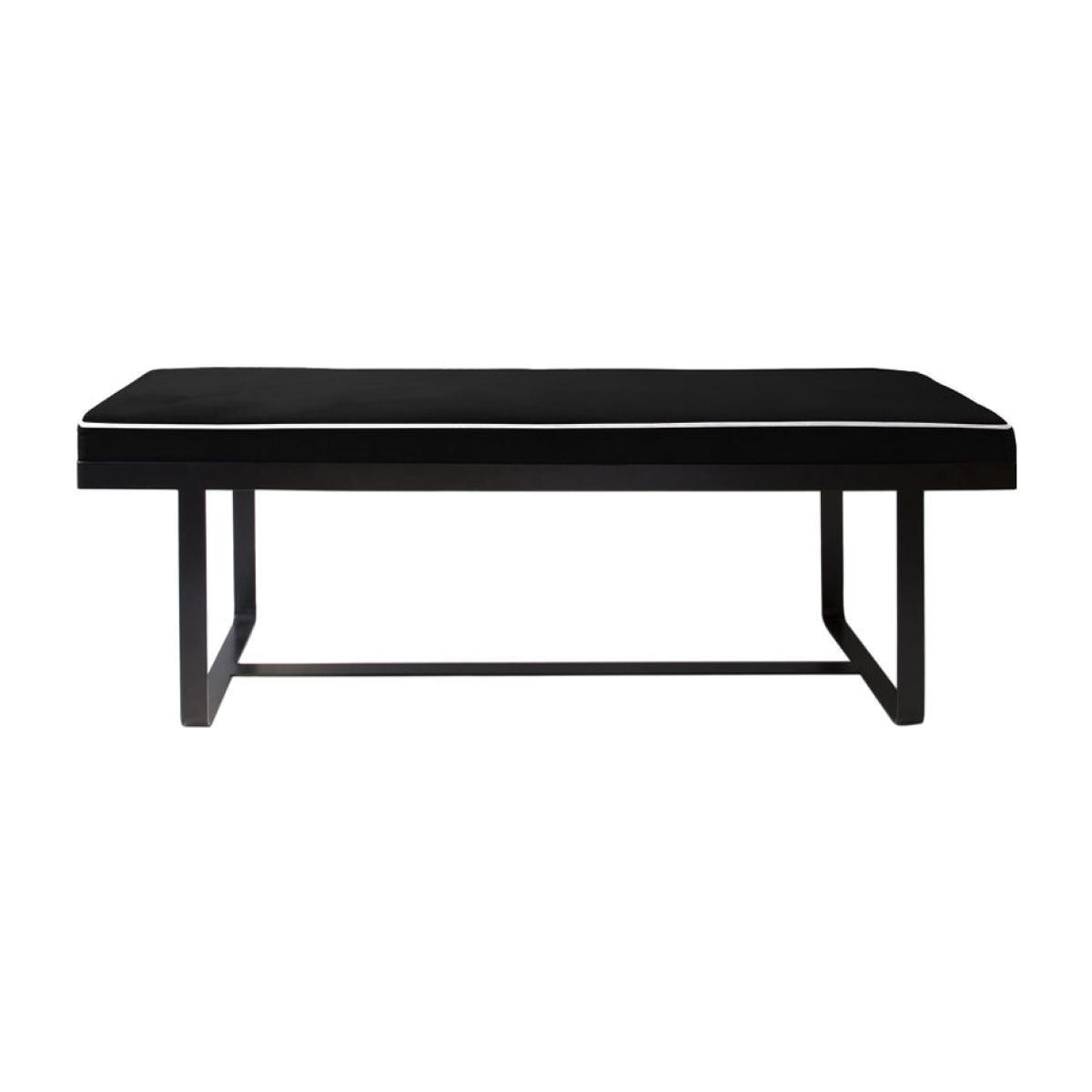 This bench exudes a refined and glamorous feel that will give your dining room table a new twist. Its comfortable padded seat is covered with a luxurious black velvet that feels warm and silky to the touch. The contours of its cushion are highlighted elegantly with white piping. The black metal industrial-style structure ensures perfect stability. This bench will add a certain cosy conviviality to your home. It would be ideal around a table, in a living room or to create a chic lounge area in any room of the house: a bedroom, entrance or dressing room.
