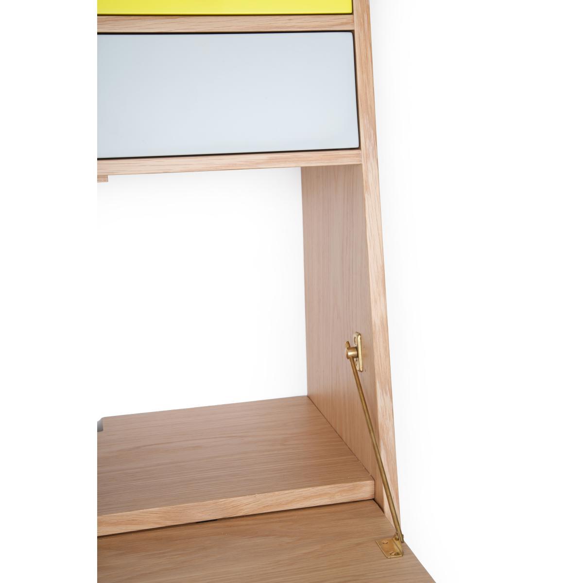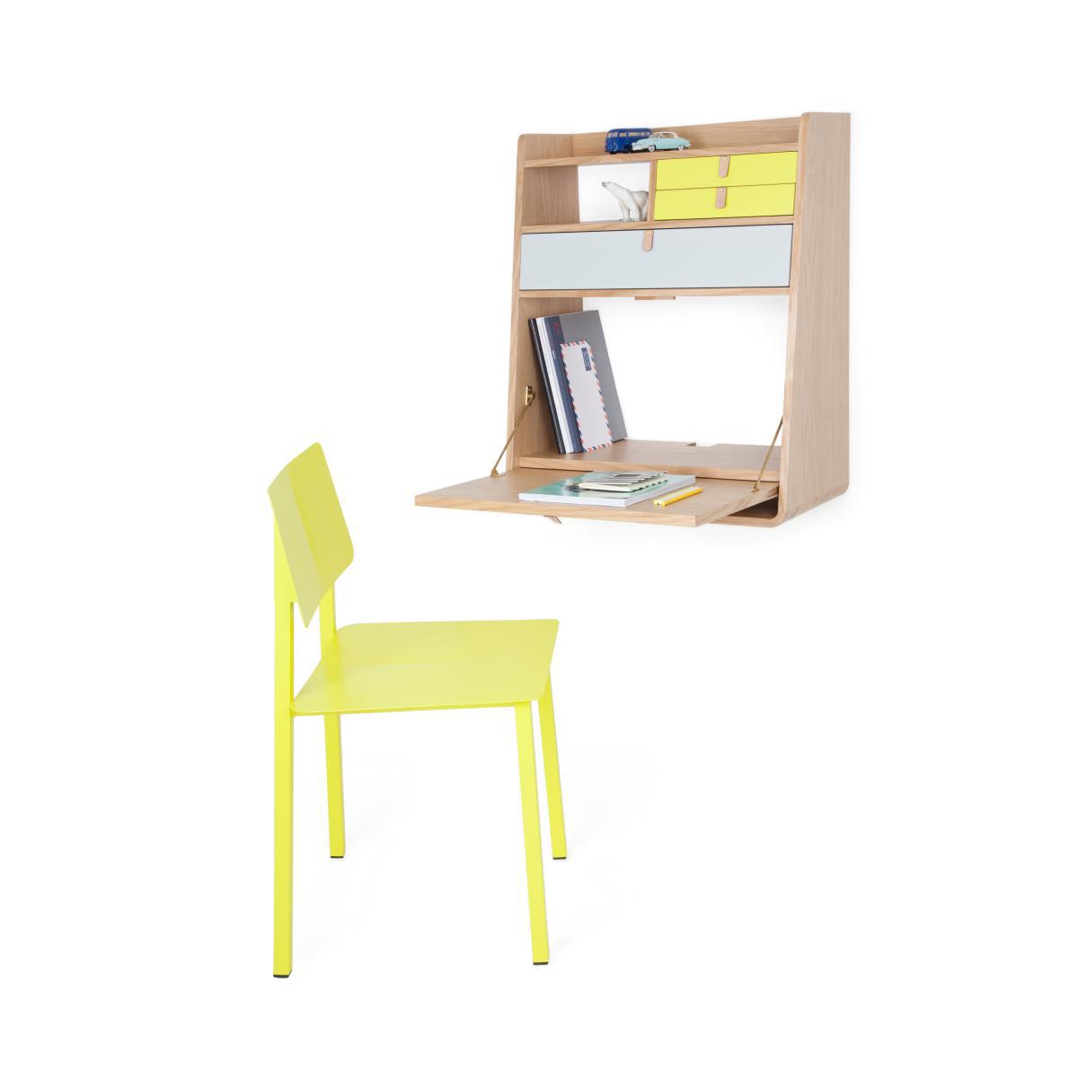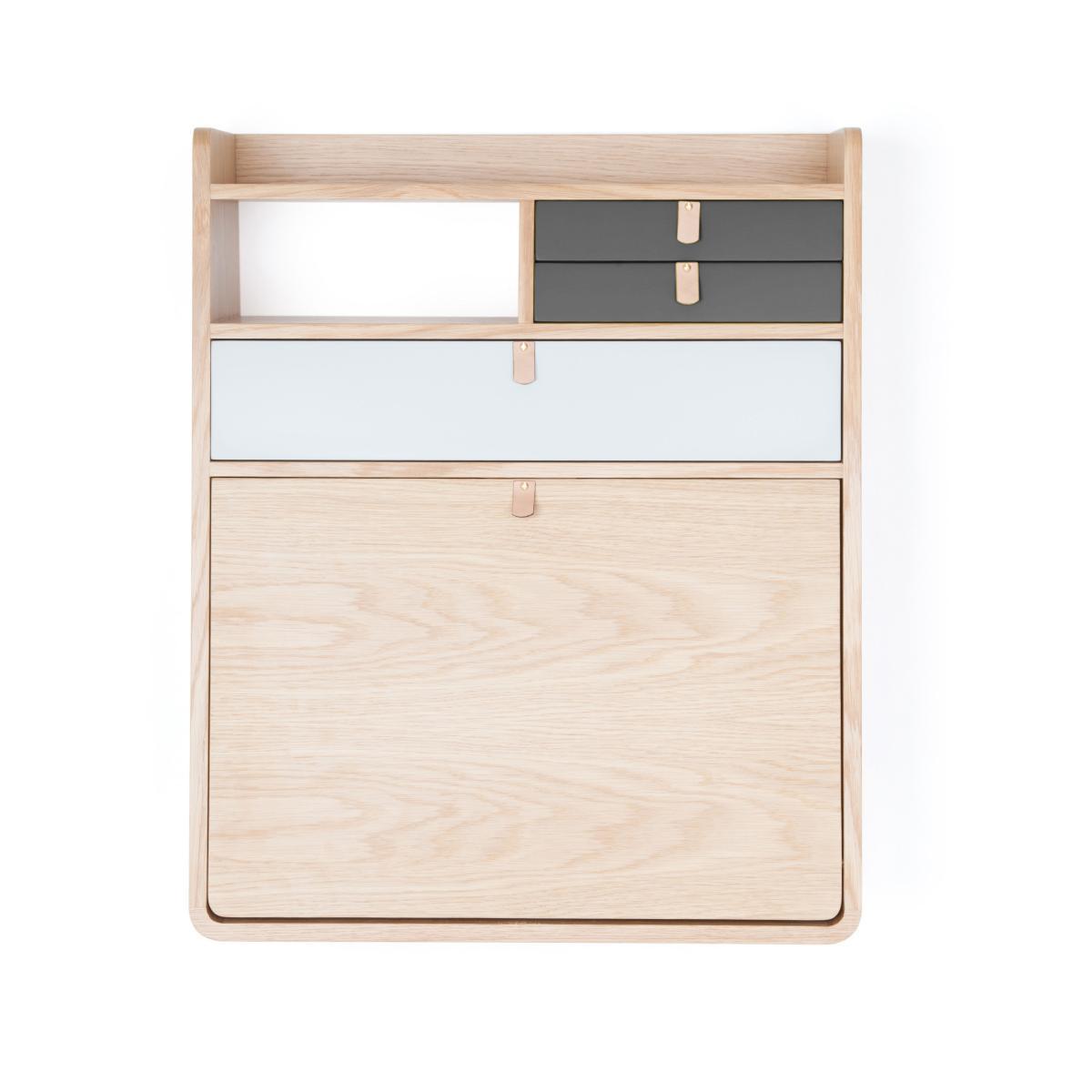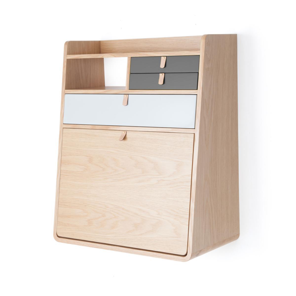This wall desk secretary hangs on the wall and can be used as a shelf, a console or a secretary desk. It combines a unique and discrete aesthetic.
