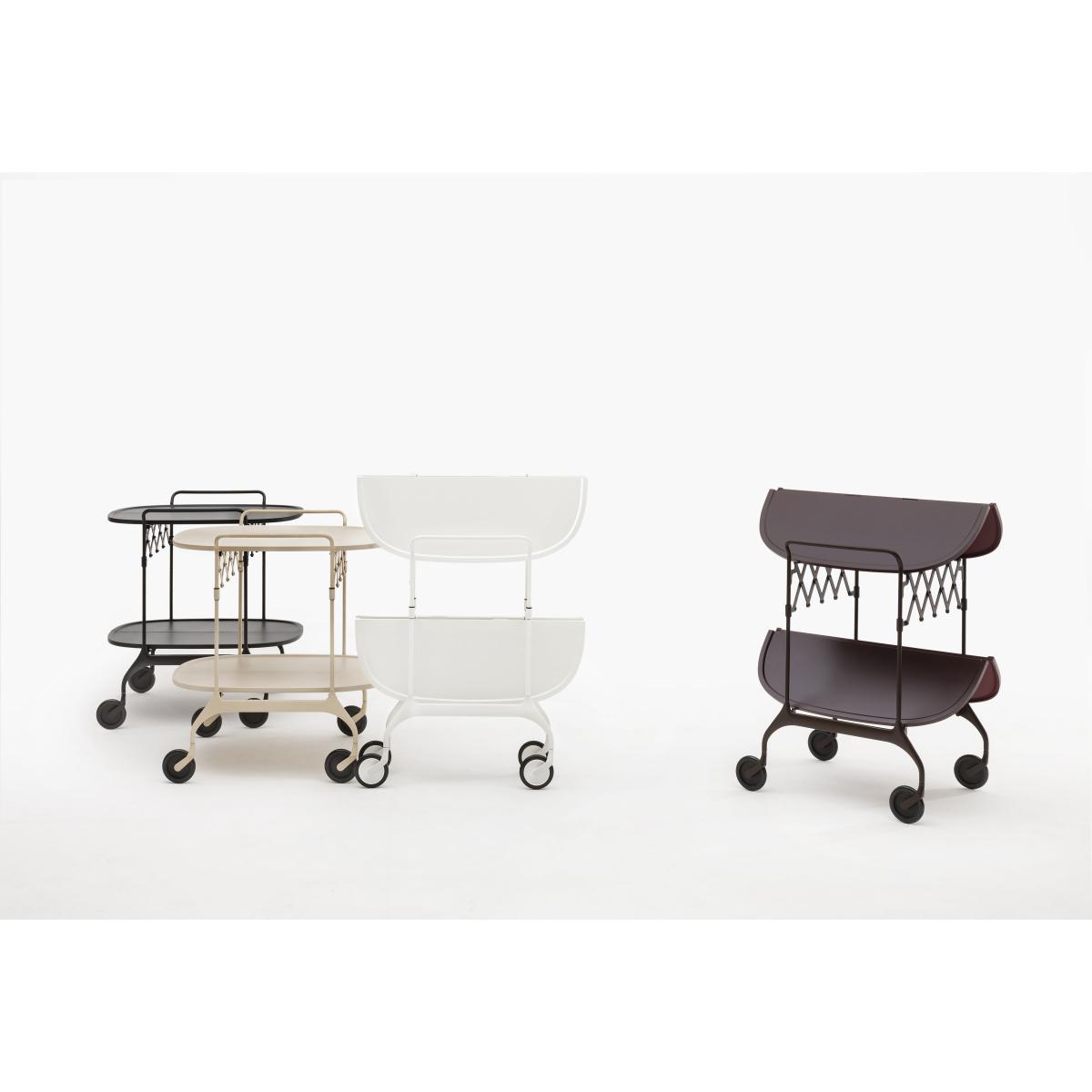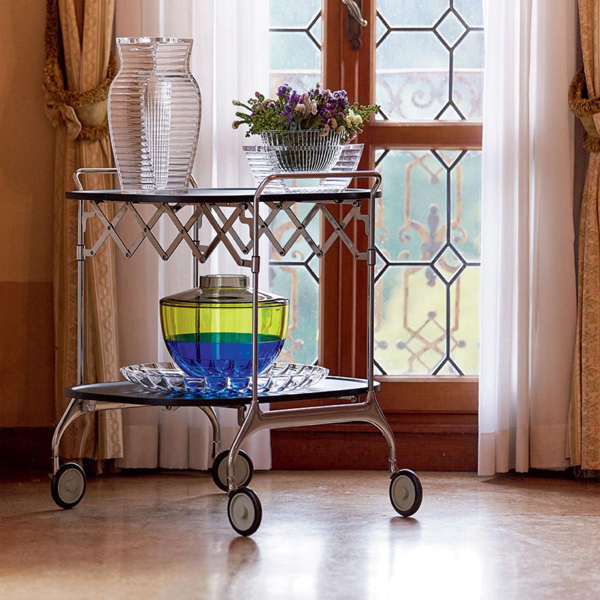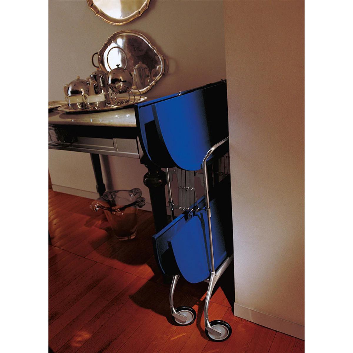 Iconic Kartell products appear in a new light with an original matt finish, elegant and trendy. Soft to the touch, the matt and satin surfaces give these great classics a contemporary, refined dimension. Created in 1991 by Italian designer Antonio Citterio, Gastone is an elegant folding trolley with two plastic shelves with an anti-scratch finish. The structure is made of steel, painted the same colour as the shelves. Thanks to its casters and handles, this trolley moves effortlessly from the kitchen to the living room. It is perfect as a side table for a buffet or aperitif. Once closed, this trolley is very small (23 cm deep) and easy to store away.