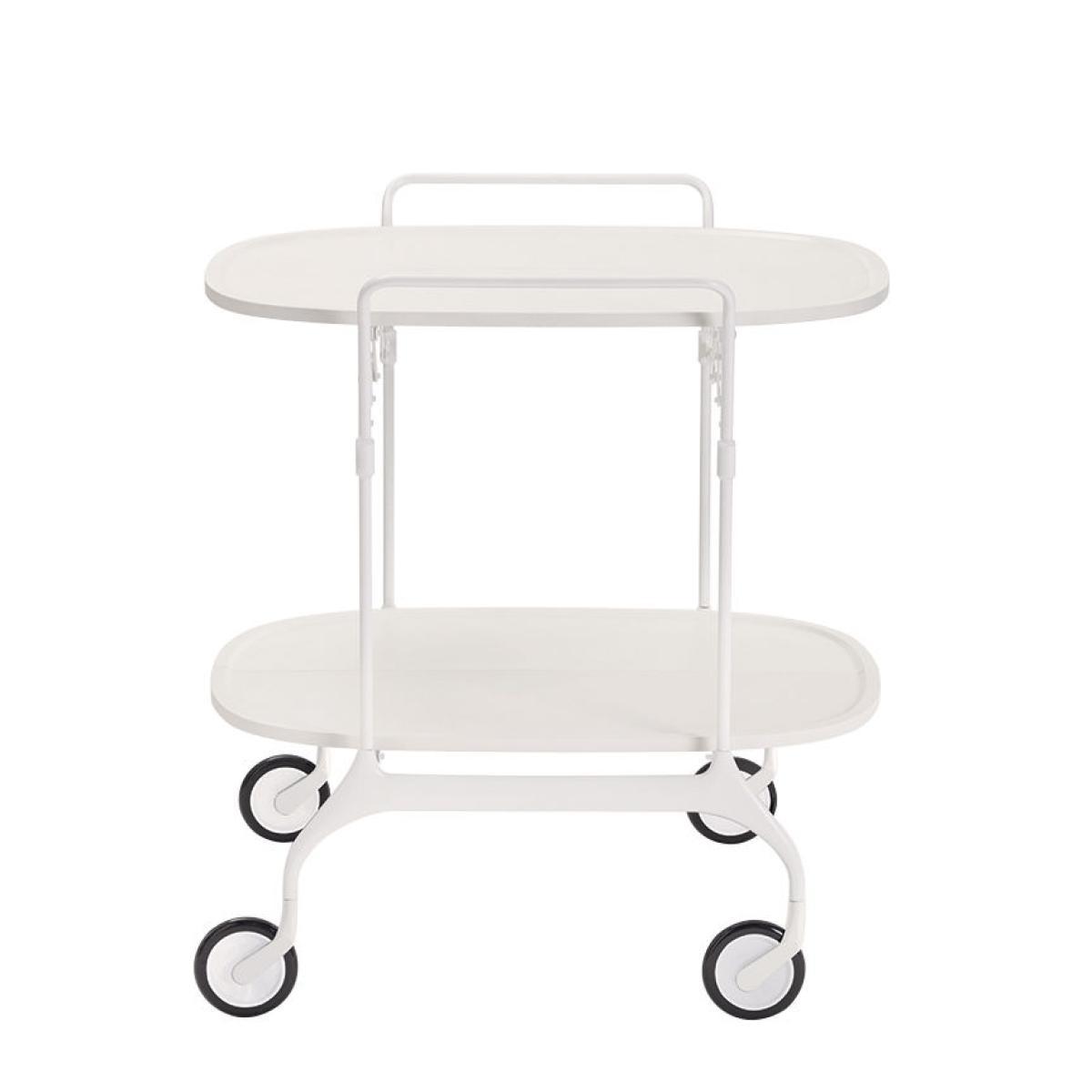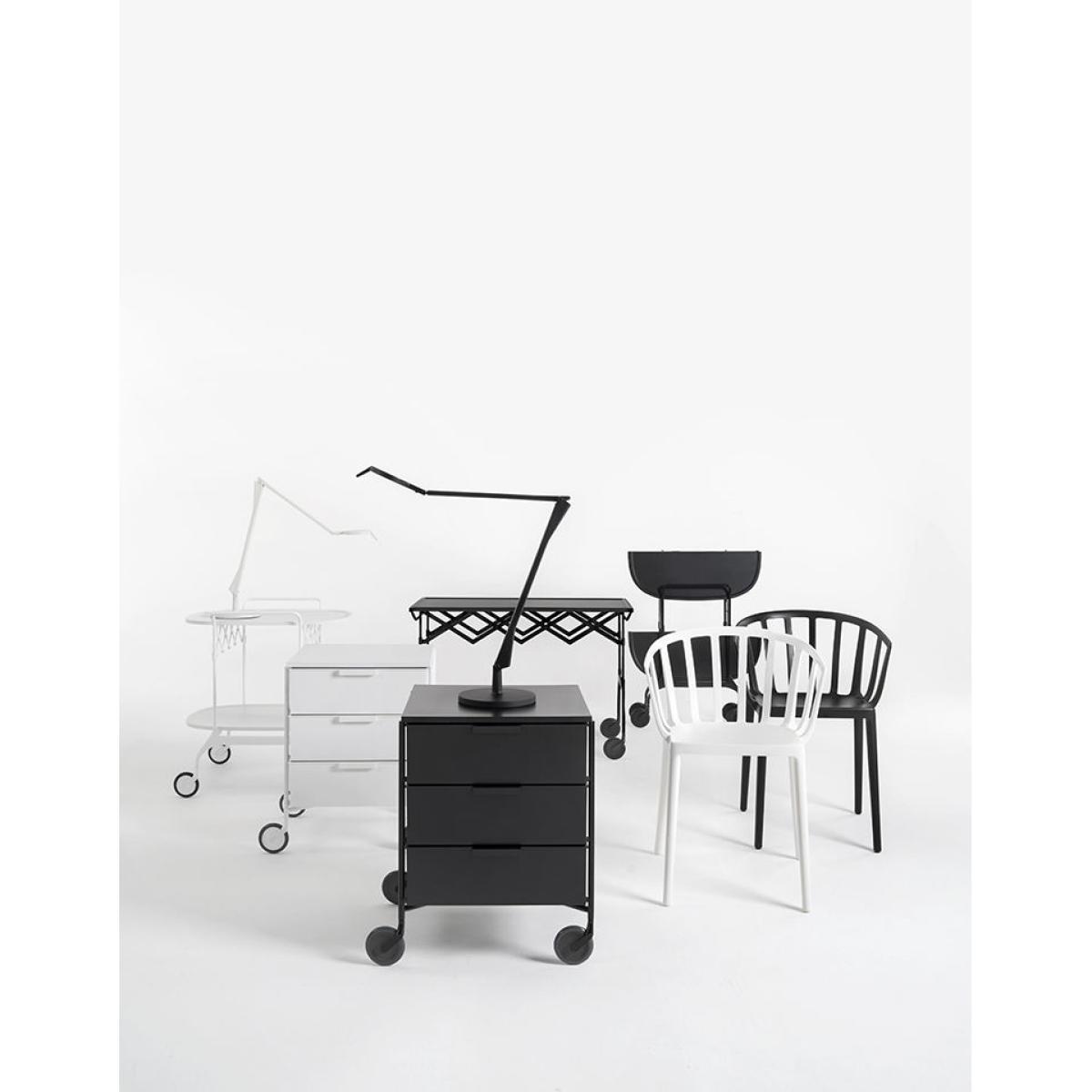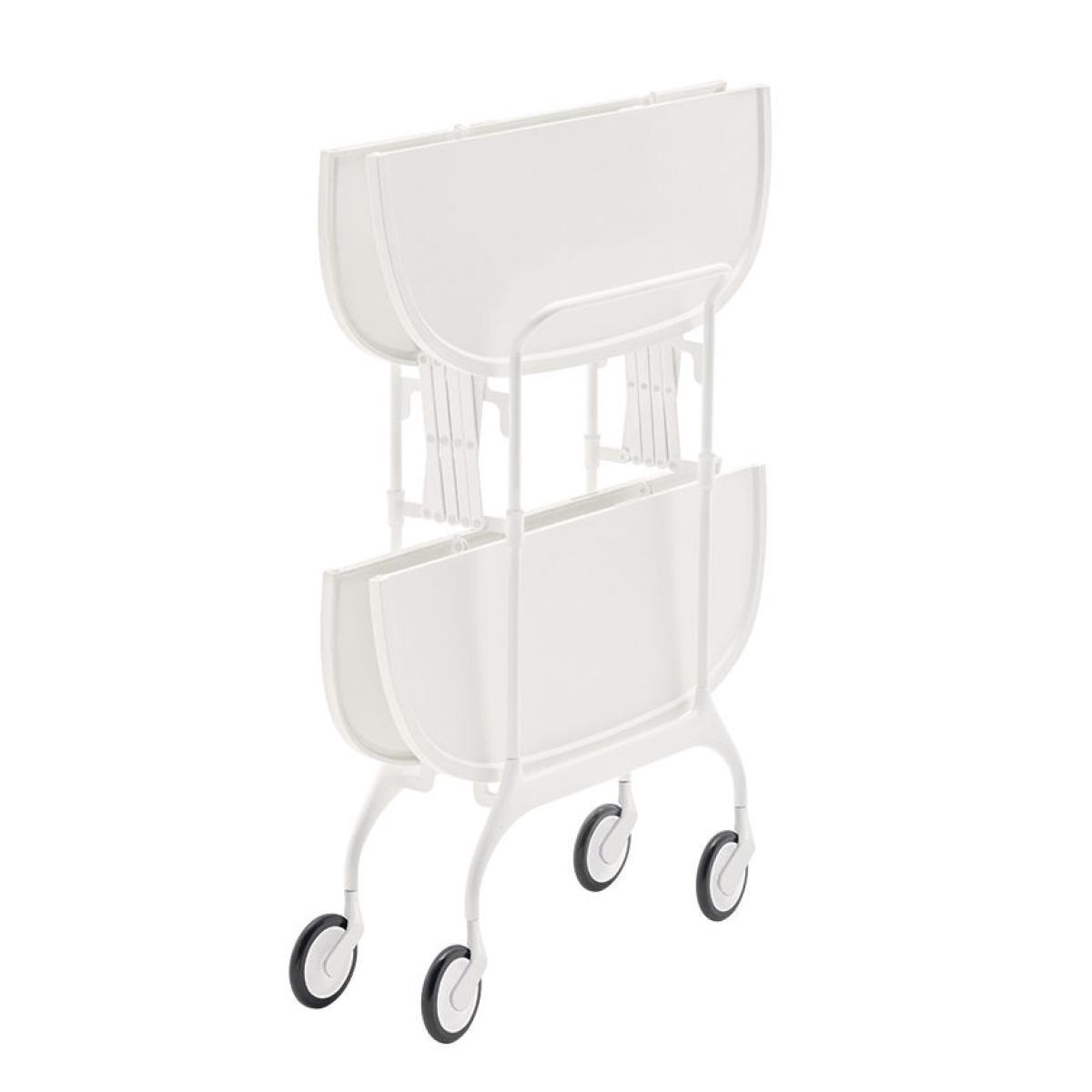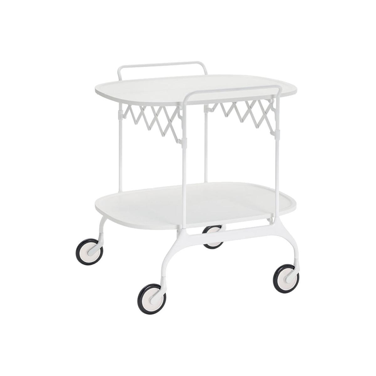 Iconic Kartell products appear in a new light with an original matt finish, elegant and trendy. Soft to the touch, the matt and satin surfaces give these great classics a contemporary, refined dimension. Created in 1991 by Italian designer Antonio Citterio, Gastone is an elegant folding trolley with two plastic shelves with an anti-scratch finish. The structure is made of steel, painted the same colour as the shelves. Thanks to its casters and handles, this trolley moves effortlessly from the kitchen to the living room. It is perfect as a side table for a buffet or aperitif. Once closed, this trolley is very small (23 cm deep) and easy to store away.