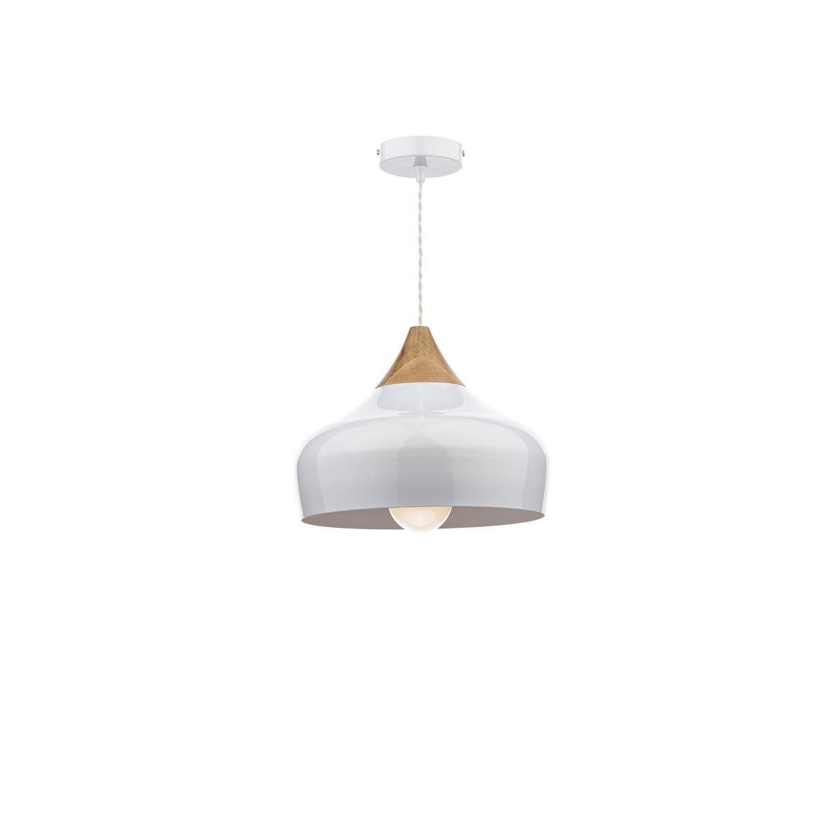 The Gaucho light pendant brings a unique character to your contemporary interior with its fusion of natural wood and a modern high-gloss finish. Why you'll love it. This contemporary pendant light is available in black and white. Matt finish with statement wooden cap detail. Industrial-inspired design with sleek raided black or white cable. The perfect light pendant for vintage-style bulbs. What you need to know. Made from wood, metal and glass. Cable is adjustable on installation. BUL-E27-LED-17 bulb (not included). Electrical Class Class II, Double Insulated. Dimensions. Height: 30cm - 130cm (12in - 51in). Depth: 24cm (9in). Width: 32cm (12in).