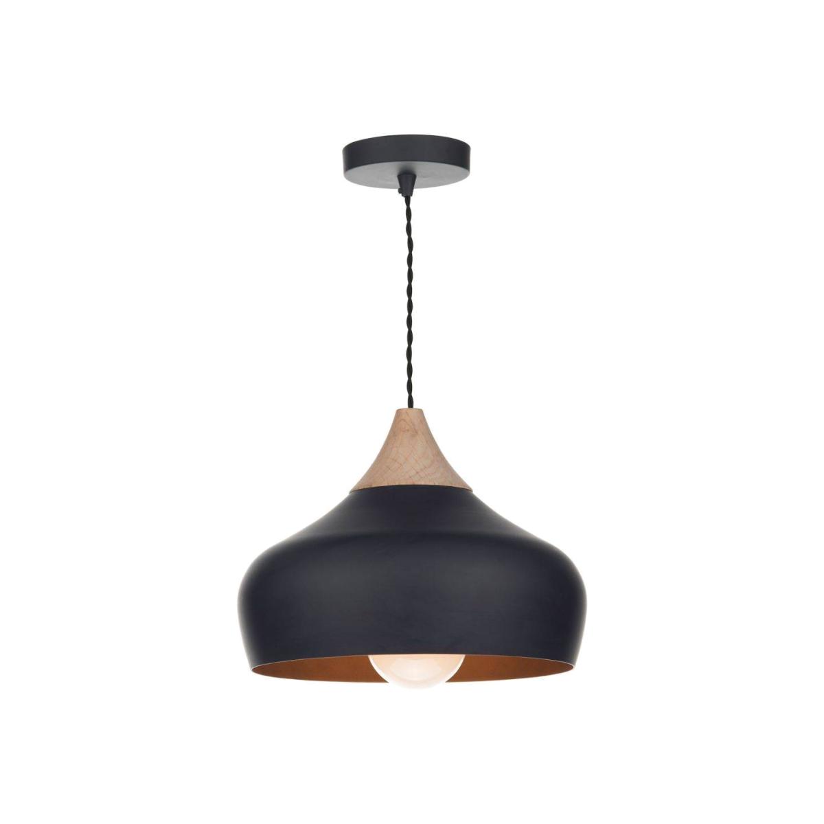 Contemporary pendant ceiling light boasting a black and bronze finish. The Gaucho Pendant Ceiling Light is a stunning fitting from Dar Lighting. Boasting a black finish throughout, the pendant also features wood effect cap detailing at the top of the shade and comes with a twisted braided cable. Perfect for homes with a chic and retro vibe. Pair this light with our 4w LED Vintage bulbs for a rustic and industrial glow to complement the copper detailing. Contemporary pendant ceiling light boasting a black and bronze finish. The Gaucho Pendant Ceiling Light is a stunning fitting from Dar Lighting. Boasting a black finish throughout, the pendant also features wood effect cap detailing at the top of the shade and comes with a twisted braided cable. Perfect for homes with a chic and retro vibe. Pair this light with our 4w LED Vintage bulbs for a rustic and industrial glow to complement the copper detailing.