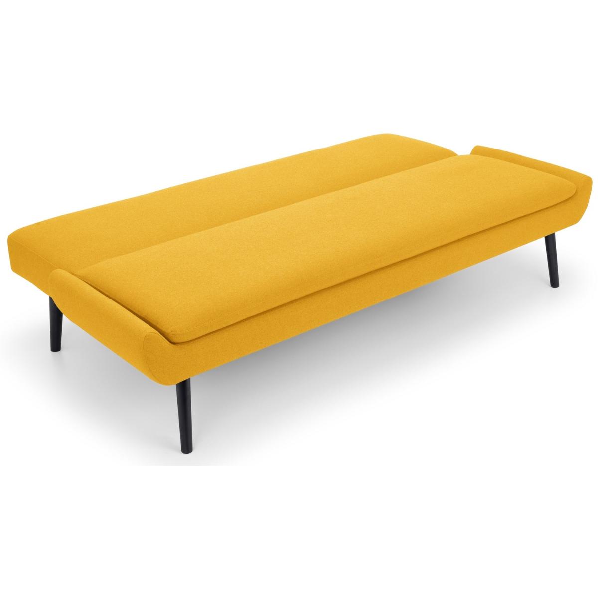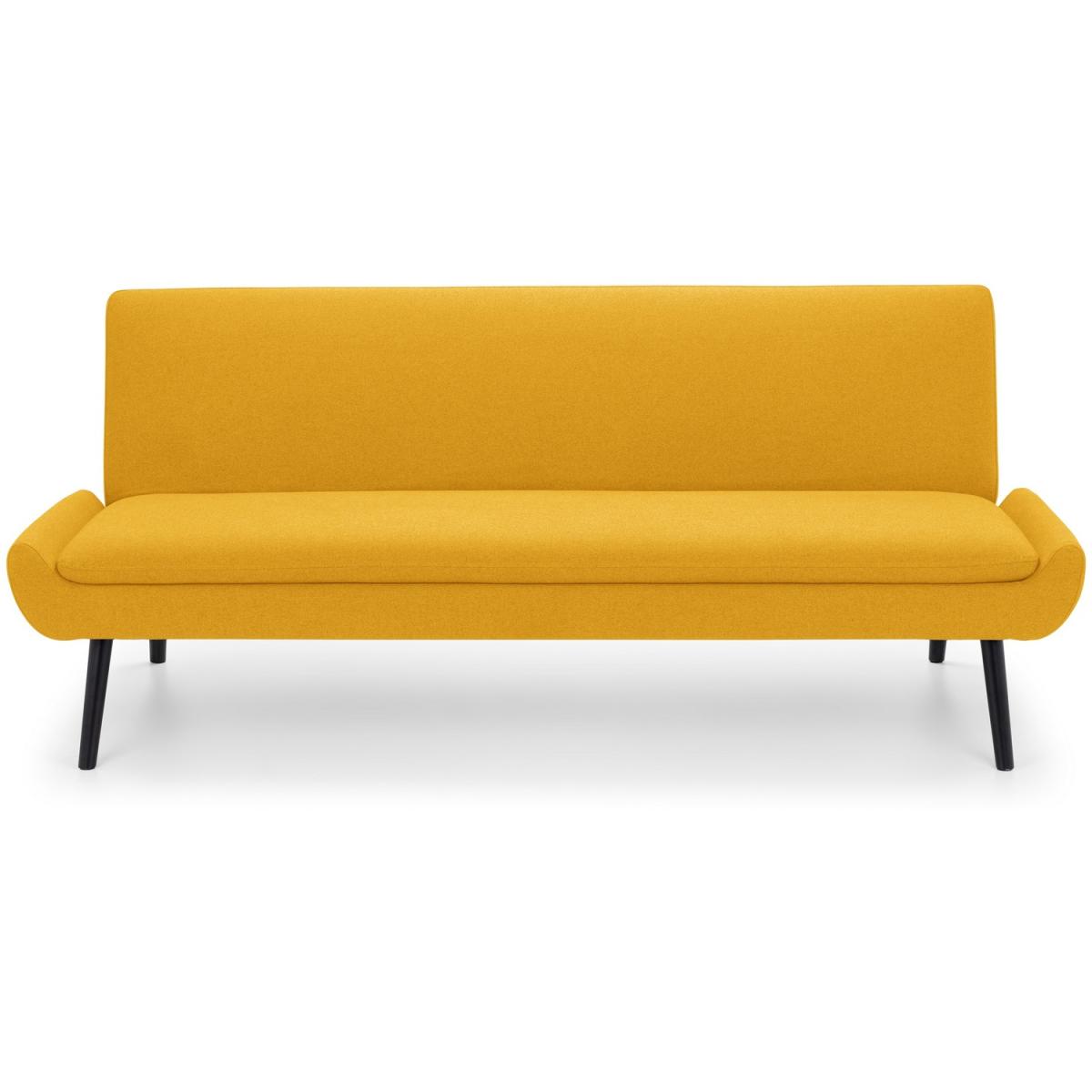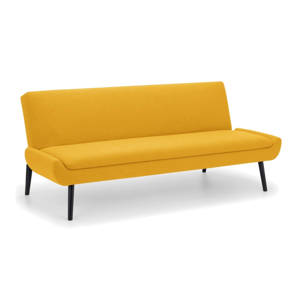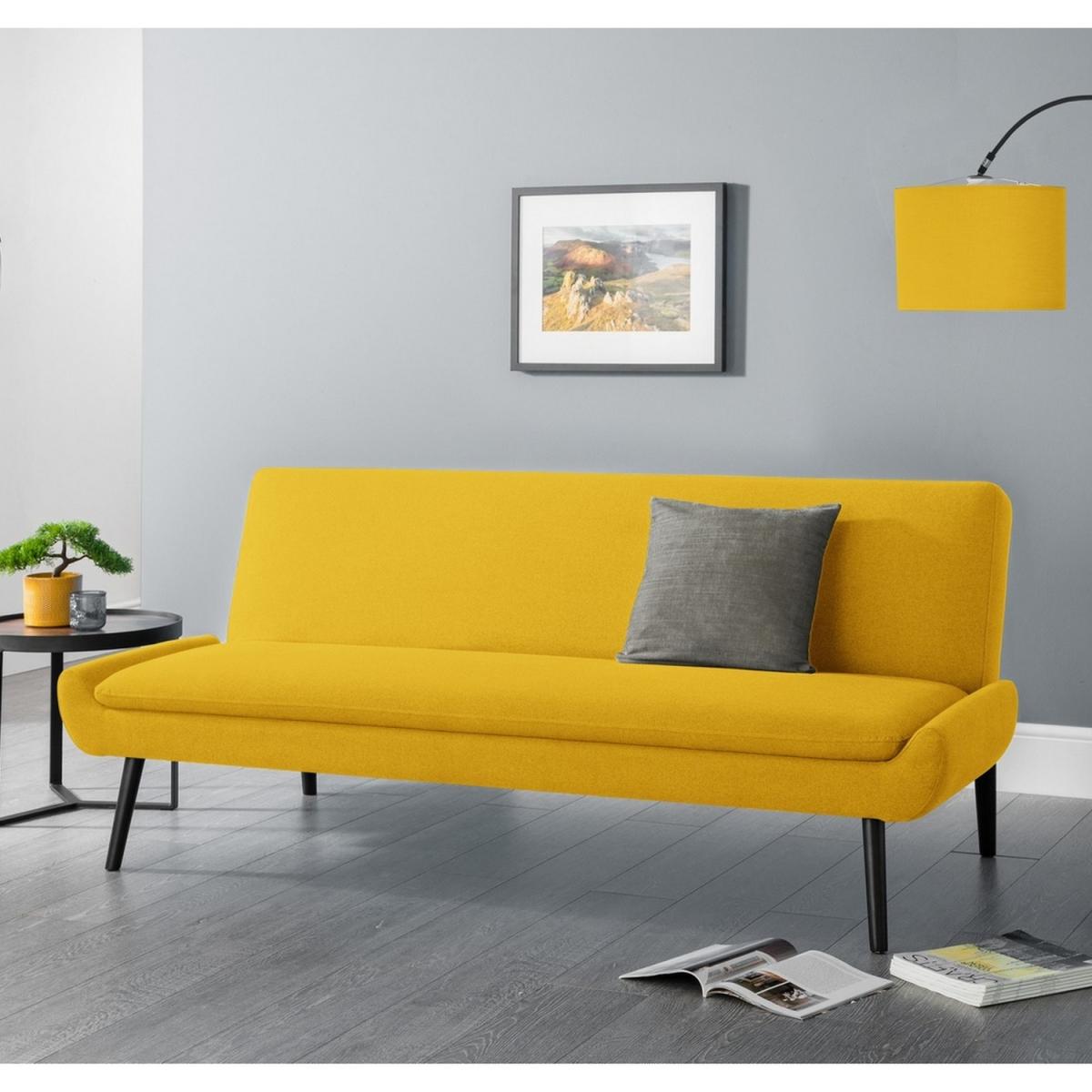 I love this mustard sofa bed for its vibrant colour, which makes it a great statement piece in a variety of interiors. It works particularly well in contemporary spaces, adding a pop of colour to neutral tones or complementing bold, eclectic décor. Practical styling tips include pairing it with patterned cushions or throws to soften its look, or placing it against a textured wall for added depth. Its slim profile and sleek legs make it ideal for smaller living rooms or multi-purpose spaces, offering both style and function without overwhelming the room. Perfect for compact homes or guest rooms, it’s versatile and easy to update with accessories to keep the look fresh.