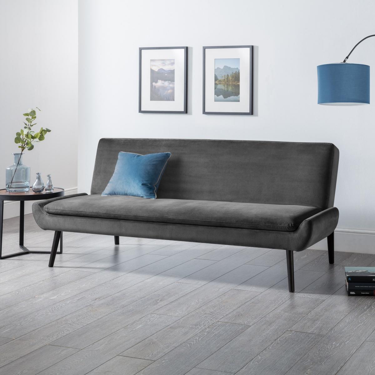 With its clean, simplistic design, the Gaudi Sofabed is finished in a choice of blue, grey or mustard linen fabric or Grey Velvet, complete with a stunning curled base and black tapered legs. With its easy to use click-clack mechanism, this sofabed is the perfect option for having guests stay.