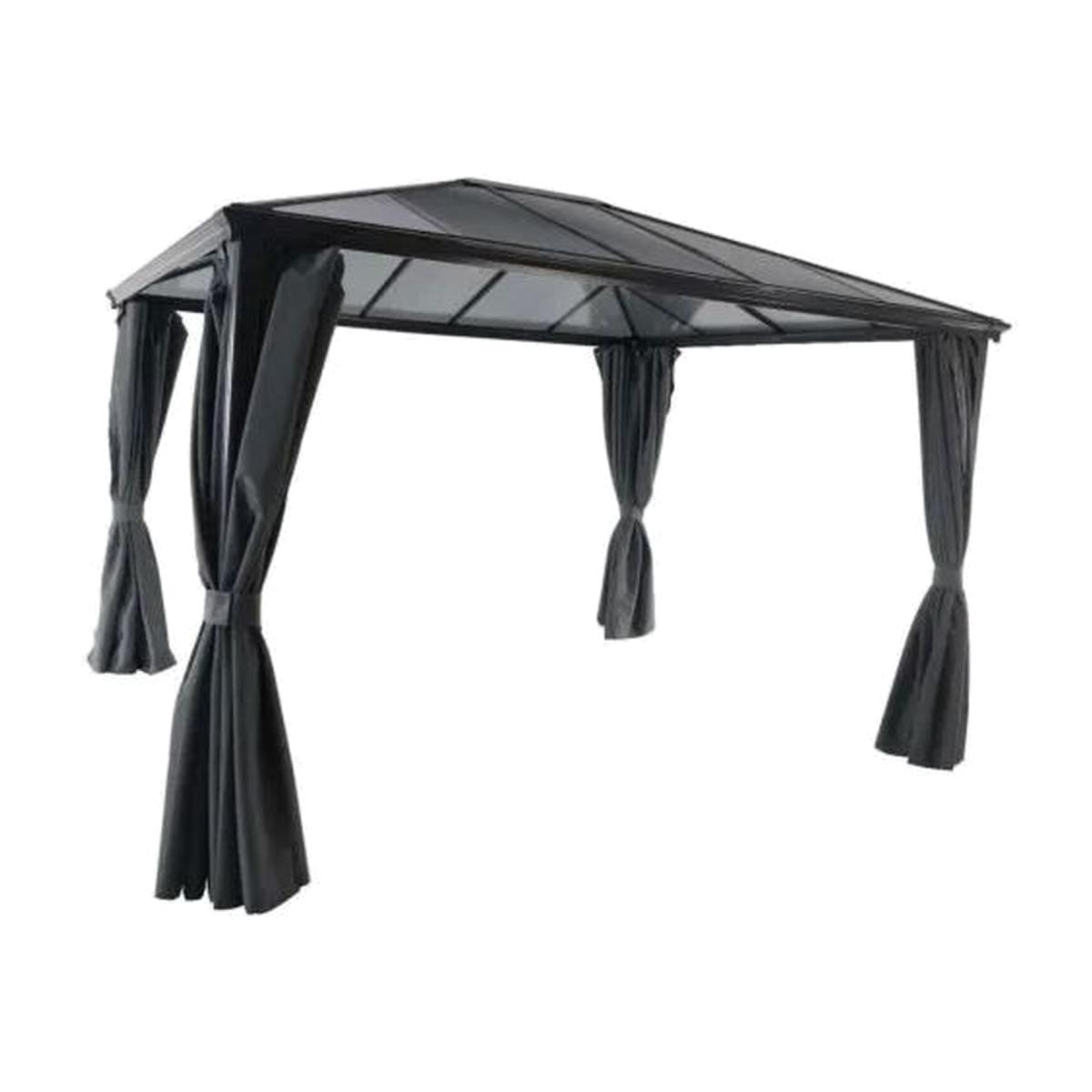 Introducing the 3 x 3.6m Dark Grey Aluminium Gazebo and Curtains, a stylish and functional addition to any outdoor space. This gazebo is constructed with a sturdy aluminium frame, ensuring durability and longevity. The dark grey colour adds a touch of sophistication, blending seamlessly with any outdoor decor. Measuring 3 x 3.6m, this gazebo provides ample space for outdoor gatherings, parties, or simply relaxing in the shade. The included curtains offer privacy and protection from the elements, allowing you to enjoy your outdoor space regardless of the weather. The aluminium frame is not only strong but also lightweight, making it easy to assemble and transport. The curtains are made from high-quality materials, ensuring they are resistant to fading and wear. With their neutral dark grey colour, they add an elegant touch to the gazebo while effectively blocking out sunlight and providing privacy.