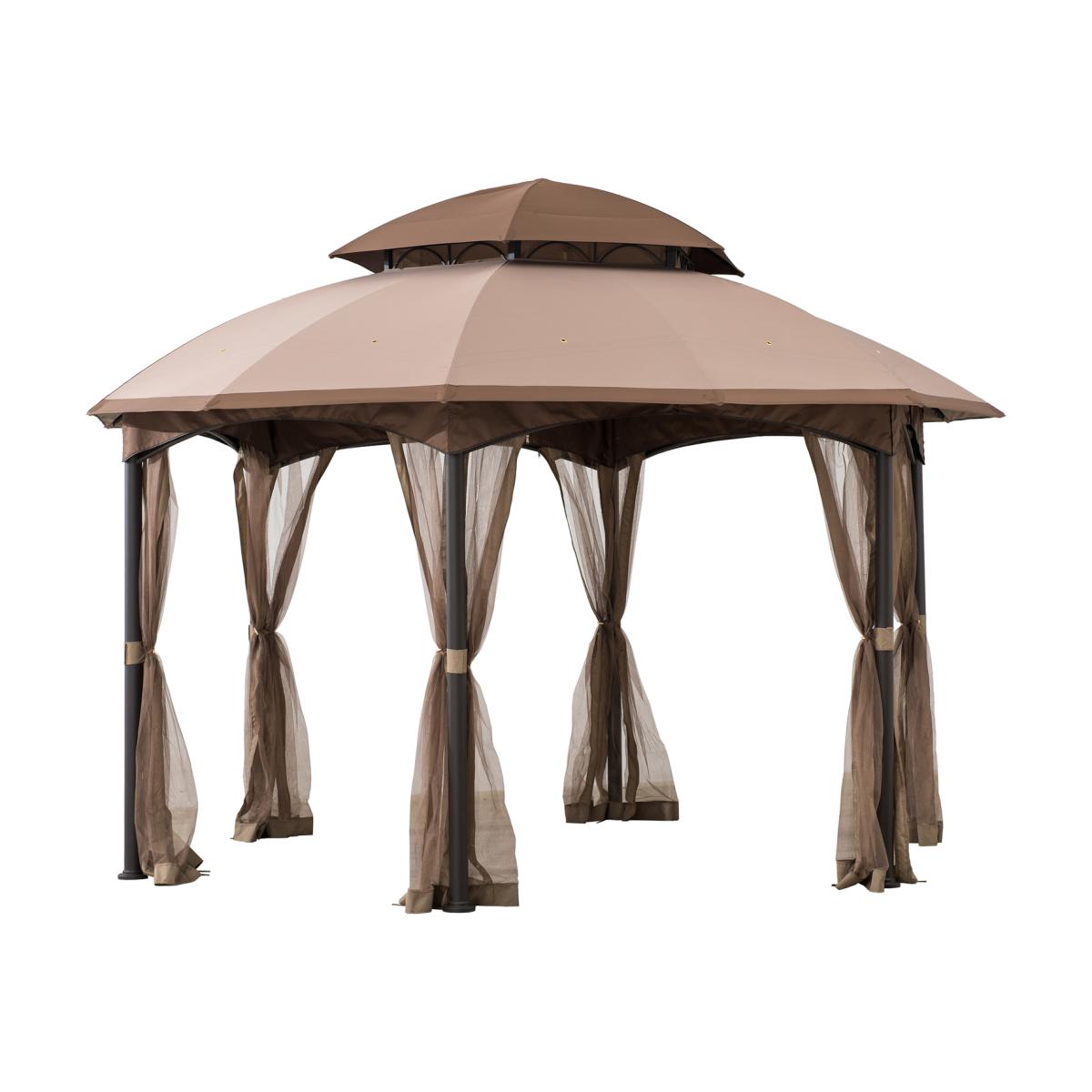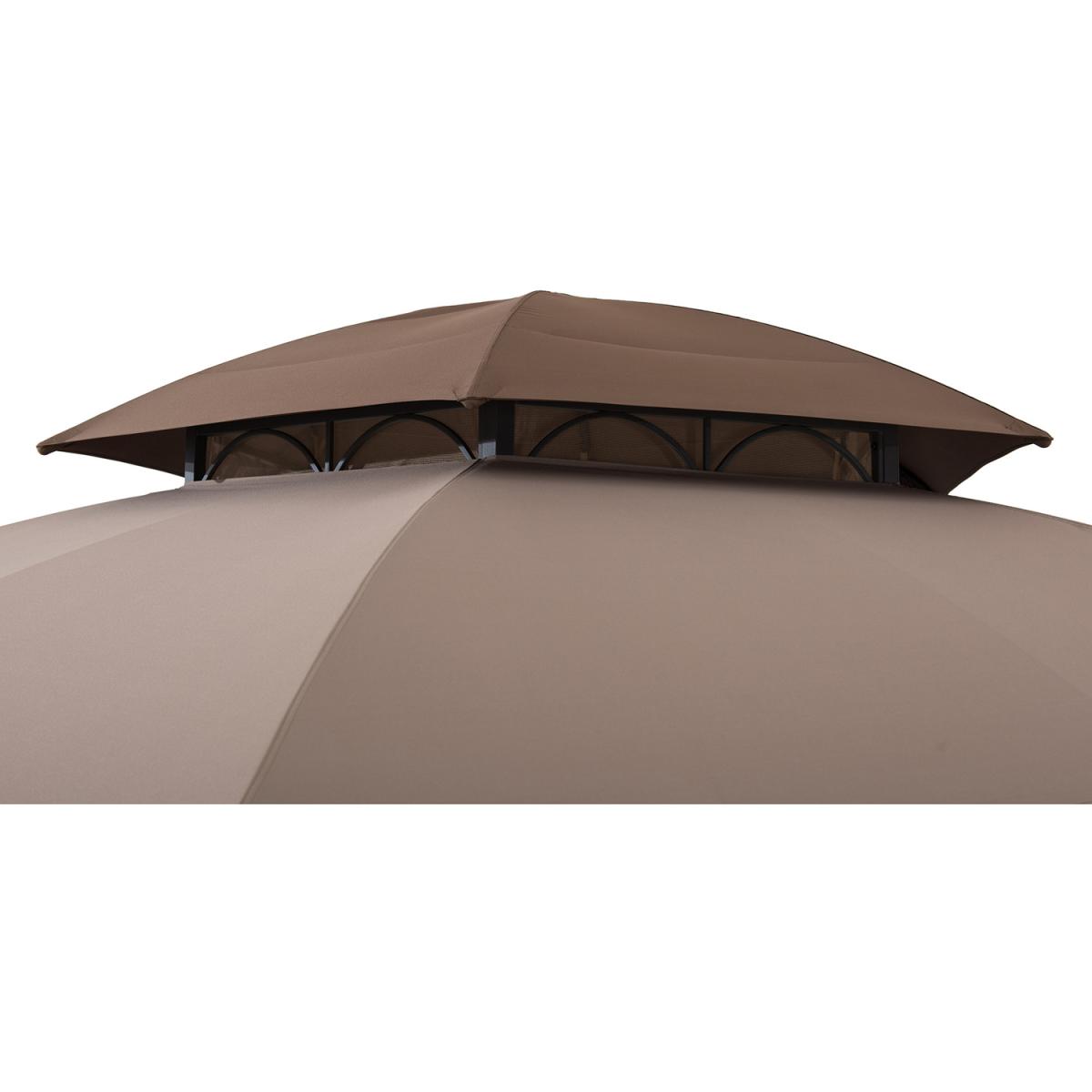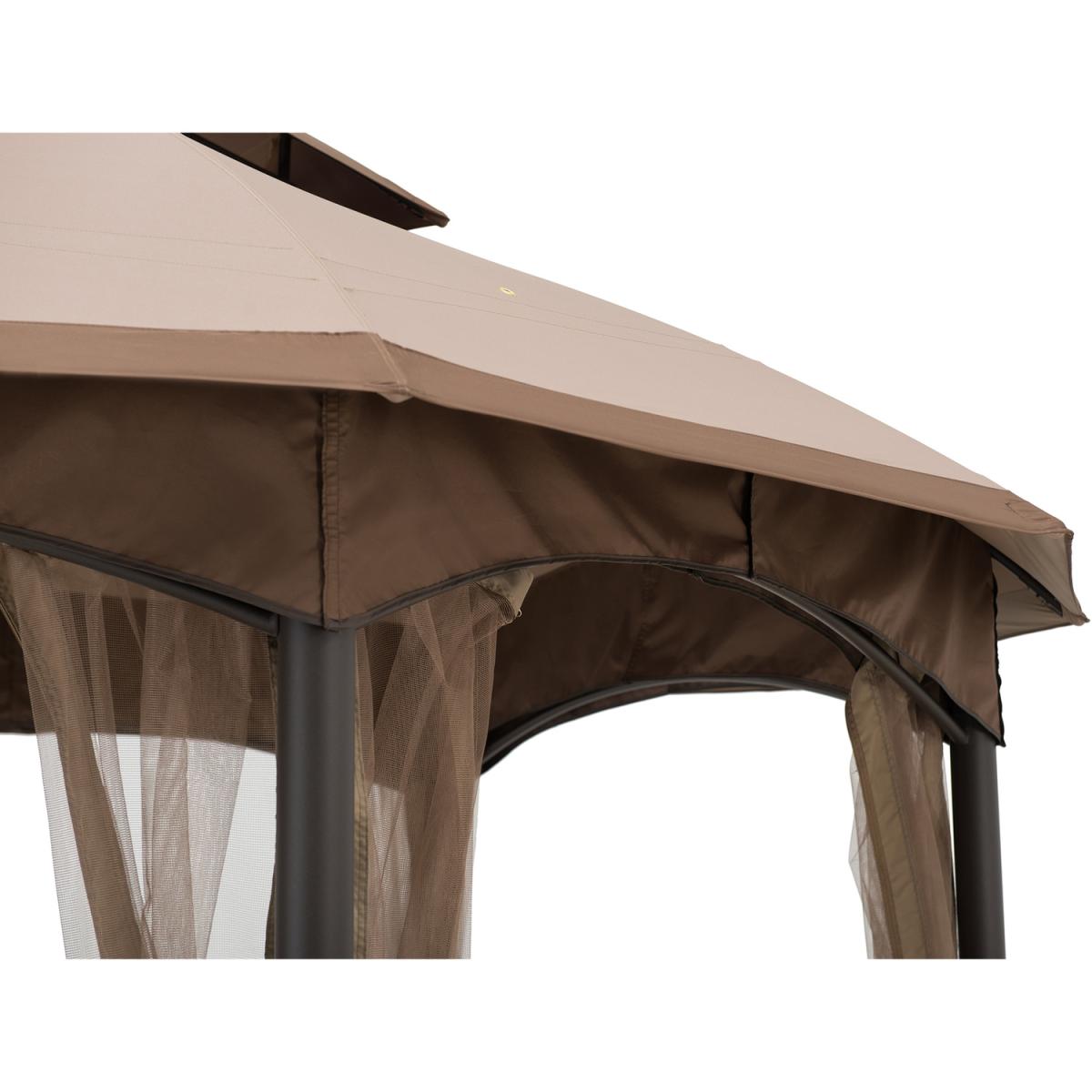 Design your living room under the open sky and create an oasis in the middle of your garden. The 412x412cm gazebo from Sunjoy helps you to protect your retreat. Stay protected from the sun under the two-tier, ventilated canopy supported by a rust-resistant steel frame. Give your gazebo the final design touch by attaching a chandelier to the built-in ceiling hook. Use the net to keep mosquitoes and bugs away. With easy-to-follow assembly instructions, you'll be relaxing in your new favorite outdoor living space in no time.
