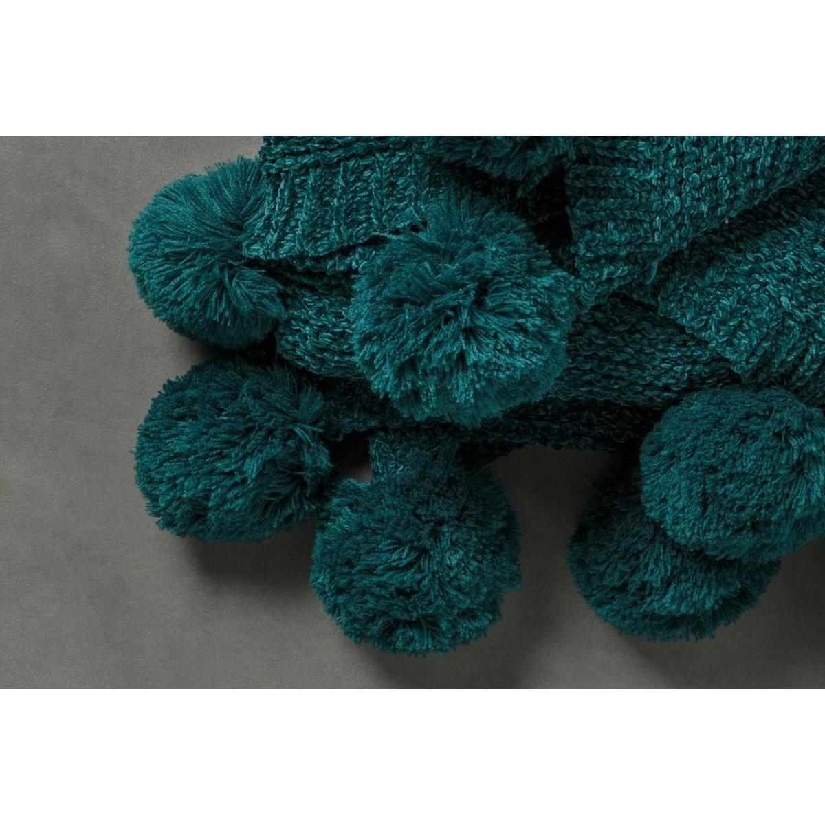 I love this throw because of its cosy texture and playful pom pom detailing, which adds a bit of fun to a neutral scheme. It works particularly well in cosy, relaxed interiors such as scandi-inspired or boho styles, where layering textiles adds warmth and personality. Practical styling tips include draping it casually over a sofa or armchair, or folding it neatly on the foot of a bed for extra colour and texture. Its rich teal hue can act as a vibrant accent against softer tones, making it versatile enough for both modern and more traditional interiors. Overall, it’s a stylish, tactile piece that combines comfort with charm.
