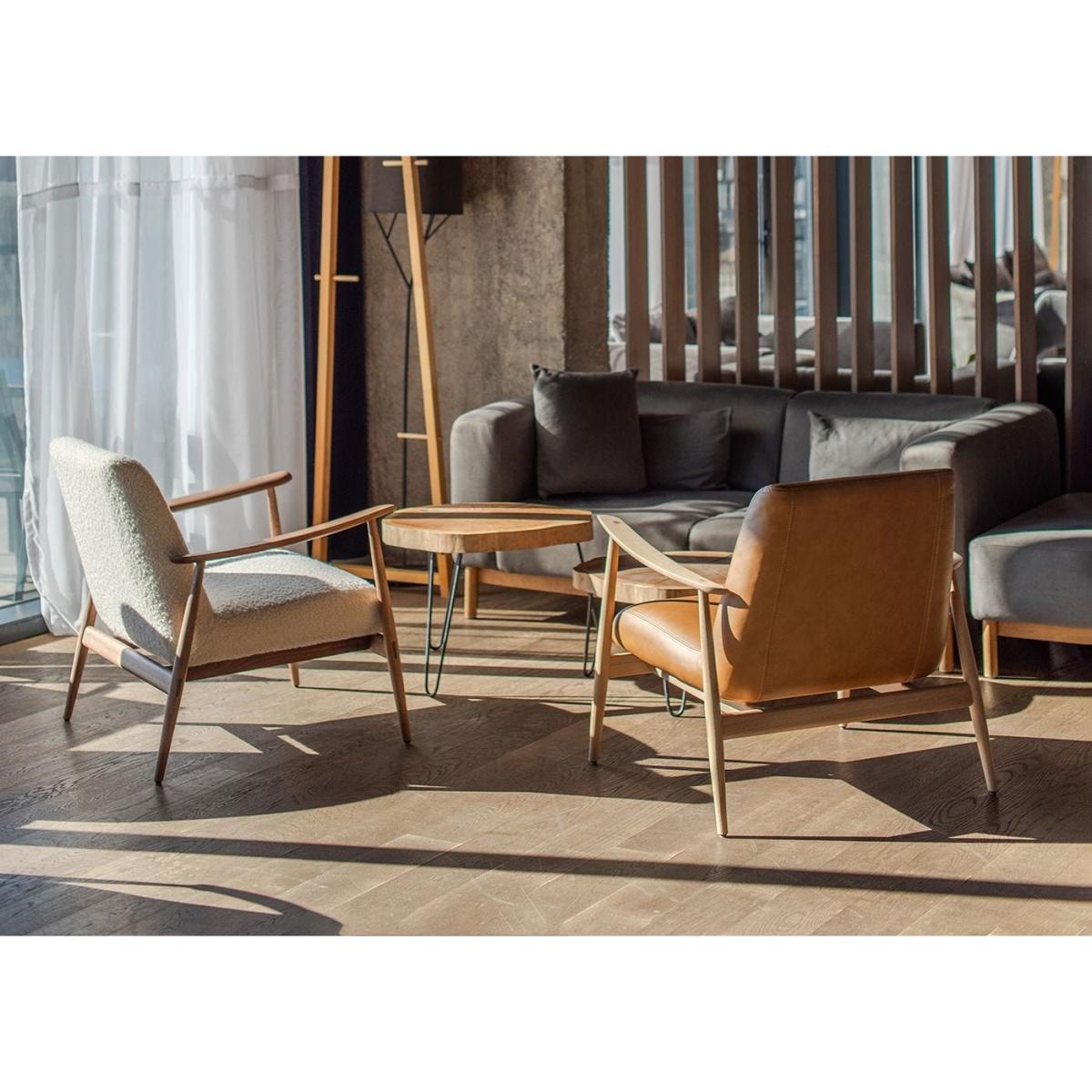 I really like this lounge chair for its clean, mid-century-inspired silhouette and versatile appeal. It works equally well in contemporary, Scandi, or even more traditional interiors, adding warmth without overwhelming the space. The tan leather and light wood frame make it a great choice for creating cosy corners in living rooms or bedrooms, and it pairs nicely with both neutral palettes and more saturated tones. For styling tips, consider placing it alongside a soft throw or a small side table to make it a functional, inviting spot for reading or relaxing. This chair’s understated elegance makes it a staple for adding character and comfort to any room.