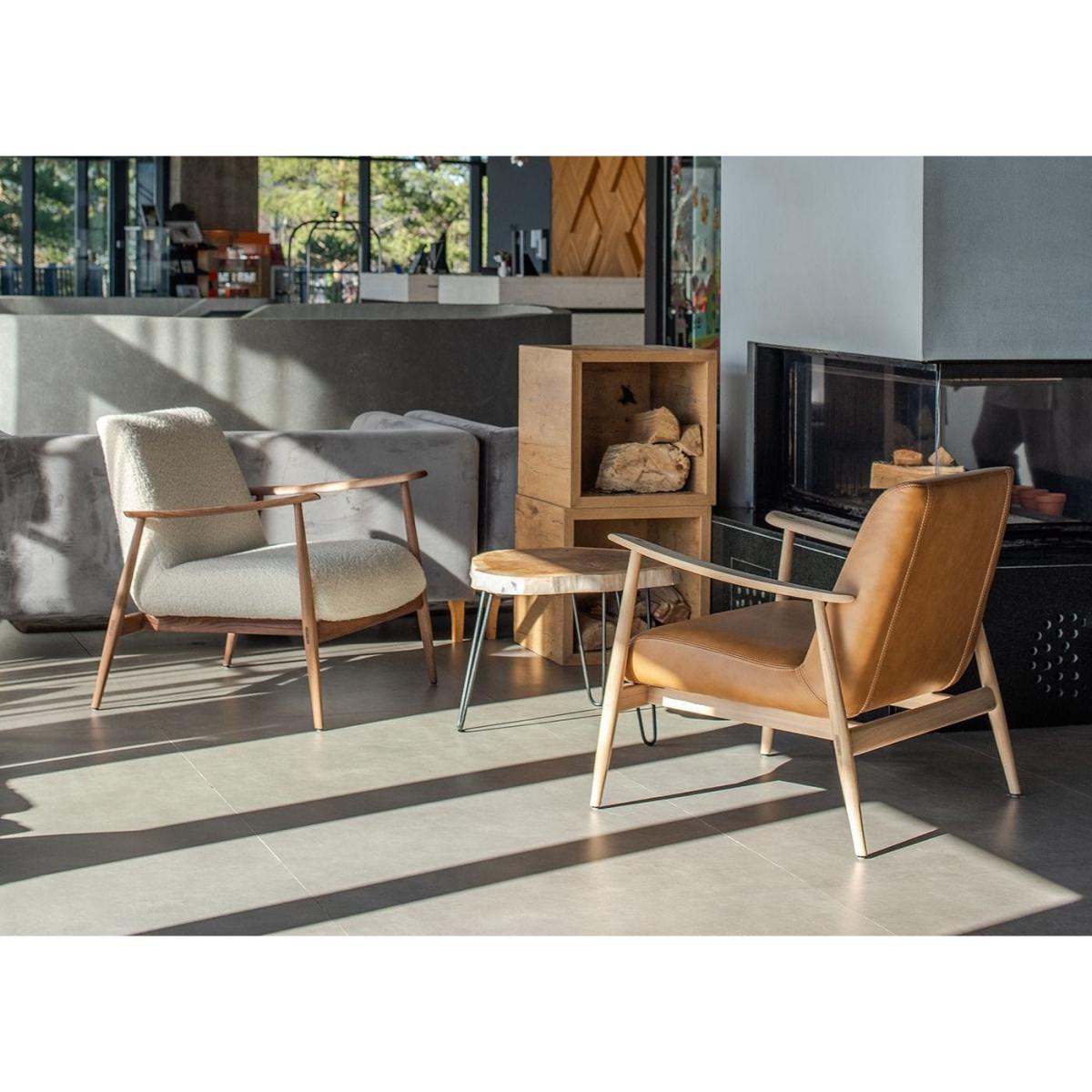 The Aska Lounge Chair by Salih Teskeredžić blends sculptural craftsmanship with understated comfort. Crafted from solid oak in a white oil finish, its softened curves and tapered legs flow seamlessly into distinctive wedged tenon joints for strength and elegance. Upholstered in Dakar Leather, the chair’s continuous tailoring offers both support and refined tactility. With calm proportions and timeless appeal, Aska is designed to feel instantly familiar while bringing quiet sophistication to any interior.