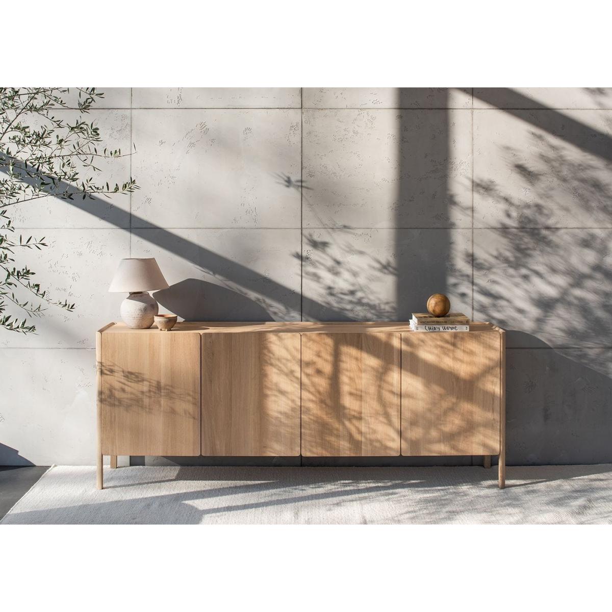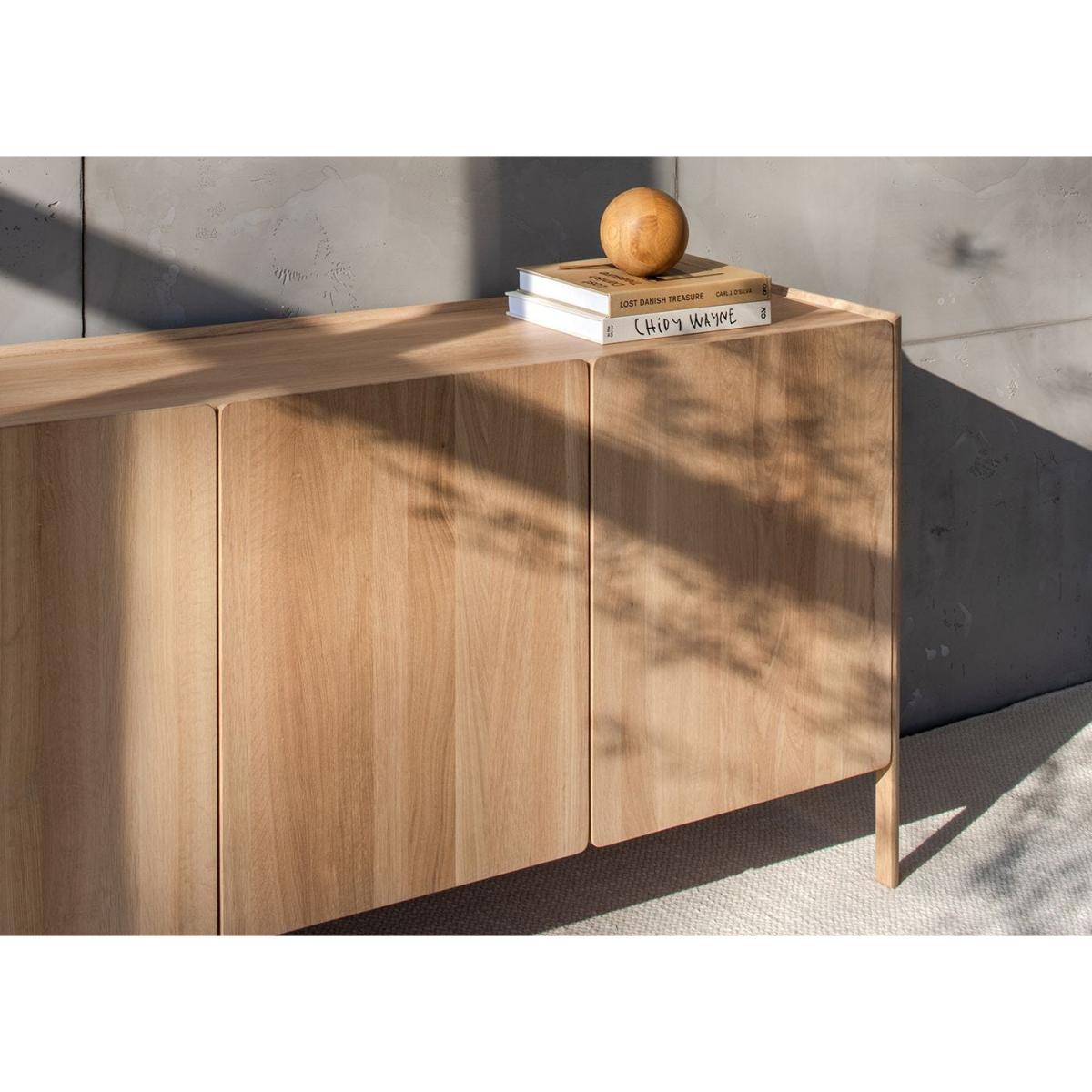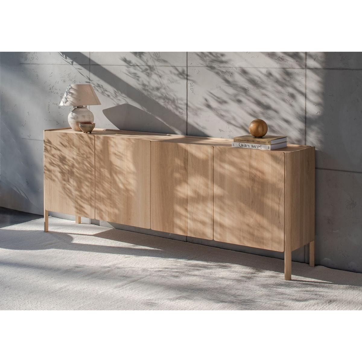 The Dvor Sideboard by Gazzda, designed by Mustafa Cohadzic, pairs quiet elegance with functional design. Crafted from solid white oiled oak, its seamless doors and softly rounded sides create a calm, unified presence suited to both modern and classic interiors. Raised on outward-placed legs for an architectural stance, it offers generous storage behind its refined front. Balanced proportions and subtle detailing make Dvor more than storage, it’s a timeless anchor piece for any living space.