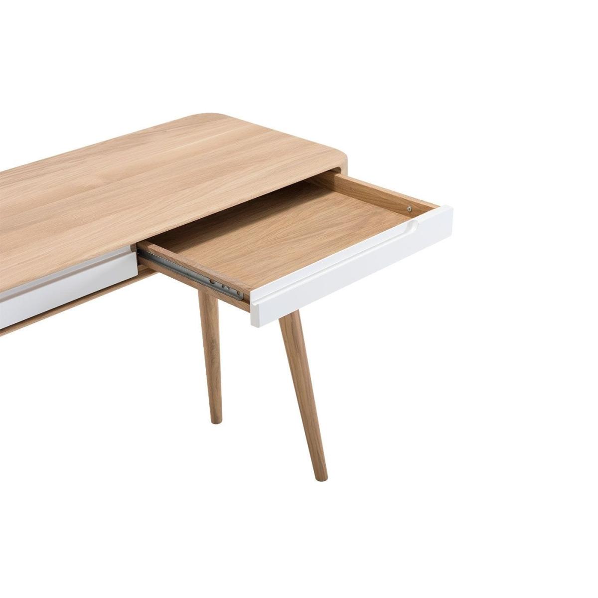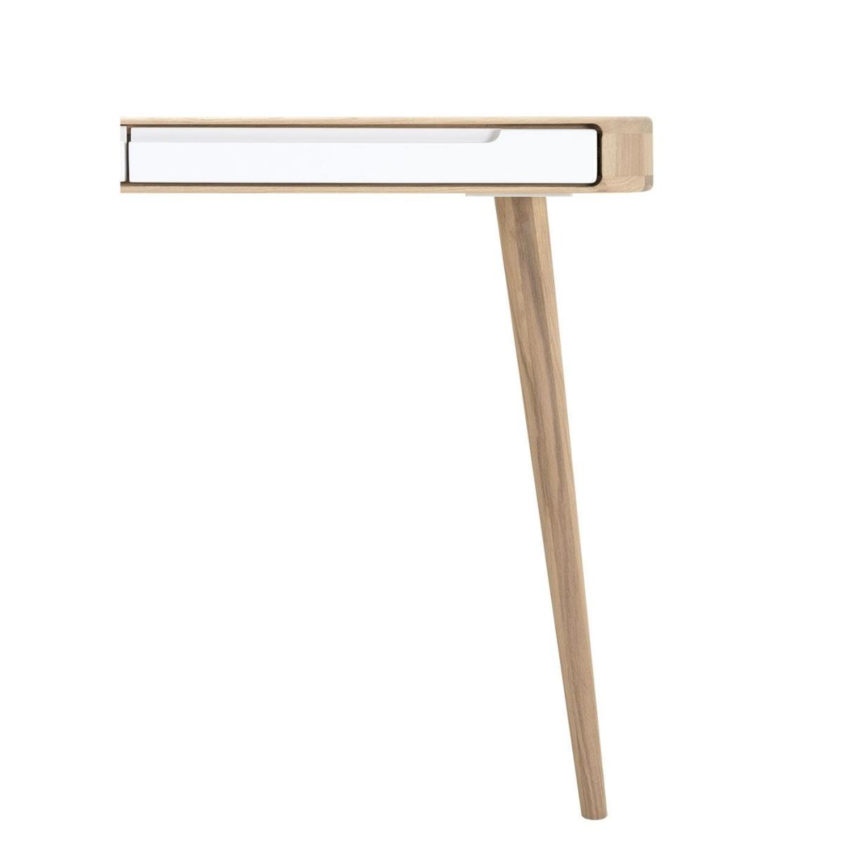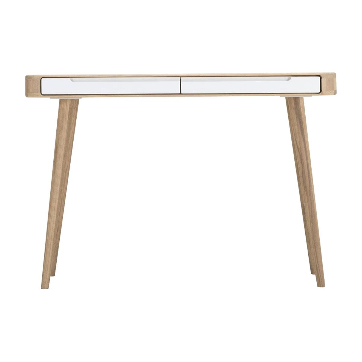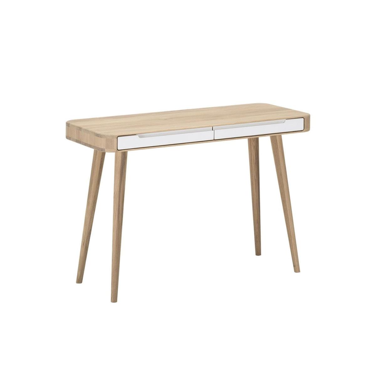 Part of Salih Teskeredžić's Ena collection, this white dressing table is named after his daughter and inspired by a combination of 1960s design traditions and futurism. Crafted from solid oak and white MDF, this dressing table is sophisticated and minimal, as well as easy to keep clean. A perfect addition to modern and traditional homes alike, Ena has two drawers for storing cosmetics and accessories.