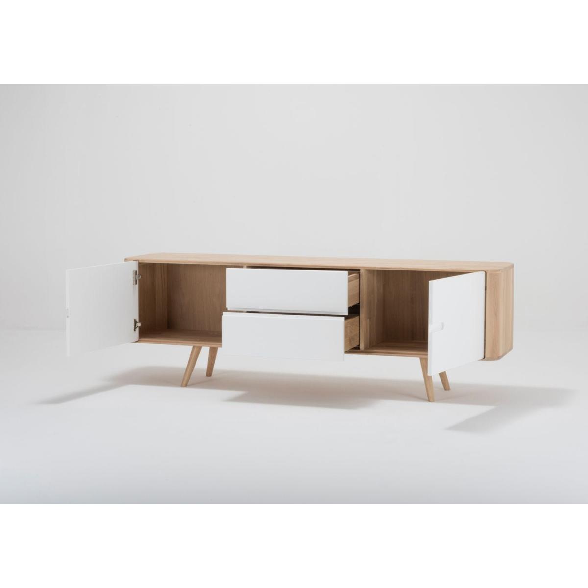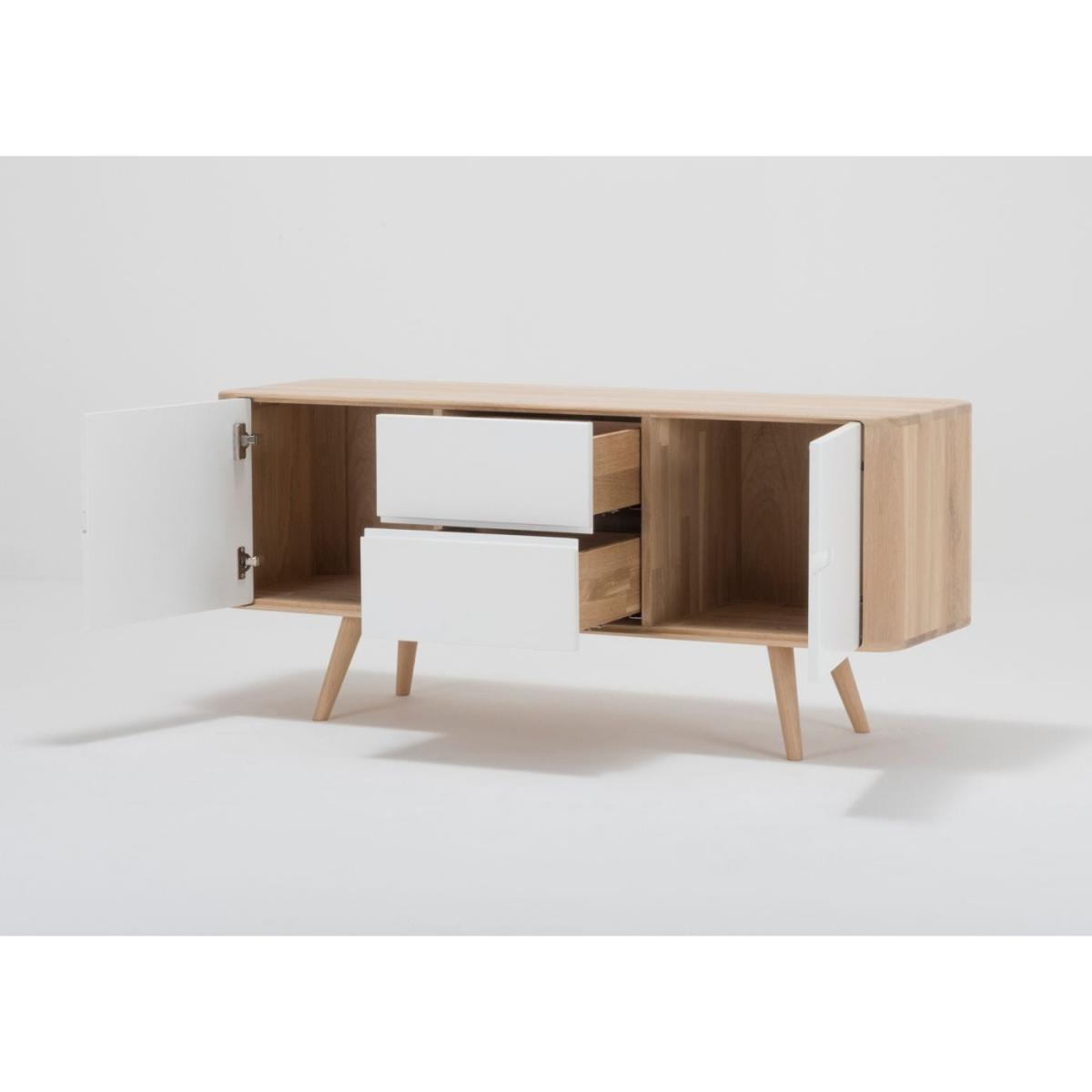 I really like this sideboard for its clean, minimalist design and versatility. The wood frame adds warmth, making it suitable for modern, Scandinavian, or even pared-back industrial interiors. It works particularly well in living rooms or dining areas where you want both style and storage, and its compact size makes it ideal for smaller spaces. When styling, consider keeping the top surface clear for a few statement pieces like a vase or a lamp, and use the inside for practical storage. It's also great paired with other natural materials or muted tones to create a quiet, cohesive look. Remember, its simple shape means it can be easily dressed up with greenery or art to add personality.