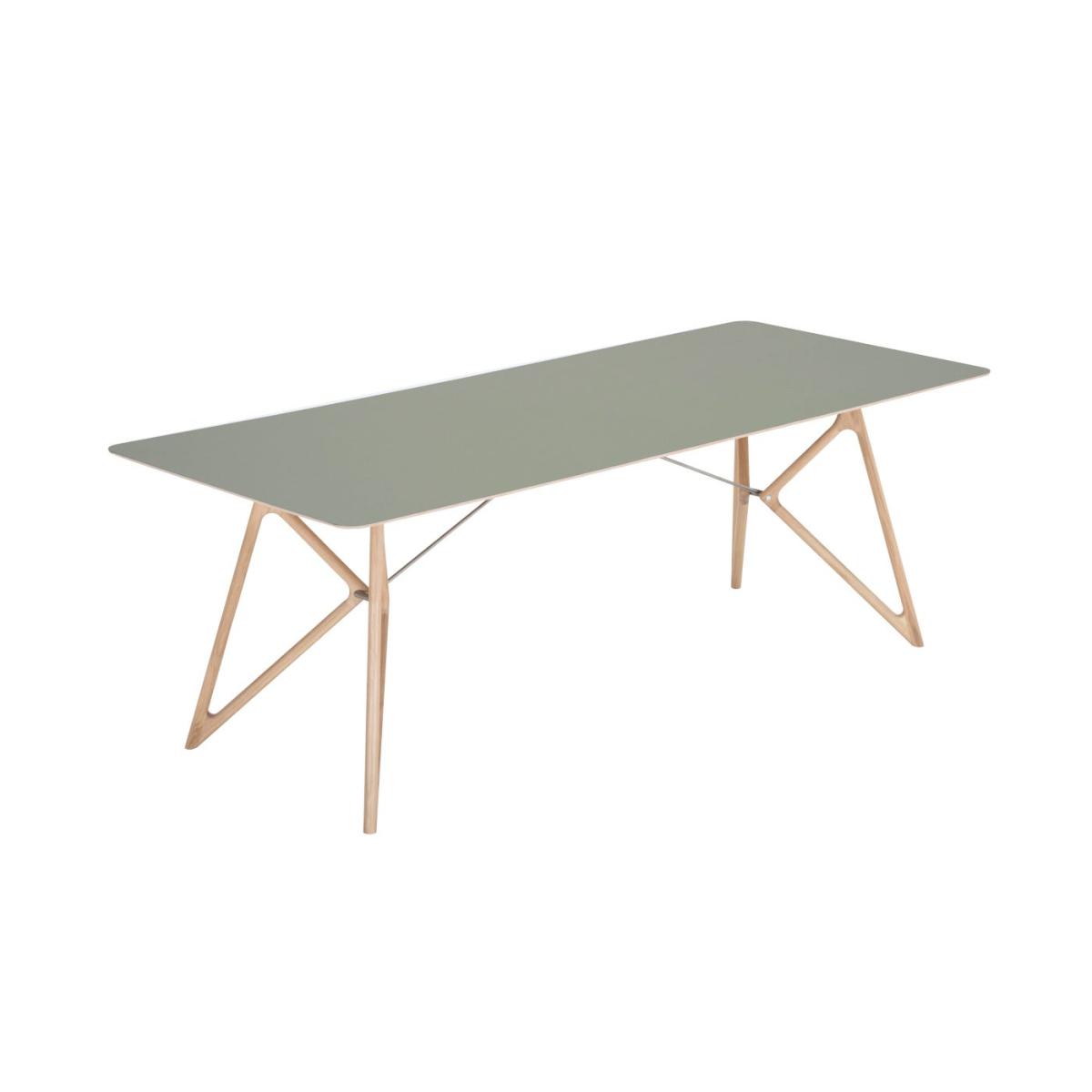 I’m a fan of the Fawn Tink table for its elegant, sculptural oak base and matt olive top - it brings a calm, contemporary feel without overpowering a room. Its clean lines and muted colour work particularly well in Scandinavian, mid-century and modern minimalist schemes. To style it, keep the tabletop clear aside from a simple ceramic bowl or a low planter and a slim runner for texture. Pair it with pared-back dining chairs in leather or bent plywood, and if you need extra interest, anchor the space with a muted rug and a cluster of wall-mounted prints.