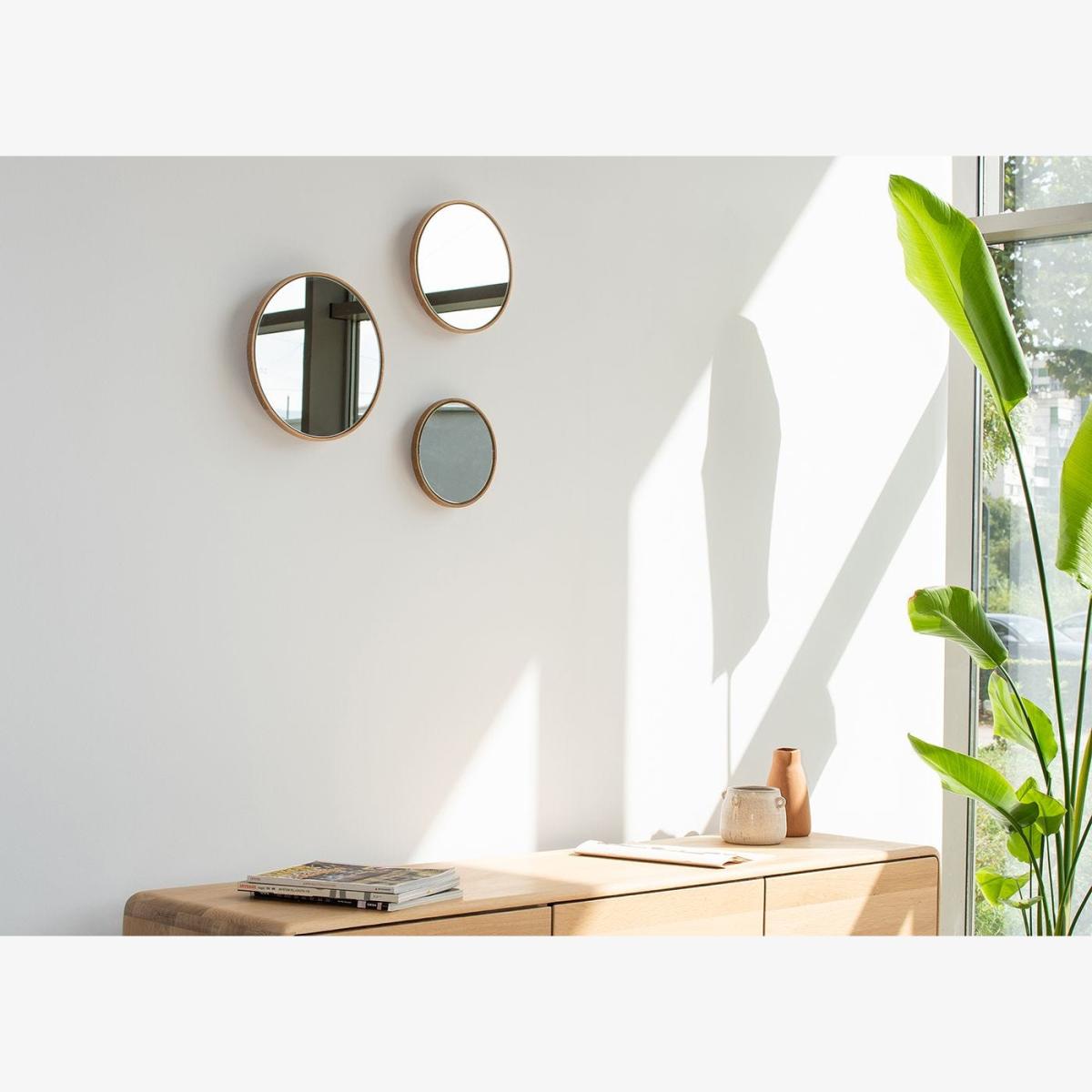 The Look Mirror, encompassing simplicity and elegance, is a circular piece framed in solid wood, reflecting sophistication and style. Available at Heal’s in two distinct sizes, this mirror serves not only a functional purpose but also acts as a decorative element.