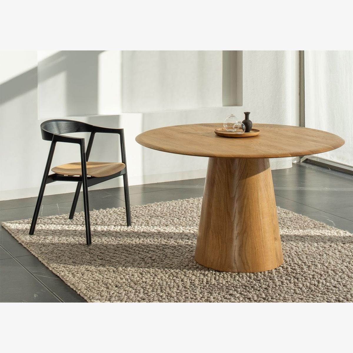 The table is crafted entirely from solid wood, showcasing clean lines and a neutral aesthetic, reflective of serene natural forms and all achieved without visible connections. The artistry behind the Mushroom Table lies in its creation: a skilful blend of traditional barrel-making and woodturning techniques, lending a unique, handcrafted quality to each piece. Its versatility makes it an ideal centrepiece for various interior styles, offering a subtle yet profound statement in both modern and classic settings. The Mushroom Table is not only about function but also about bringing the timeless charm of artisanal woodwork into everyday spaces.