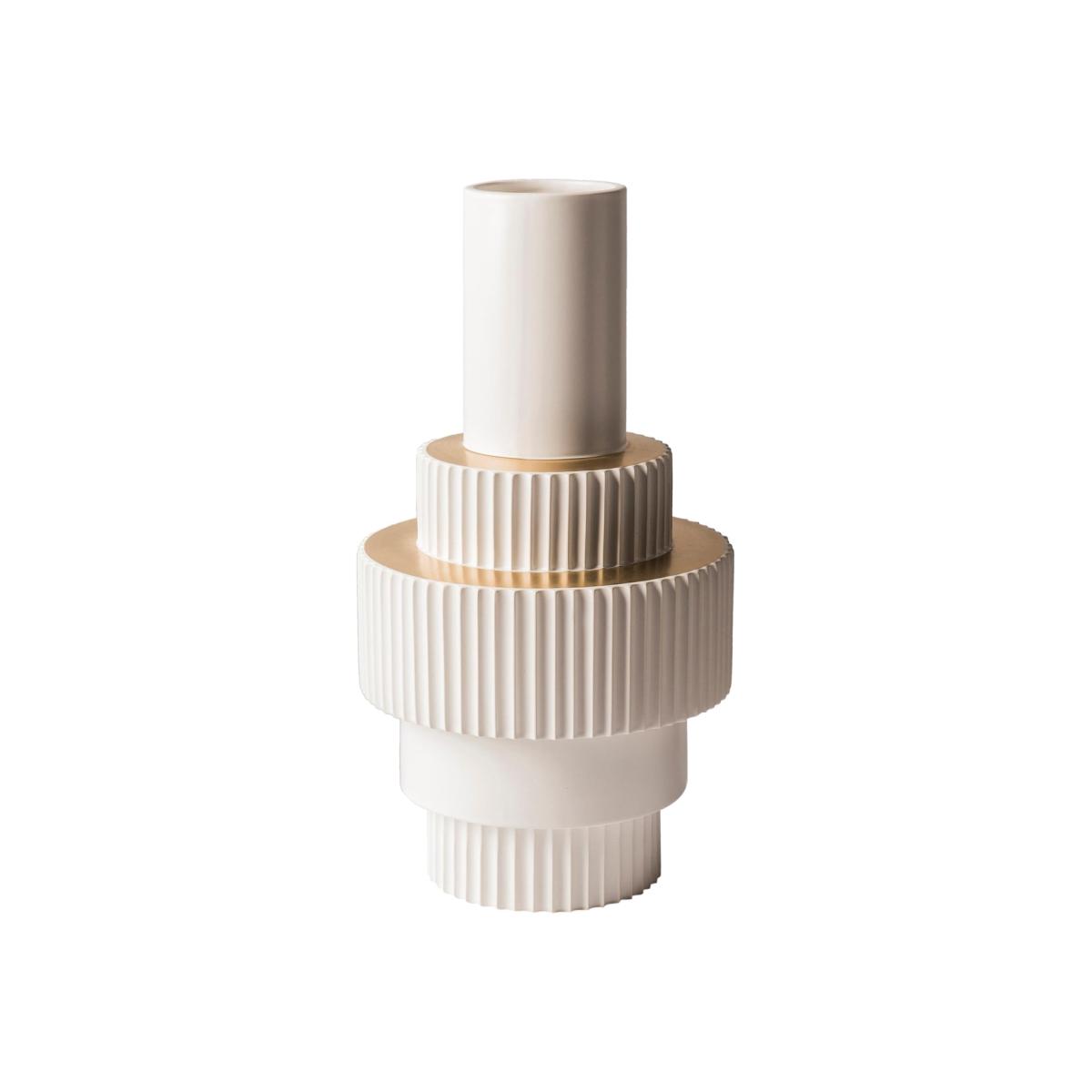 Display your blooms in style with this Gear vase from Pols Potten. Crafted from porcelain with a matt glaze finish in white and gold tones, it boasts a mechanical inspired design, giving your florals a whole new dimension.