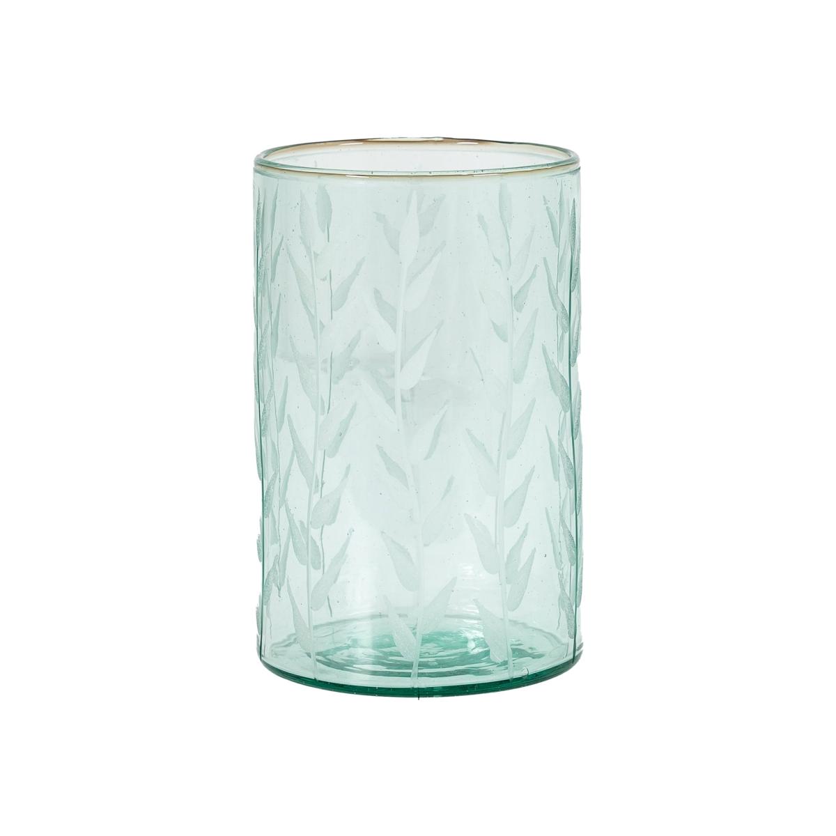 I love this clear, green glass vase because of its subtle botanical print, which adds a natural touch without overpowering the space. It works well in both modern and traditional interiors, especially those with a neutral or earthy palette. For styling, I recommend using it with fresh or dried greenery to highlight its leaf design, or filling it with colourful blooms for a pop of colour. Its versatile size makes it perfect for side tables, shelves, or as a statement piece on a dining or coffee table. Keep the surrounding decor simple to let the vase's design stand out, or pair it with other glassware for a layered, textured look.