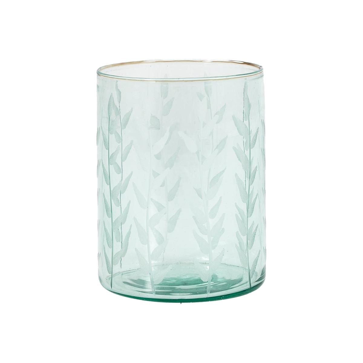 * Handmade* Pale green glass* Recycled glass* Simple shape* Suitable for water Add some sophistication to your space with this stunning large vase. Handmade in pale green recycled glass, the simple shape is adorned by an etched sorrel leaf design.
