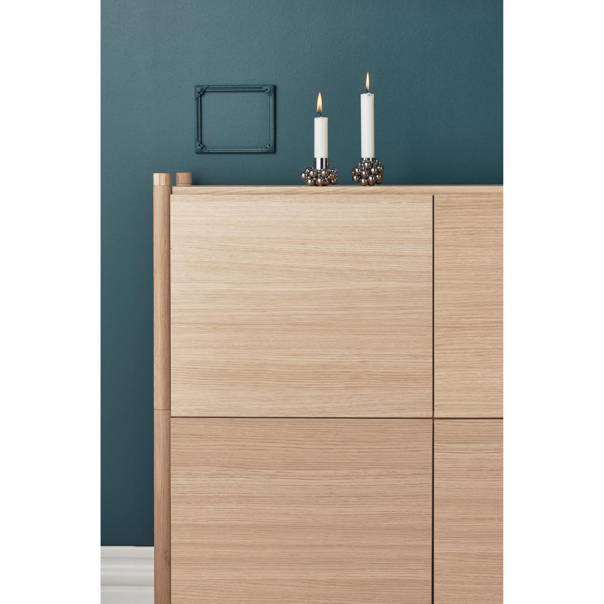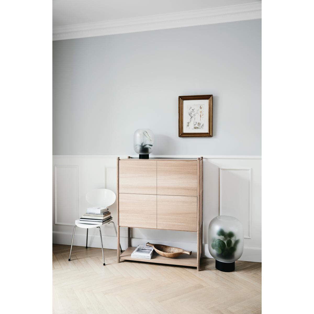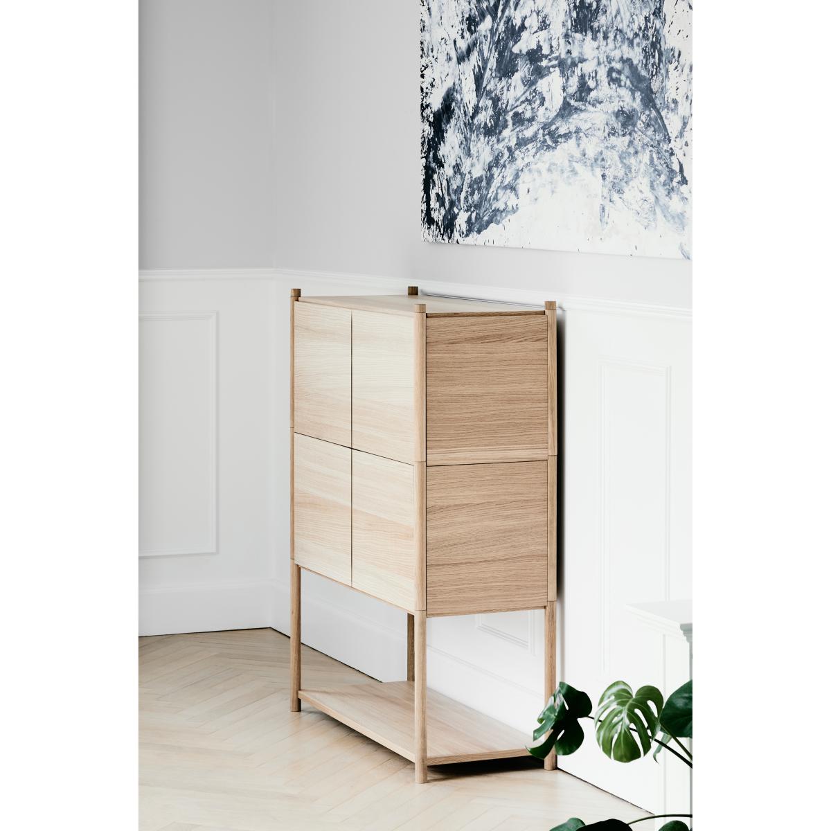 I love this piece for its clean, minimalist aesthetic and versatile oak finish, making it a great addition to both contemporary and Scandi-inspired interiors. It works well as a sideboard in open-plan living spaces or as a storage solution in dining rooms, offering ample space for a mix of decorative accessories and everyday essentials. For styling, consider layering with neutral ceramics or simple greenery to highlight its natural woodgrain. Its understated design lends itself to both functional organisation and subtle visual interest, making it a practical yet stylish choice for a range of interiors.