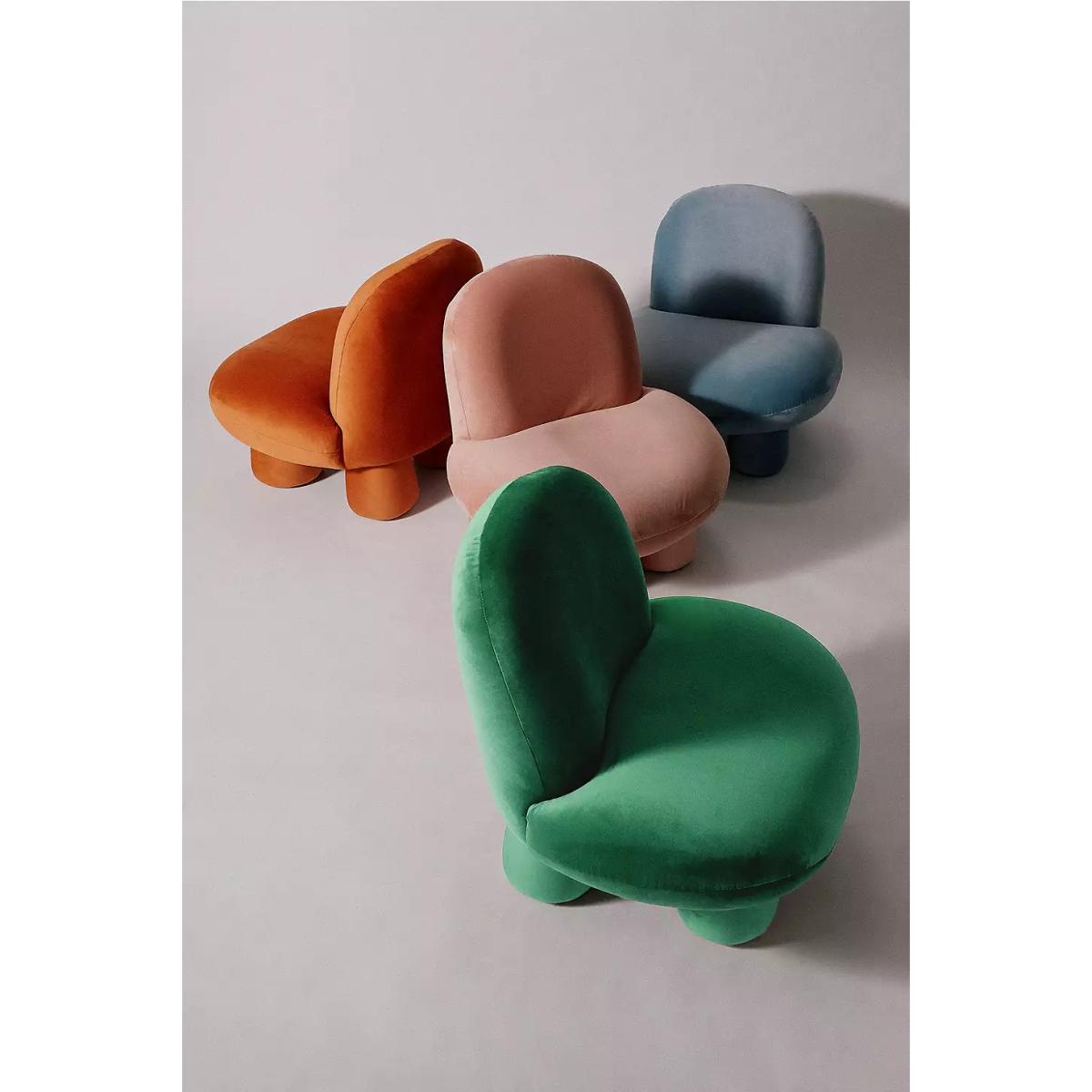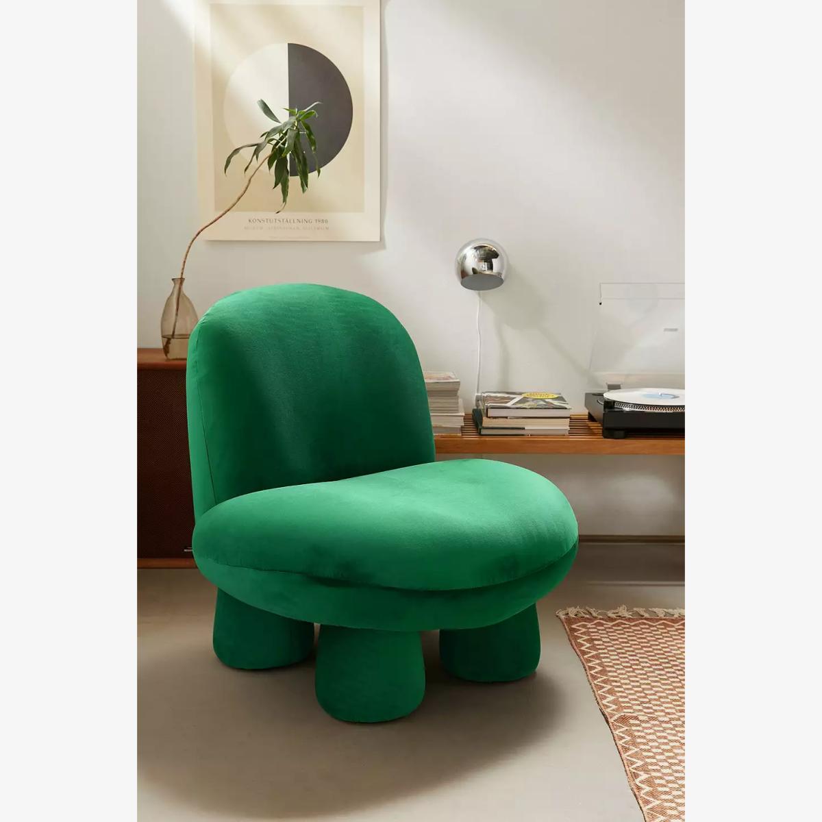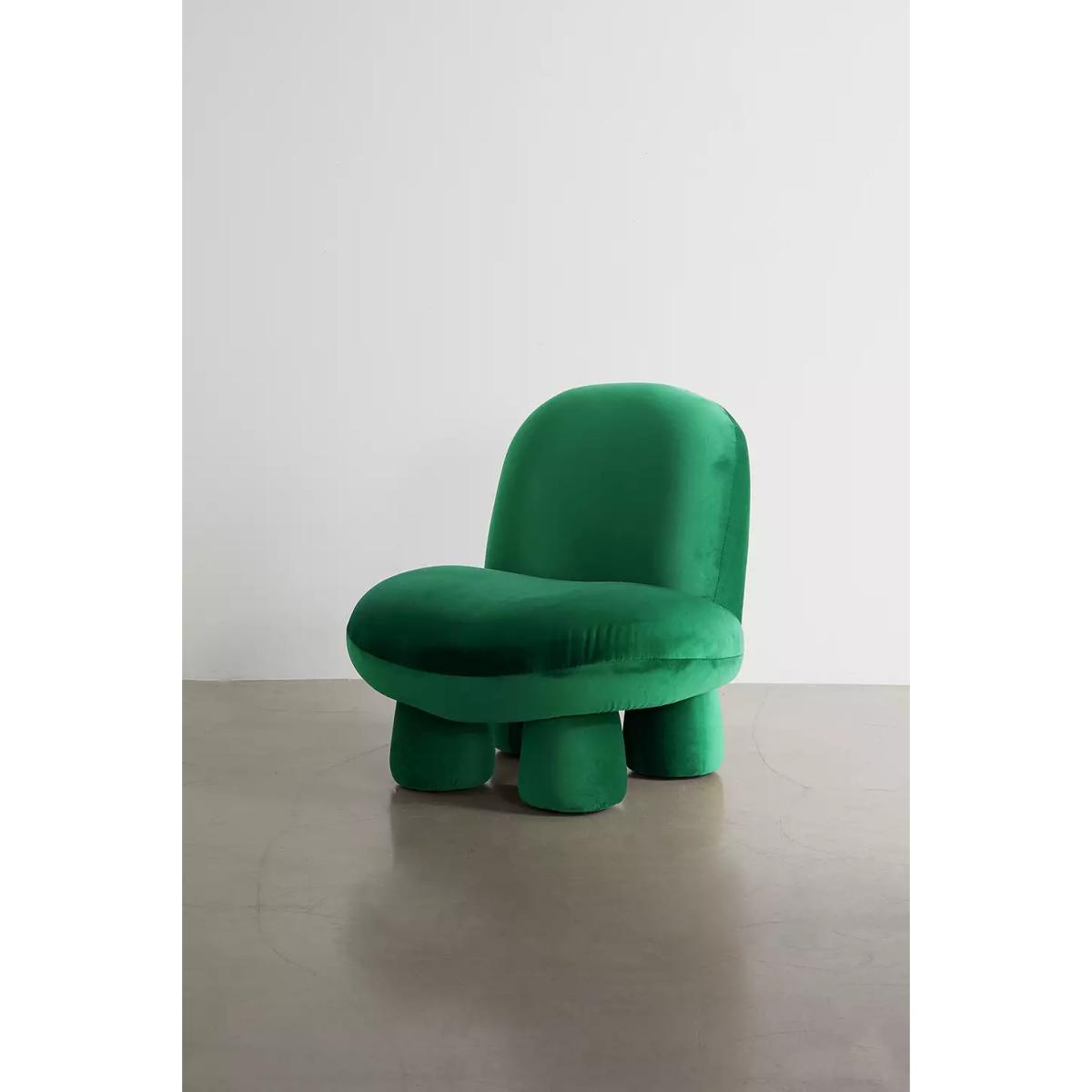 Inject a playful nod to your contemporary furnishings with this velvet bubble chair. Made for cosy reading corners and trending lounge spaces, this chair features a bold silhouette with curved edges, a wide chair back, no arms and a low-slung silhouette with statement legs. *Online return only. This item cannot be returned instore. Please note furniture items currently cannot be shipped to Northern Ireland or The Republic of Ireland. Delivery of large furniture items may take 1-2 weeks and are therefore not eligible for Next Day Delivery.* **Content + Care** \- Velvet, Eucalyptus wood, Foam- Spot clean **Size** \- Dimensions: L: 80cm x W: 84cm x H: 80cm- Leg height/Clearance: 22.9cm- Interior seat dimensions: L: 80cm x W: 48.2cm x H: 45.7cm- Weight: 55 lbs- Shipping package dimensions: 81cm x 85cm x 59cm- Shipping package weight: 42 lbs