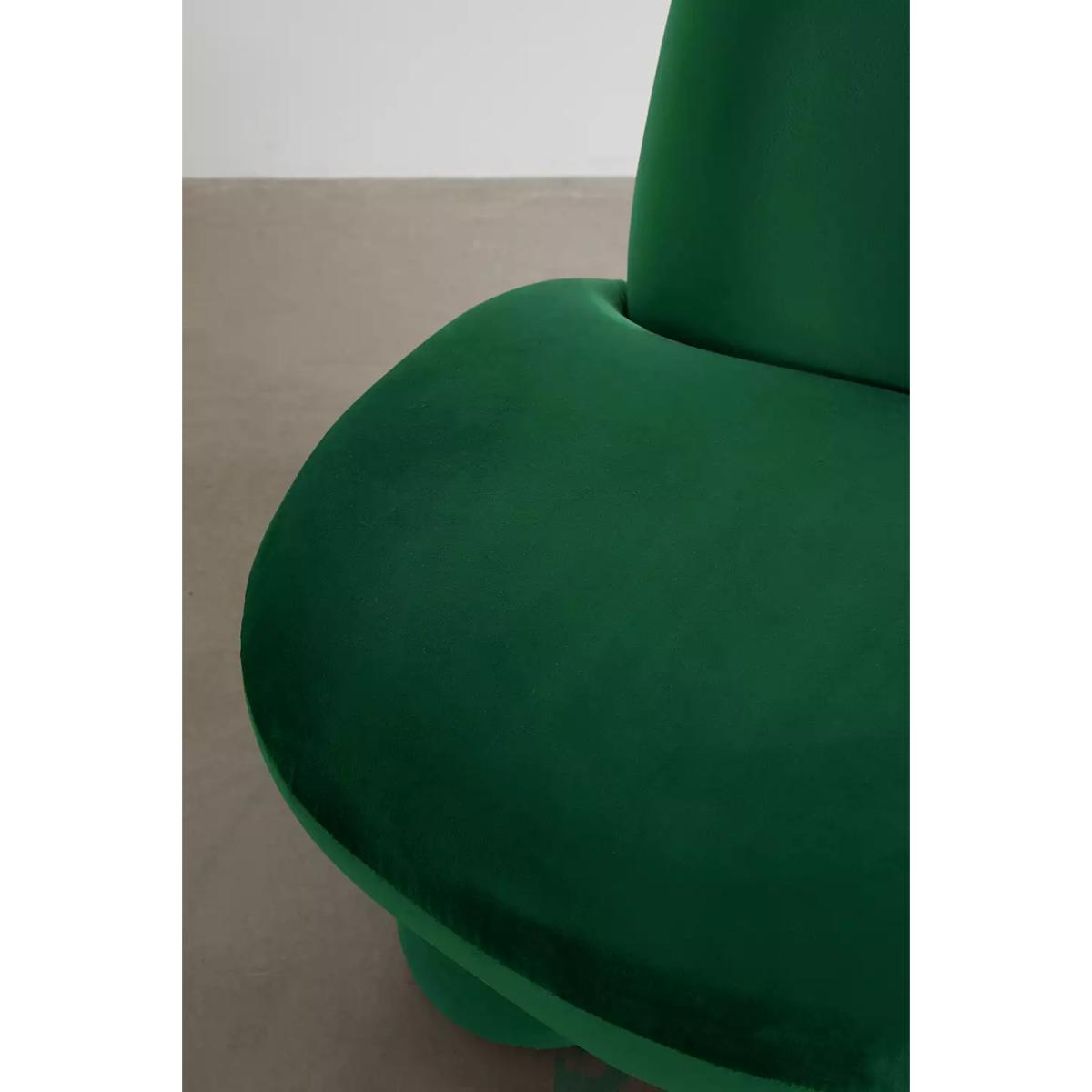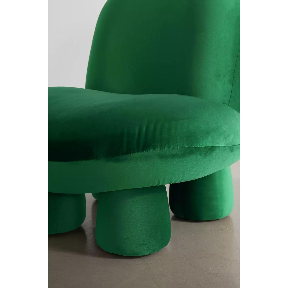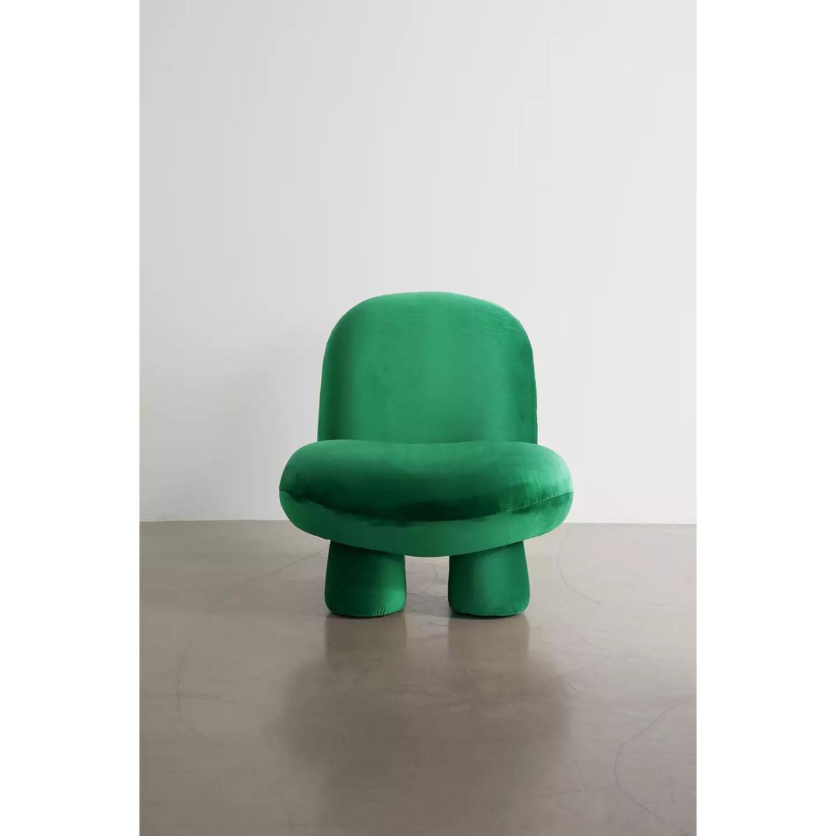 Inject a playful nod to your contemporary furnishings with this velvet bubble chair. Made for cosy reading corners and trending lounge spaces, this chair features a bold silhouette with curved edges, a wide chair back, no arms and a low-slung silhouette with statement legs. *Online return only. This item cannot be returned instore. Please note furniture items currently cannot be shipped to Northern Ireland or The Republic of Ireland. Delivery of large furniture items may take 1-2 weeks and are therefore not eligible for Next Day Delivery.* **Content + Care** \- Velvet, Eucalyptus wood, Foam- Spot clean **Size** \- Dimensions: L: 80cm x W: 84cm x H: 80cm- Leg height/Clearance: 22.9cm- Interior seat dimensions: L: 80cm x W: 48.2cm x H: 45.7cm- Weight: 55 lbs- Shipping package dimensions: 81cm x 85cm x 59cm- Shipping package weight: 42 lbs