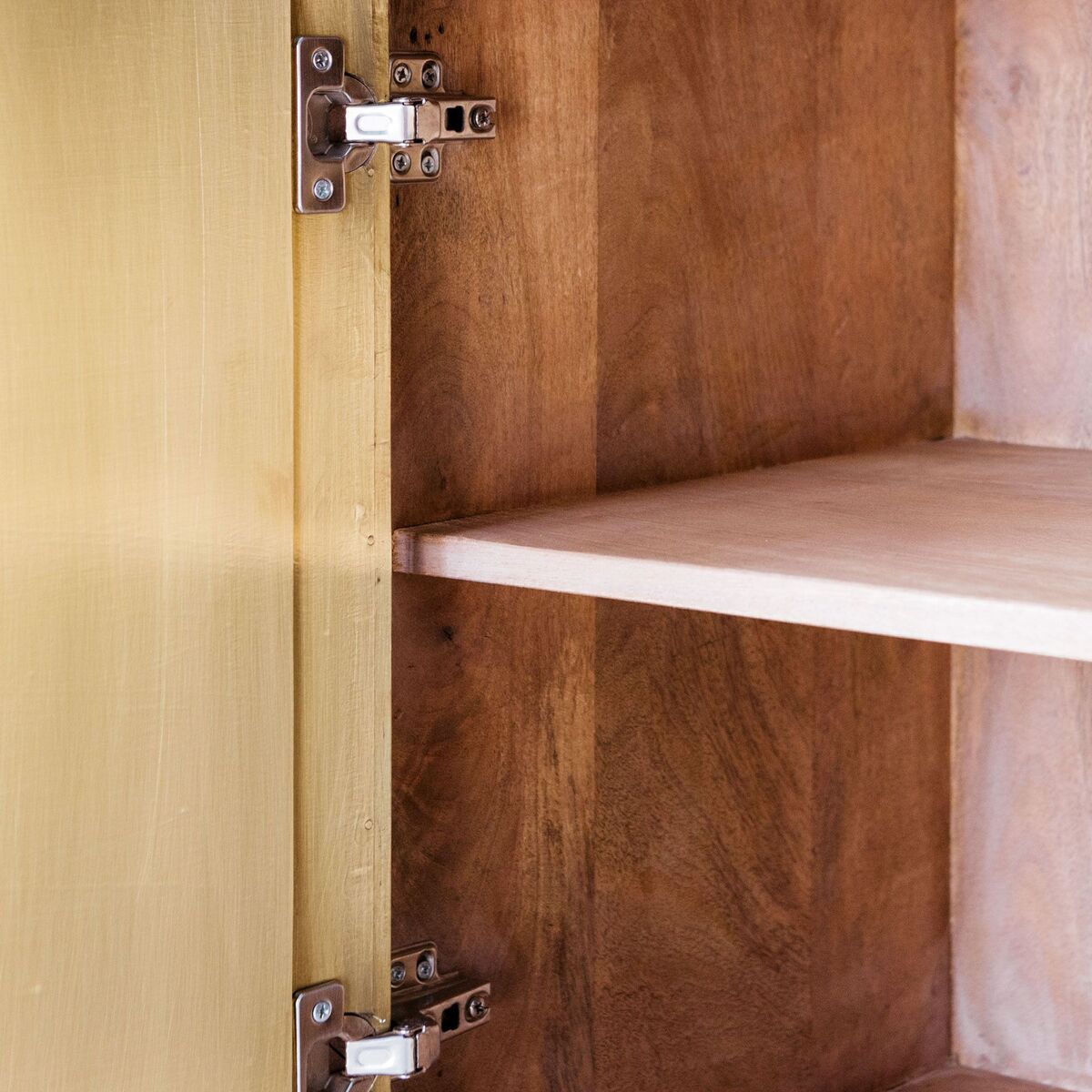 Handcrafted by talented artisans with intricately carved doors in an opulent brass finish. Certain to take centre stage whatever room it's in.