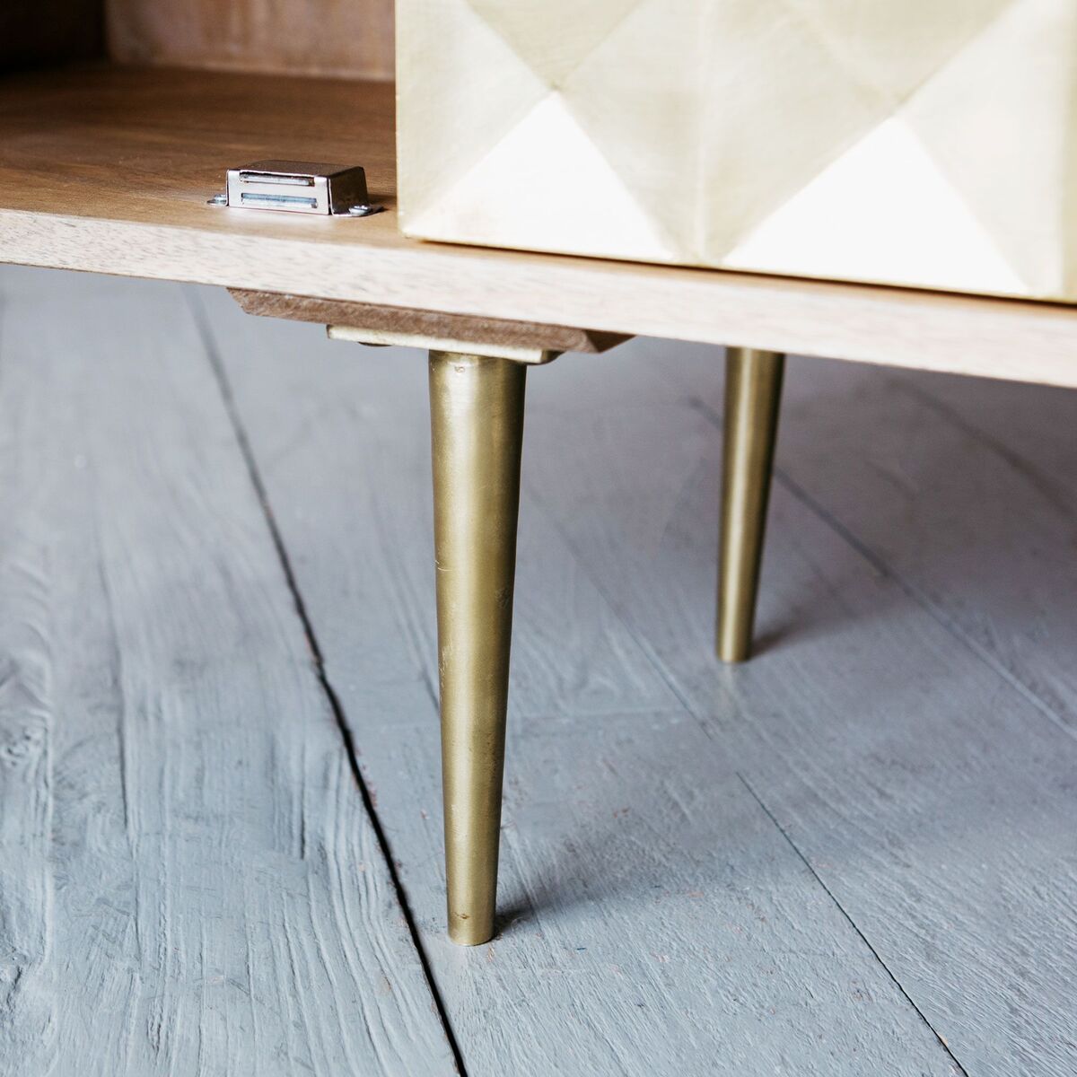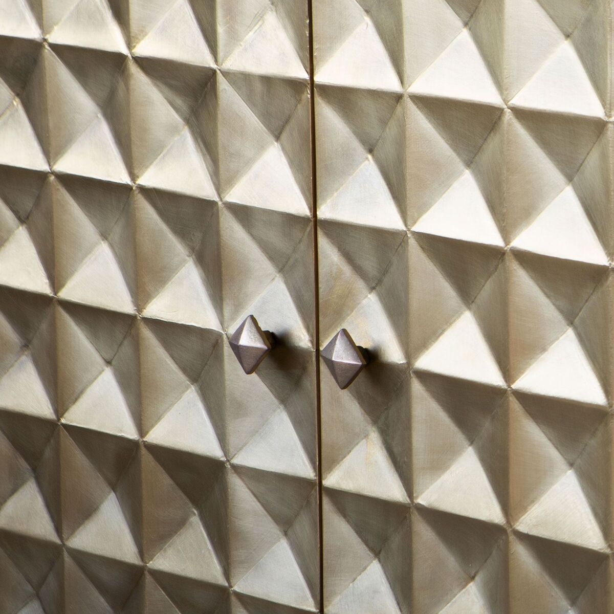 I love this sideboard because of its bold, textured gem cladding which adds an instant focal point in any room. It works particularly well in contemporary or eclectic interiors, where its unique surface can be paired with a mix of modern art and vintage pieces for a curated look. Practical styling tips include keeping surface clutter minimal to let the gem elements shine, and adding complementary metallic accents nearby to enhance the reflective quality. It's a versatile piece that not only offers ample storage but also acts as a statement feature, making it an excellent choice for living rooms, dining areas, or even stylish hallways.