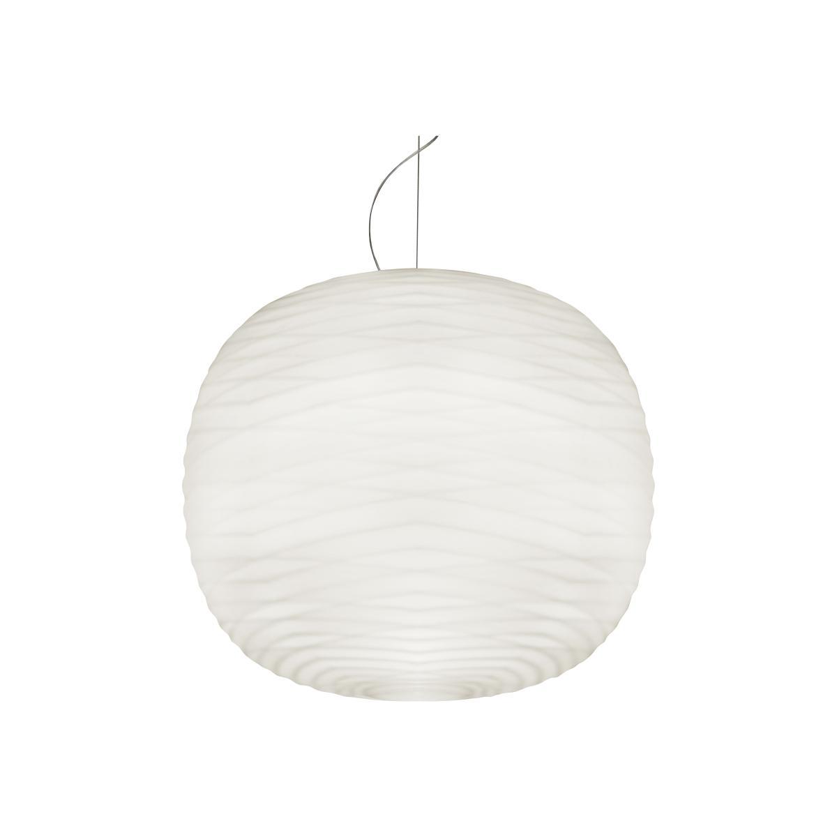 Glass resonance. The Gem lamp is an item that’s sure to win you over immediately: from the first glance, we’re attracted by the precious nature of the material and the artisanal manufacturing know-how. Due to the irregularity of its glass surface, characterised by irregular ripples and reliefs, the lamp has a unique visual impact, even when switched off, and, switched on, creates magnificent light effects. Handcrafted in Italy, the Gem Lamp is the result of superb glasswork. This completely closed sphere is blown by hand inside a mould. The glass is then frosted manually and treated with acid to obtain a superb frosted effect. This pure, graphic sphere is entirely decorated with incisions that form irregular relief patterns. The entire surface of the diffuser is punctuated by intersecting lines inspired by the propagation of a sound wave on the surface of a liquid. Highly decorative, these streaks also allow the light intensity to be filtered and modulated. The light filtered through the folds and different thicknesses of the glass produces a superb chiaroscuro effect. The lighting is vibrant, warm and subdued. The My Light function lets you control and personalise your lighting through an app that can be activated and used via Bluetooth on your smartphone, tablet or your own smart device. It’s very simple to use: just activate Bluetooth on your smartphone or tablet, download the free app and switch on your My. Light. Once the light is recognised by the app, you can start switching it on and off, adjust the intensity and colour temperature, and create your own scenographies. The Timer lets you automatically activate or deactivate the scenographies, even when your smartphone or tablet is switched off.
