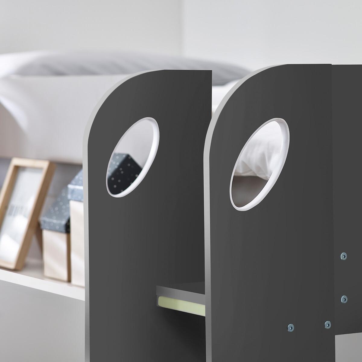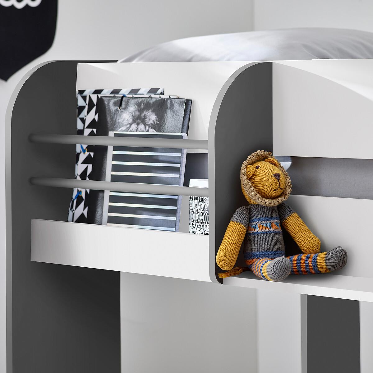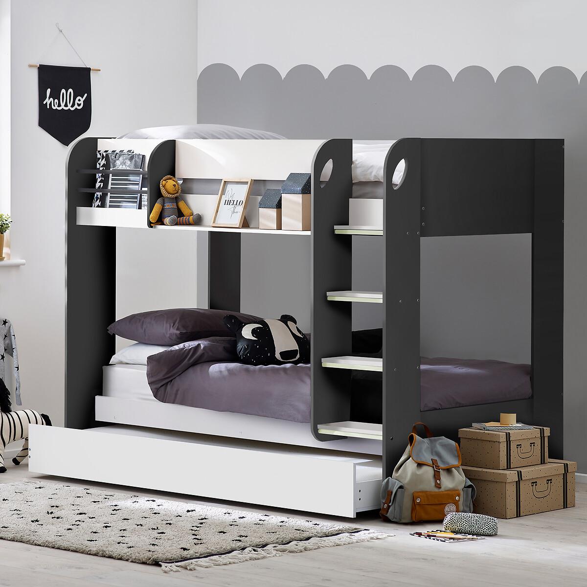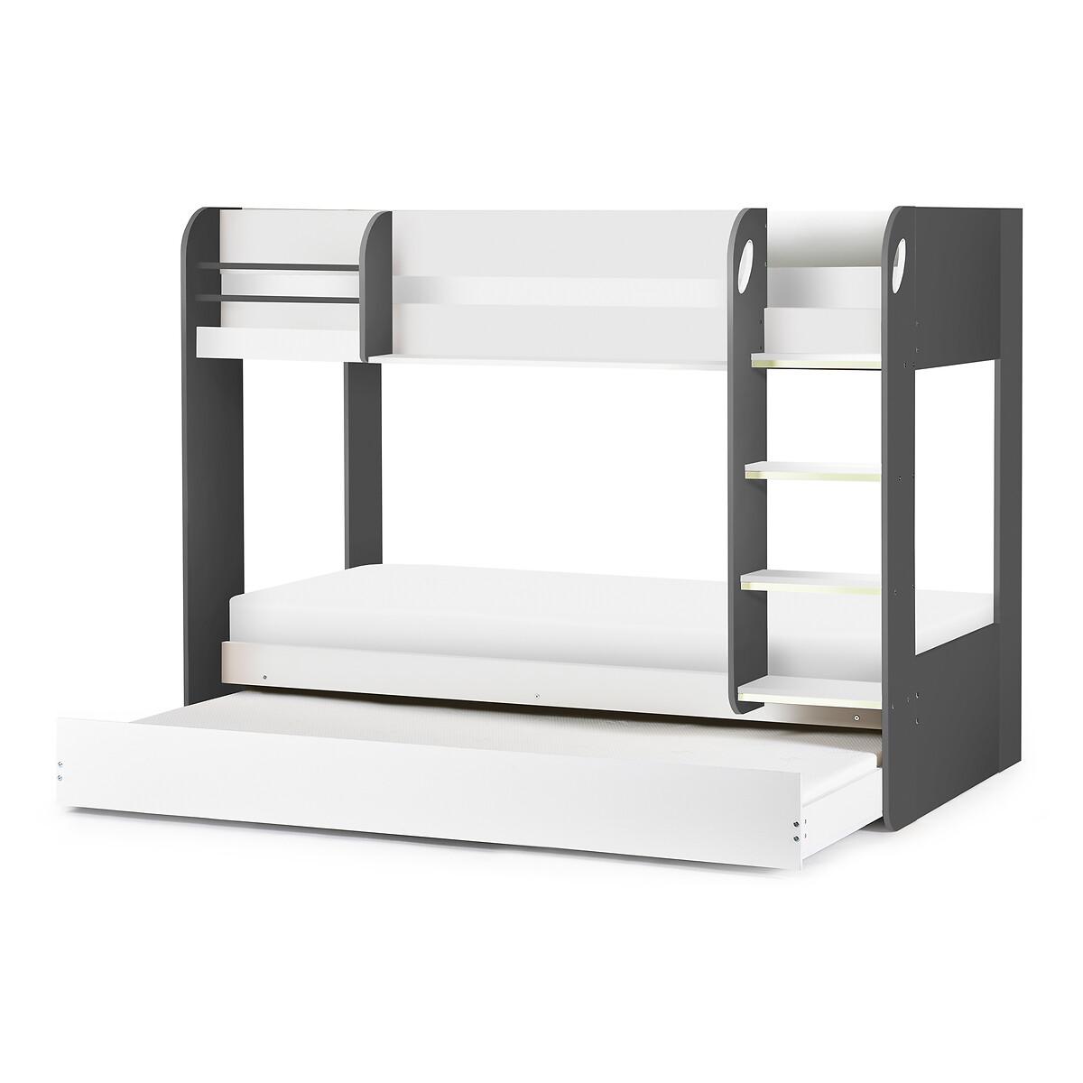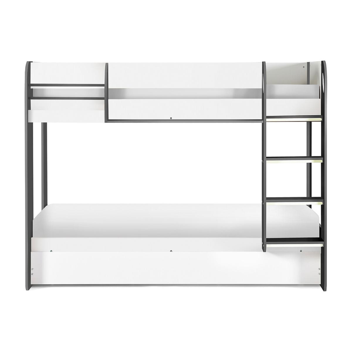 Beautifully designed with a pull-out trundle, our Gemini bunk is crafted to ensure the safety of your children. With shelving for books and frames, it's practical and perfectly timeless. Product details• Sleek lacquered finish• 2 shelves for books, frames and toys• Wide steps• Assembly required• Fixings included• Max weight capacity - 12 stone• Compatible with Standard UK single 90 x 190 cm mattresses• Mattress not included• Maximum mattress height - 17cm. To minimise the danger of falling from the top bunk, we recommend that the top of the mattress should always be at least 16cm below the top of the lowest part of the guardrail. • 12 month product guarantee. Composition - 100% Particleboard Overall Dimensions 196 cm x 117 cm x 150.5 cm , Weight - 102.5 KGDistance Between Bunks - 70.5 cm. Top of side rail to floor - 31/196 cm. Bottom of side rail to floor - 21.5/155 cm Guard rail height - 37.5 cm. Shelf dimensions - 59 X 13.5 X 37.5 cm / 95.5 X 13.5 X 37.5 cm Package Dimensions: Parcel 1 Packaged Dimensions - 201 cm x 127 cm x 13 cm, Weight 37 KGParcel 2 Packaged Dimensions - 198 cm x 51.5 cm x 13 cm, Weight 39 KGParcel 3 Packaged Dimensions - 160 cm x 47 cm x 15 cm, Weight 35 KGPlease note: this product cannot be be delivered to all Offshore Islands Northern Ireland or Republic of Ireland. This product will be dispatched by one of our trusted suppliers. You’ll be contacted by their selected courier about your delivery.