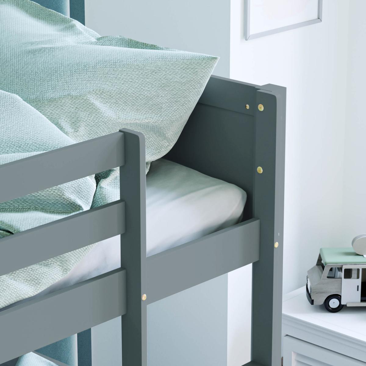 I’m a fan of this Gemini bunk for its clean-lined silhouette and flexible design - you can keep it as a classic bunk or split it into two singles when needs change. The neutral grey finish sits well in Scandi-inspired kids’ rooms, contemporary urban flats or minimalist guest spaces, and its sturdy ladder and guardrail give you peace of mind. To style it, layer in pops of colour with cushions and throws (navy or mustard work particularly well against grey), add simple wall hooks or a shelf for books, and tuck slimline storage boxes under the lower bed. If you separate the beds, use one as a day-bed with bolsters and the other as a cosy reading nook with a soft rug and fairy lights.