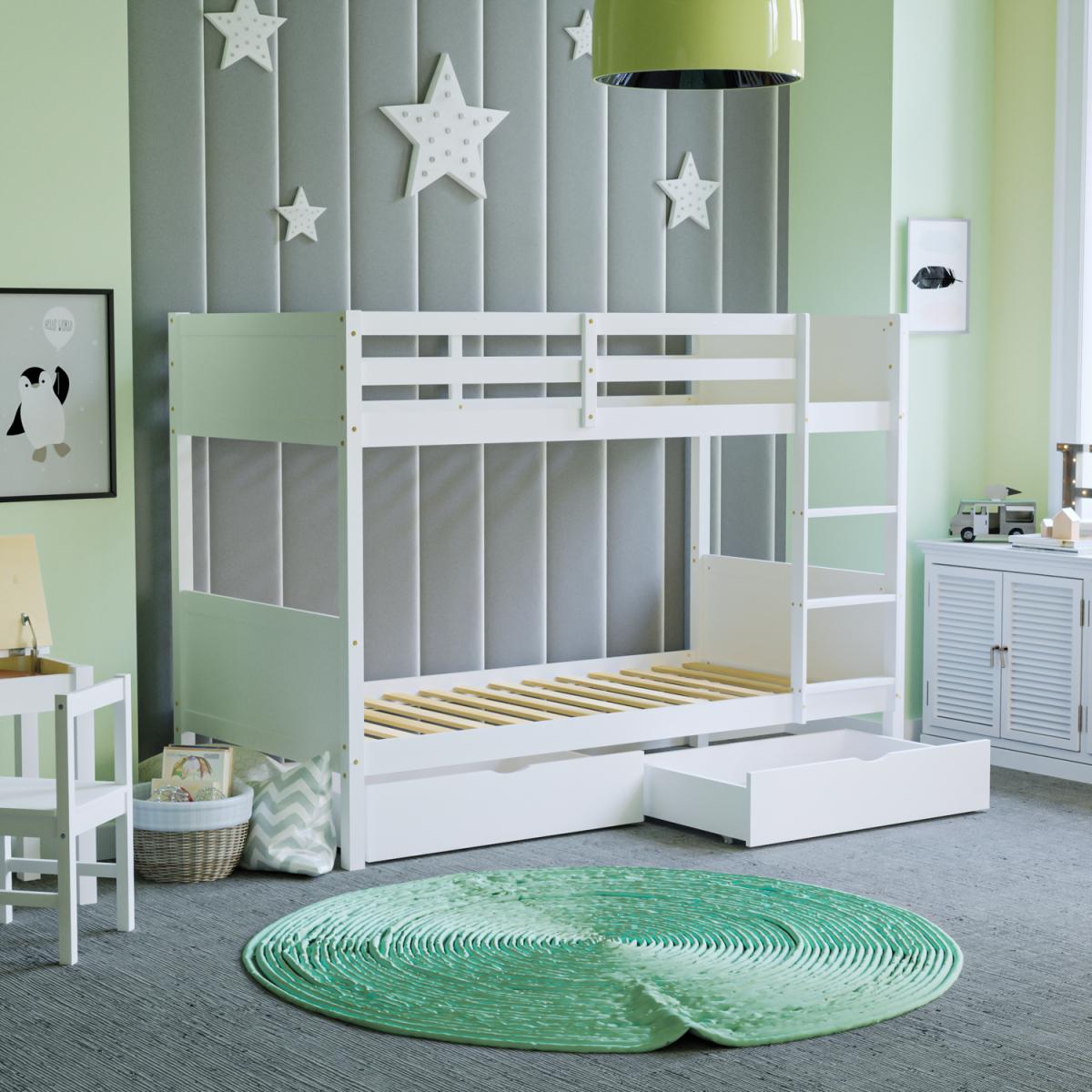 Gemini Detachable Bunk Bed with Underbed Drawers - White