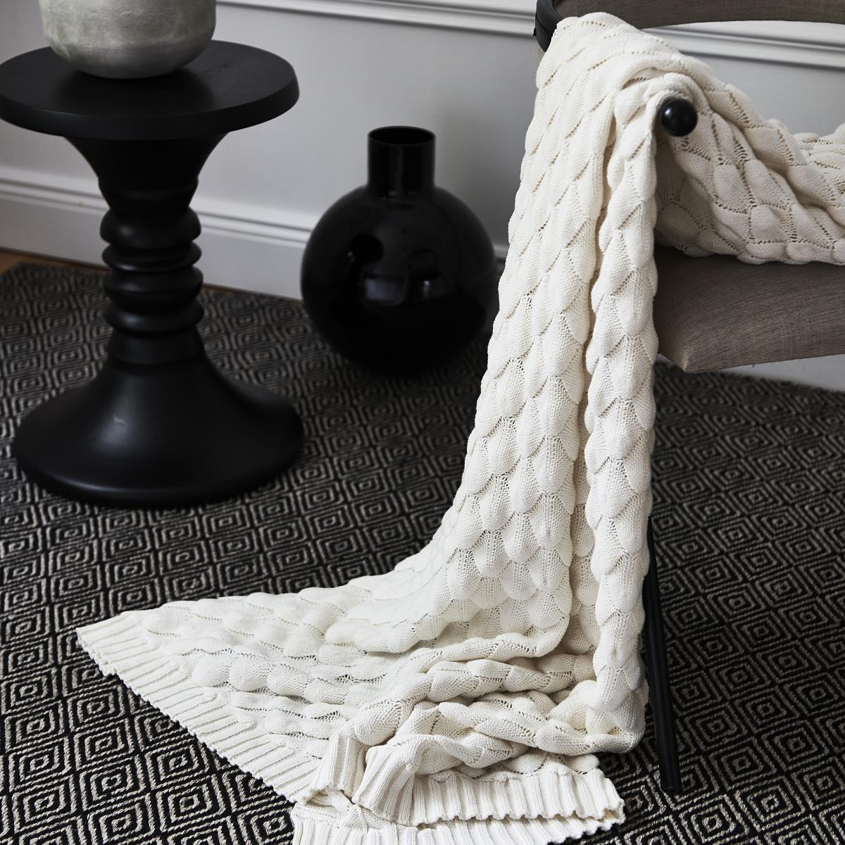 The Gems plaid 130x170 cm from Classic Collection features a light and airy fish scale-style pattern. This elegant blanket makes a lovely addition to the sofa or as a beautiful complement to the bed. Combine it with matching pillows to create a truly stylish ensemble. The throw has a special certification to ensure that it was not manufactured using any toxic substances or materials.